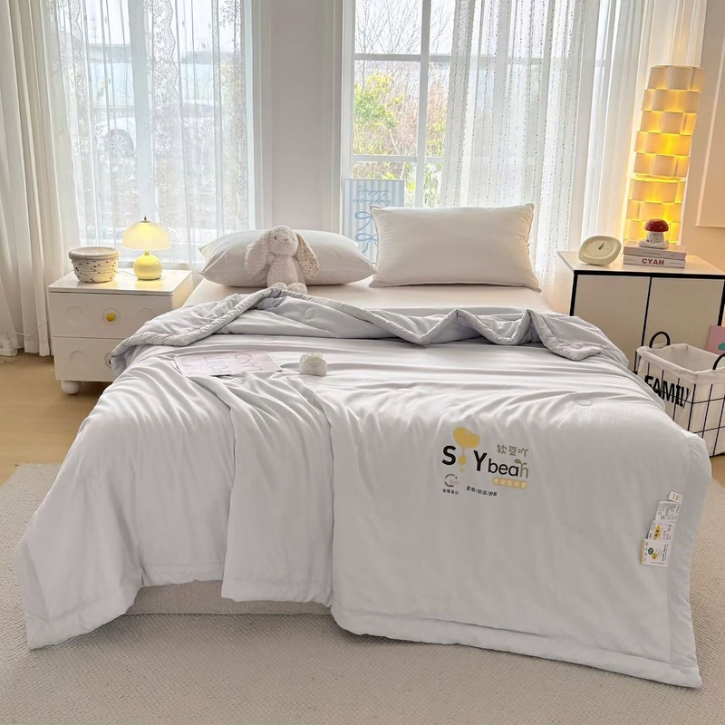 甄选亲柔磨毛面料;绗缝工艺,精致人工手包边;填充整张中空超细纤维