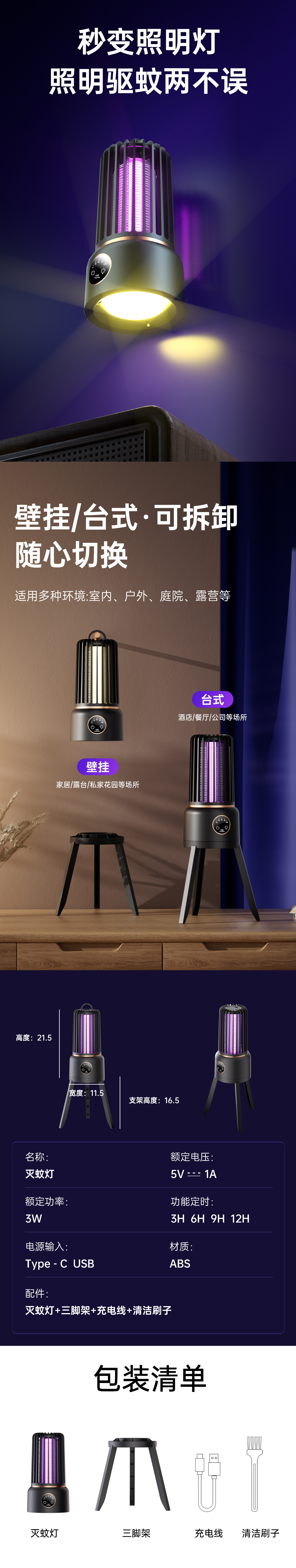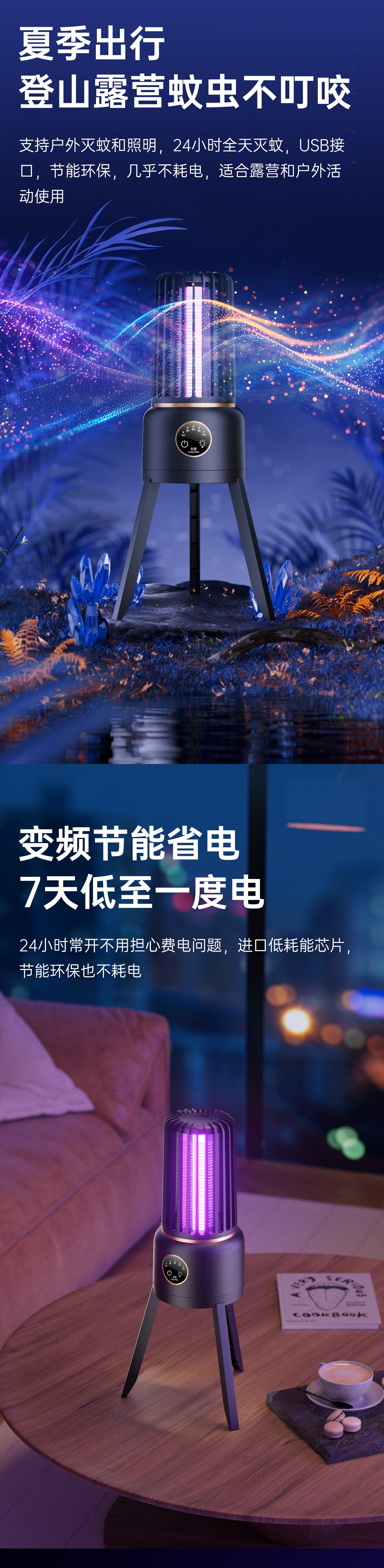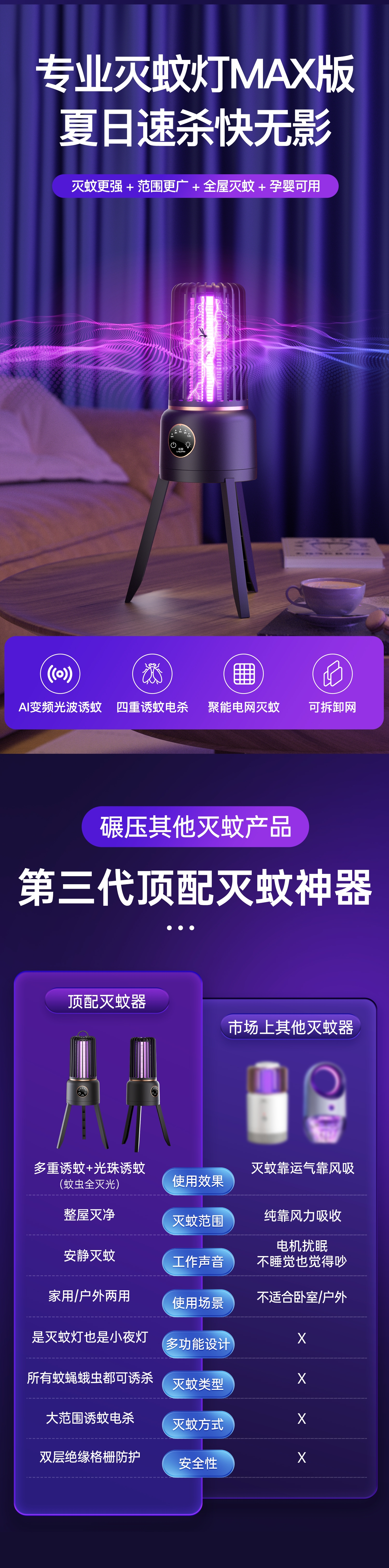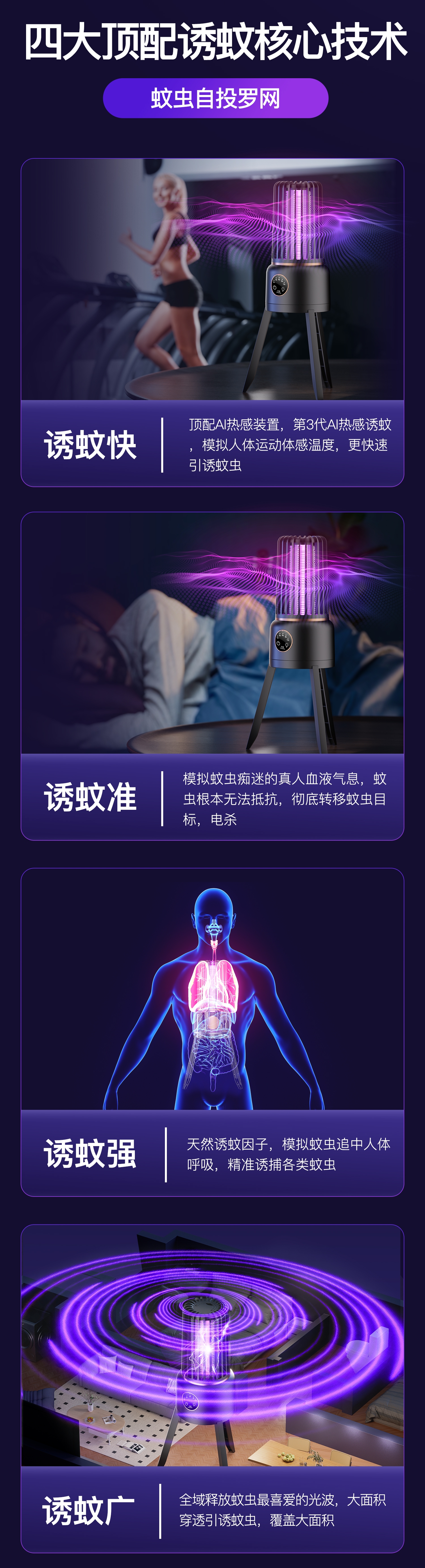 防触电设计;智能四档定时;消音增压灭蚊