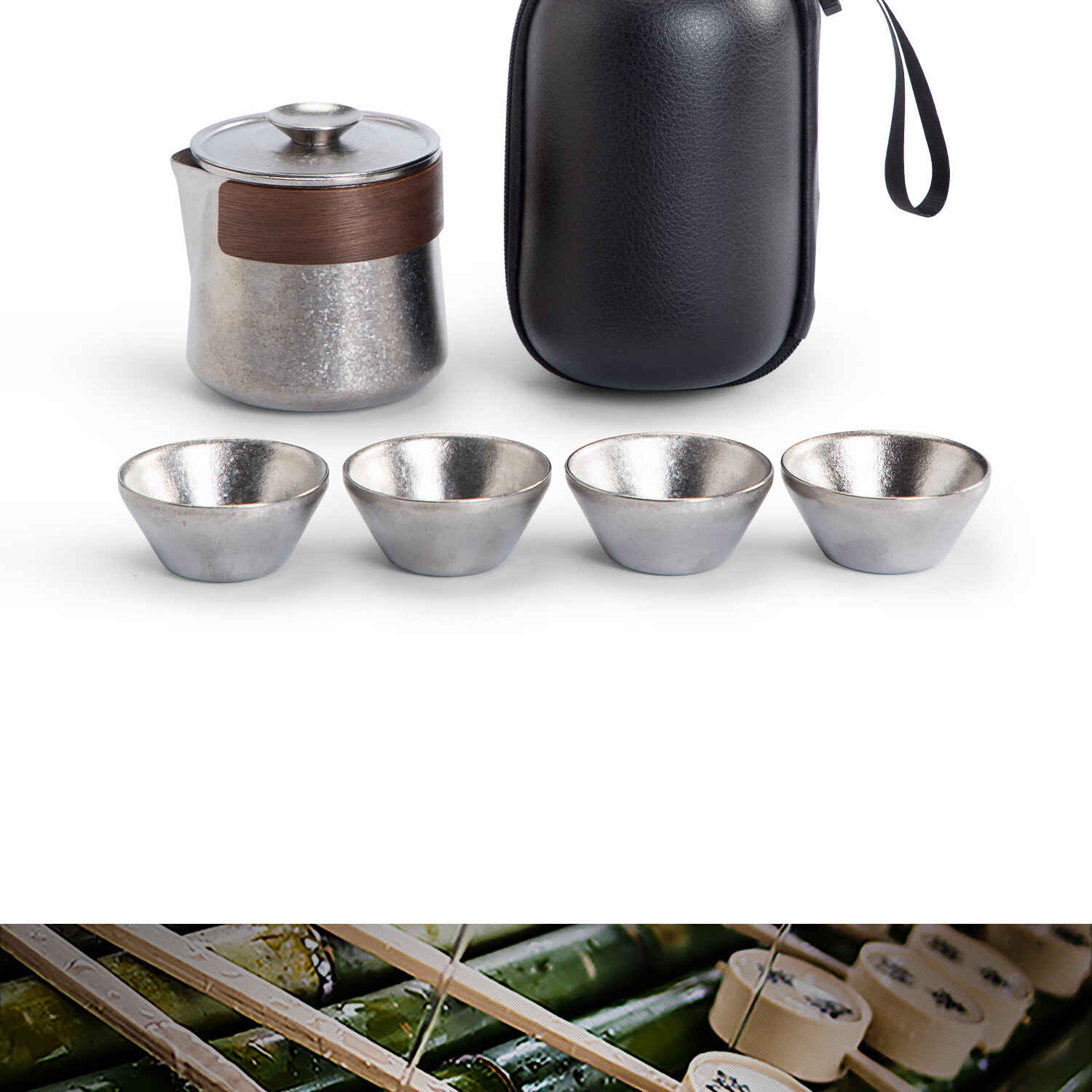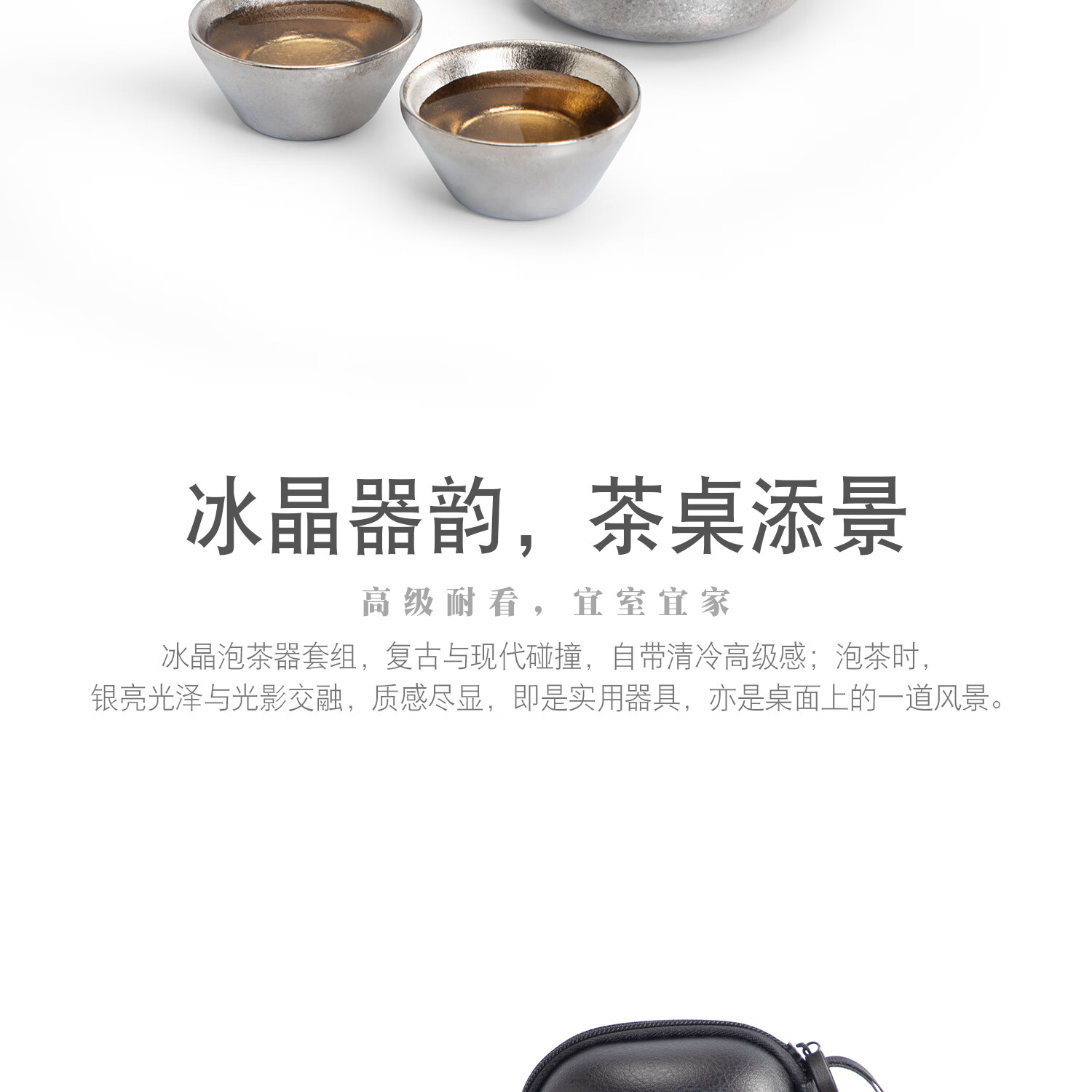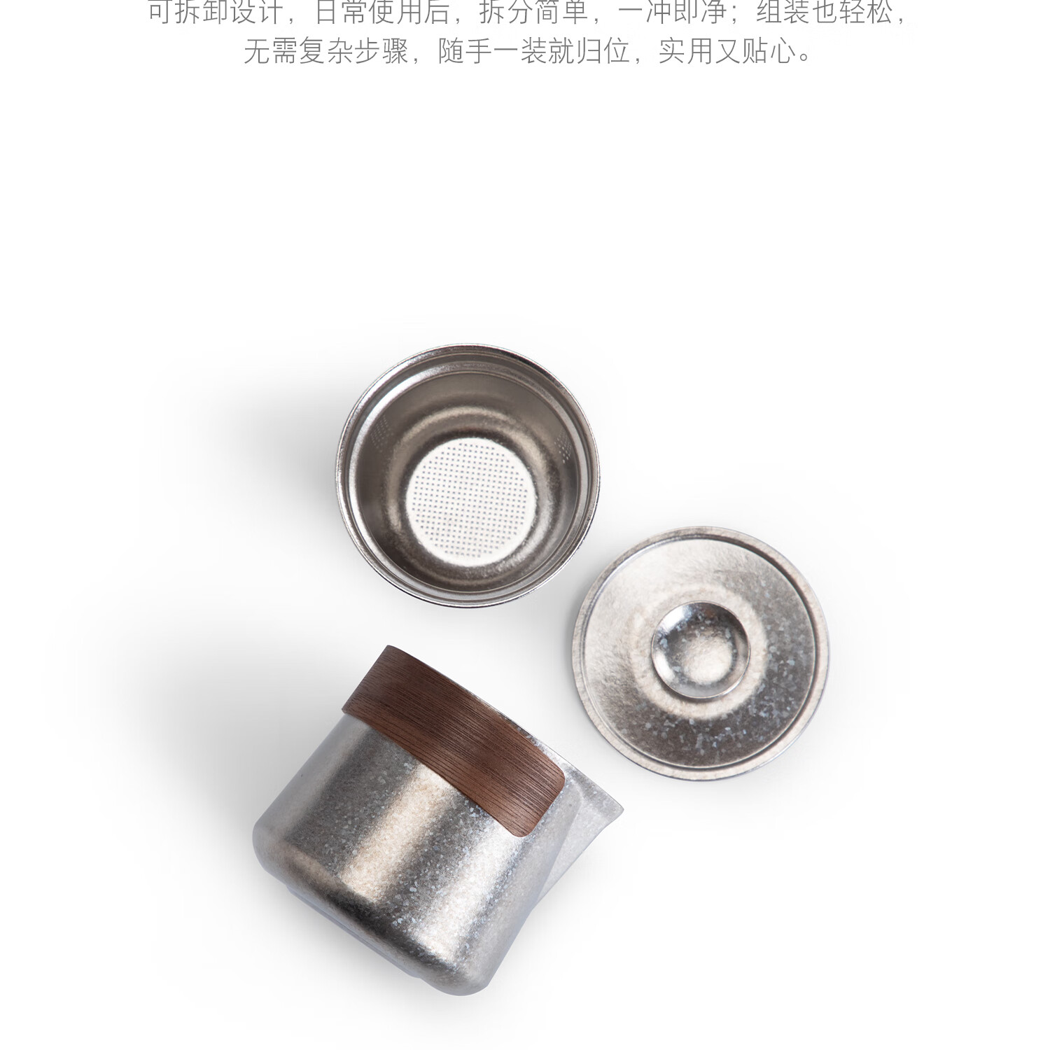 以纯钛为材,勾勒轻简美学,重塑饮茶体验;99%纯钛;天然抗菌保鲜,无金属异味;还原茶叶本真鲜香,喝得更安心