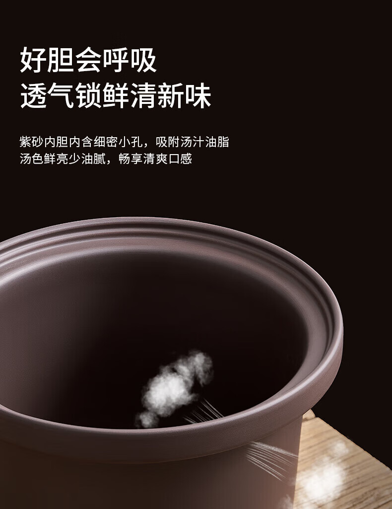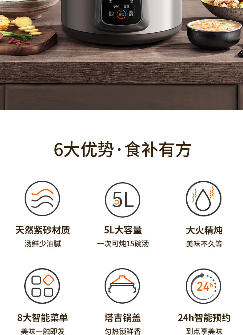 5L大容量 ;原矿紫砂内胆;8大菜单功能