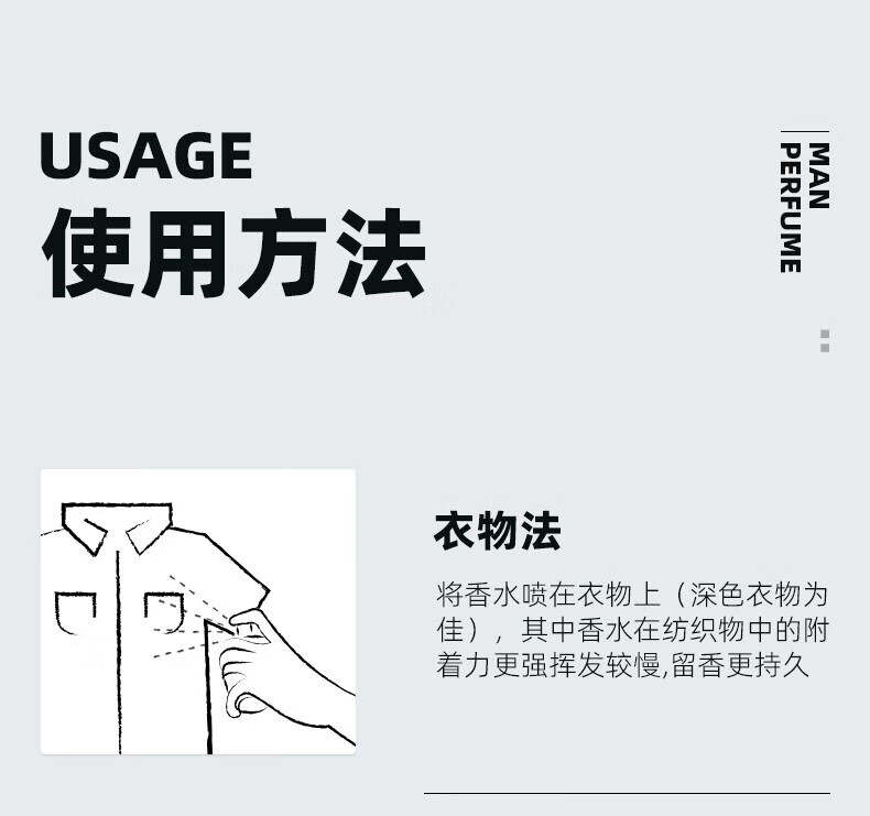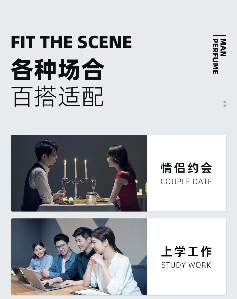 清新古龙香调,层次丰富以柠檬、薄荷、柑橘等清新成分;持久留香,全天自信:经过精心调配的配方,留香时间长;日常通勤:清新香气提升个人气质,适合办公室等正式场