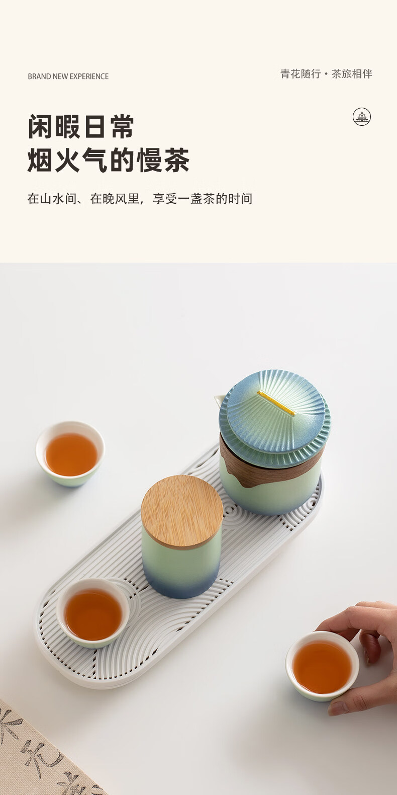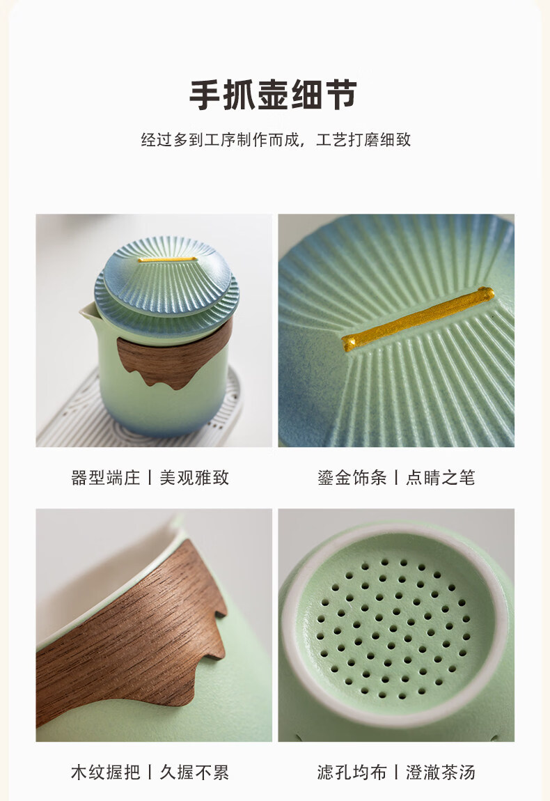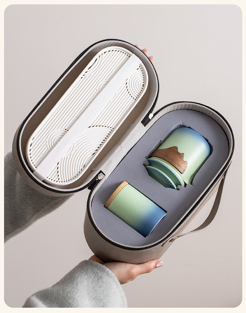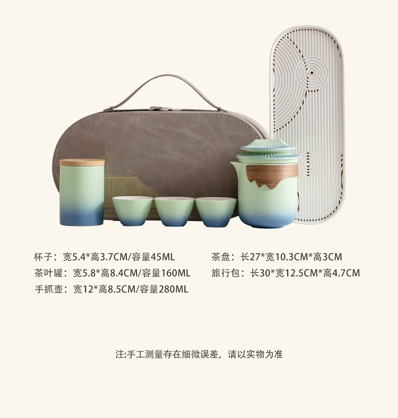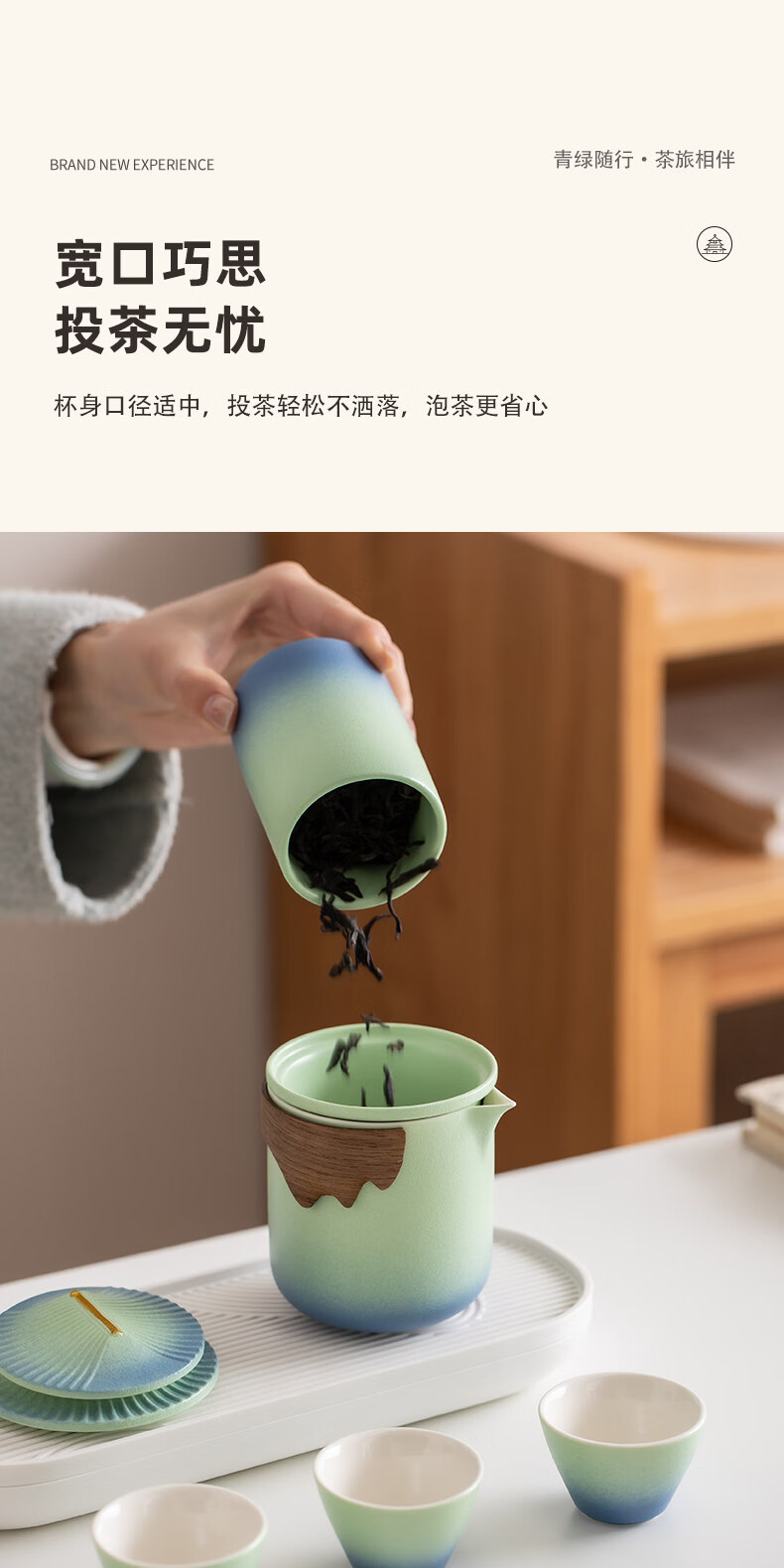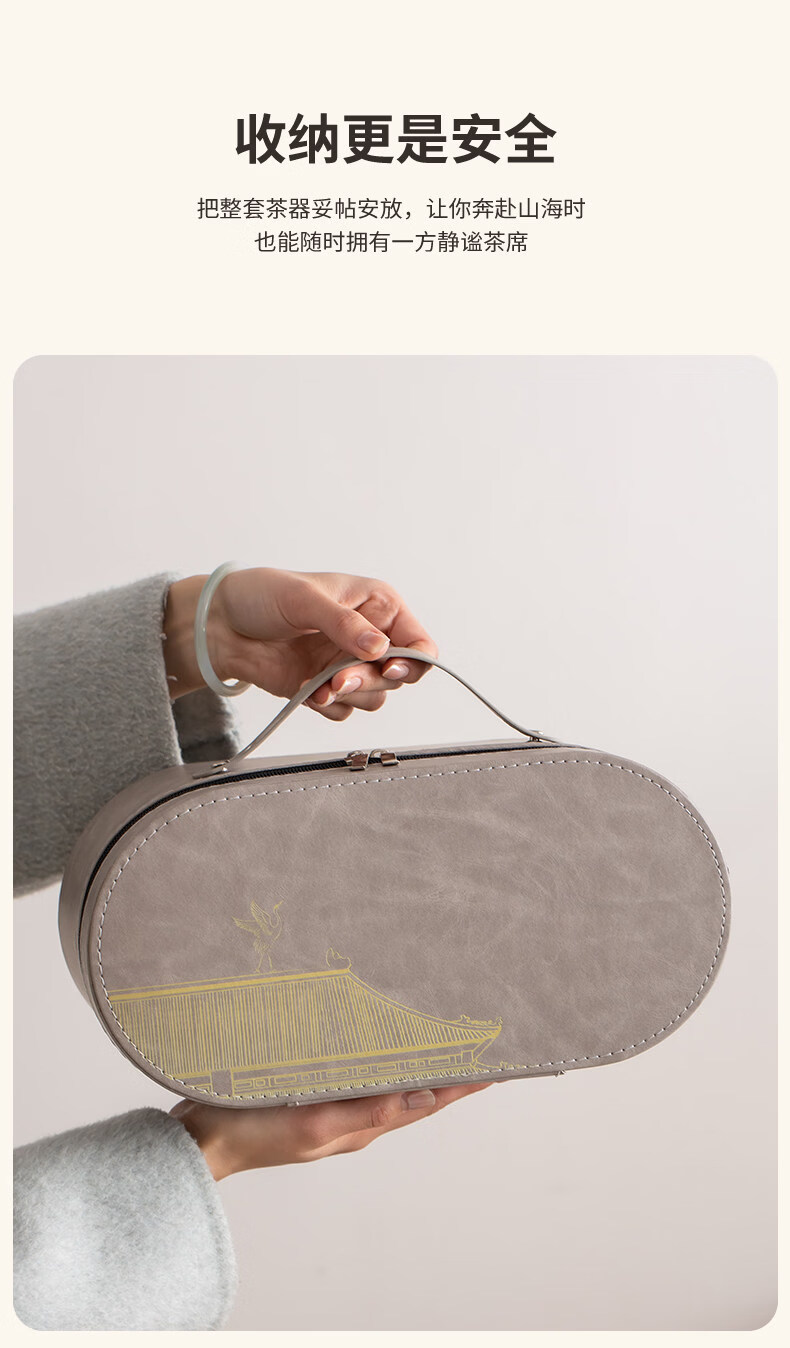 青绿渐变的陶质肌理,将故宫美学凝于杯壶之间。;方便携带;随时铺开一席宫廷雅致的茶席