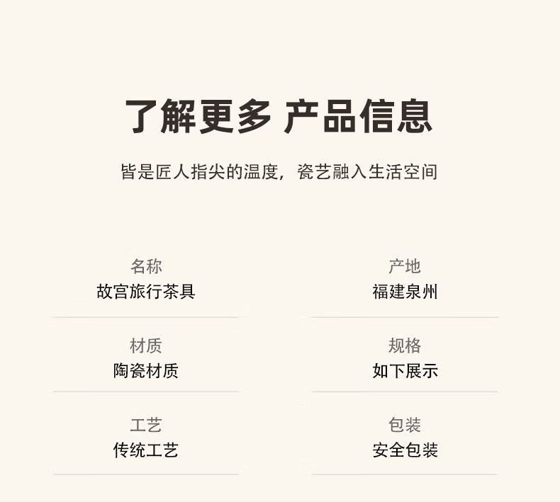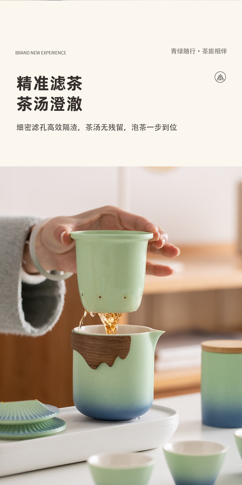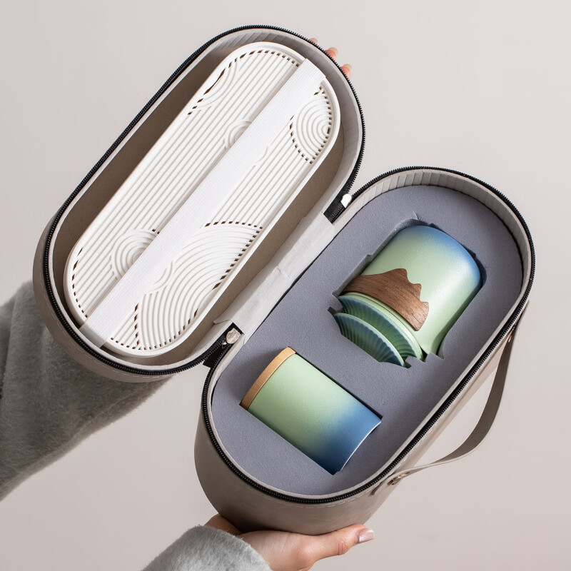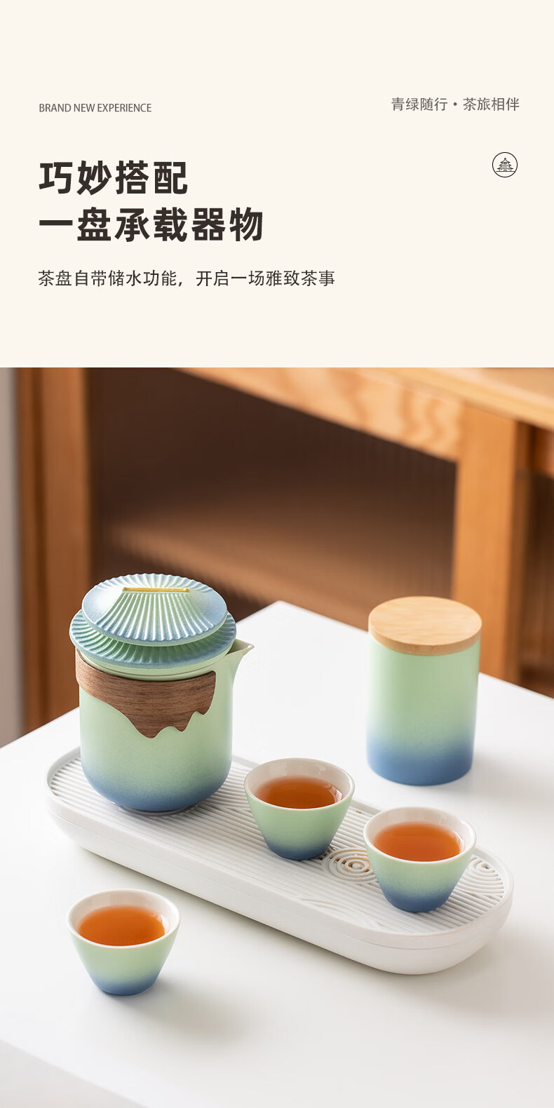 青绿渐变的陶质肌理,将故宫美学凝于杯壶之间。;方便携带;随时铺开一席宫廷雅致的茶席