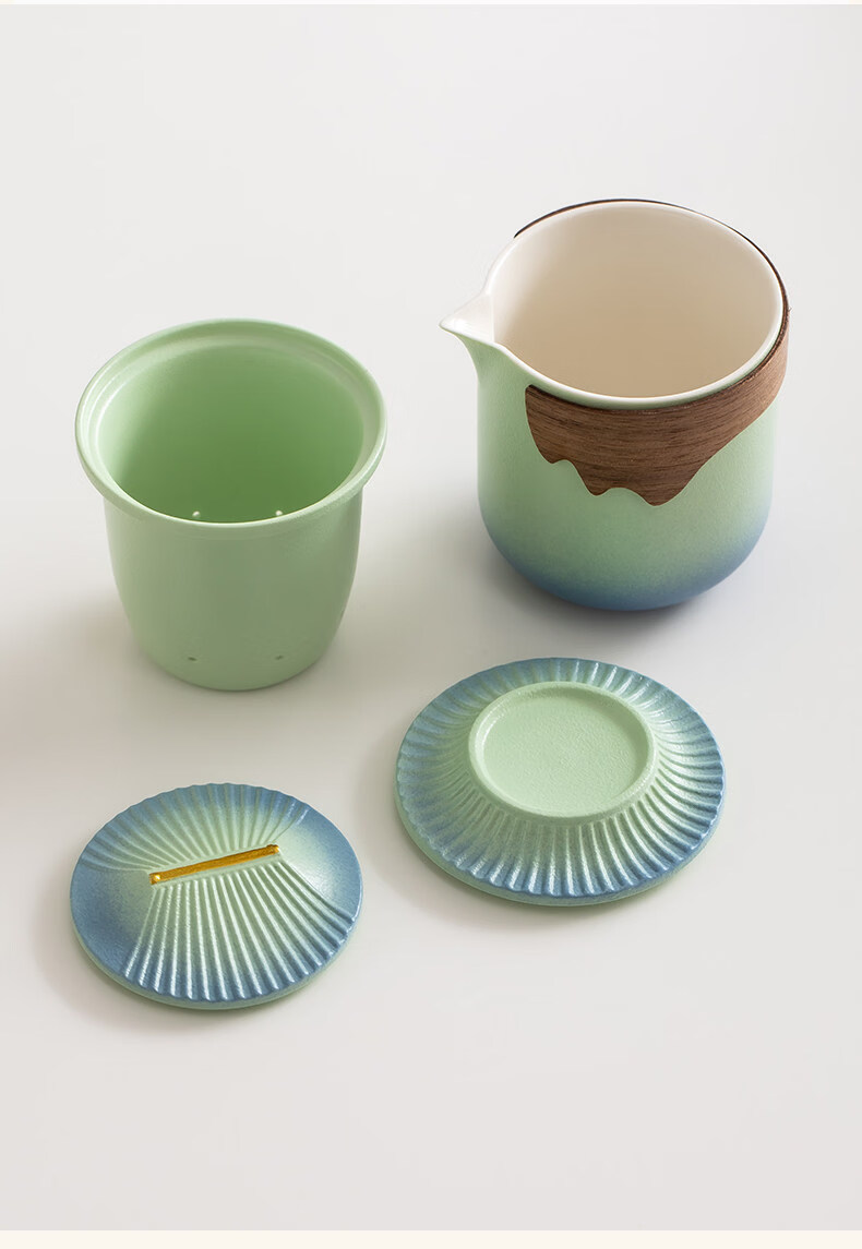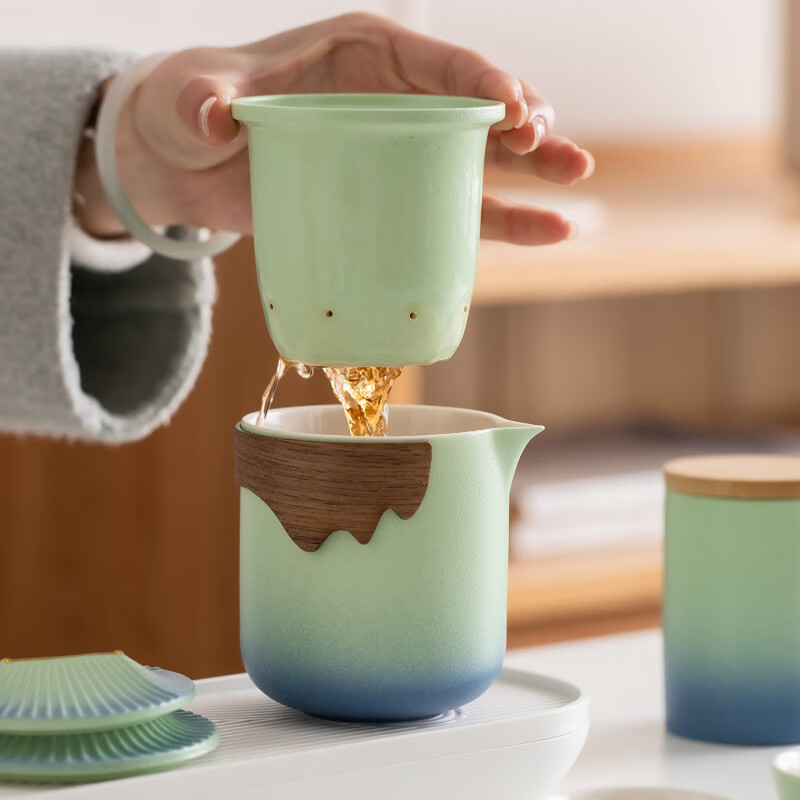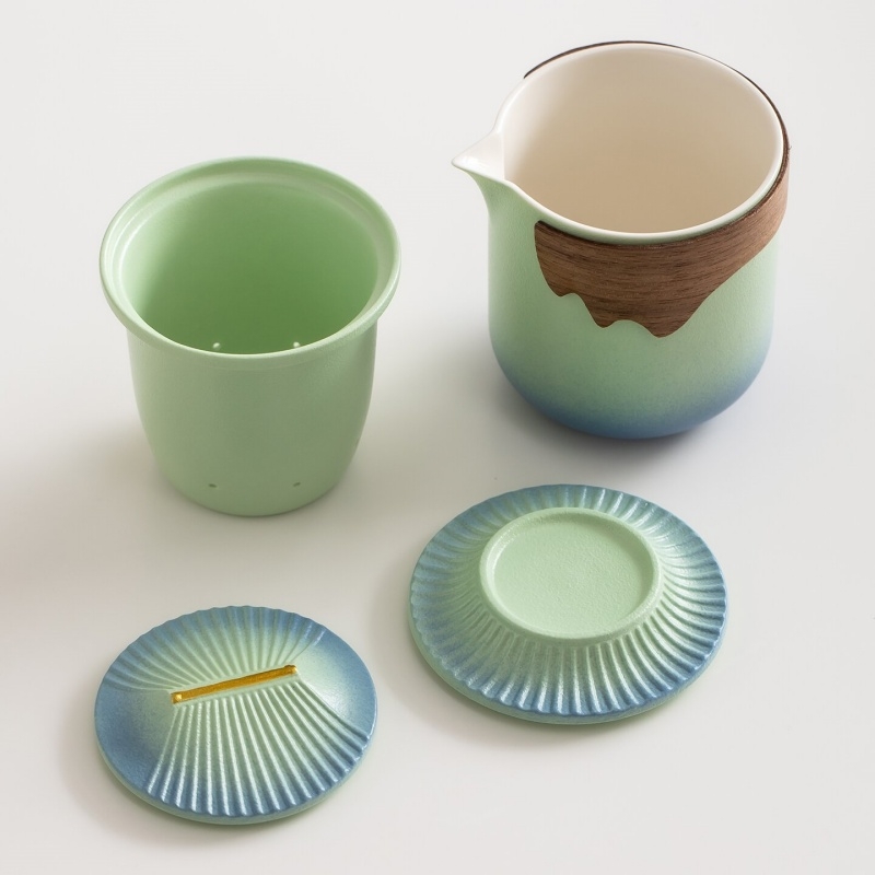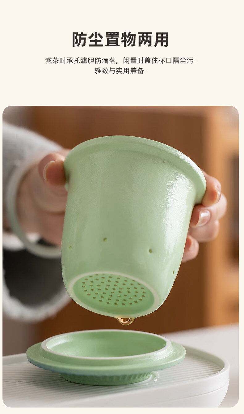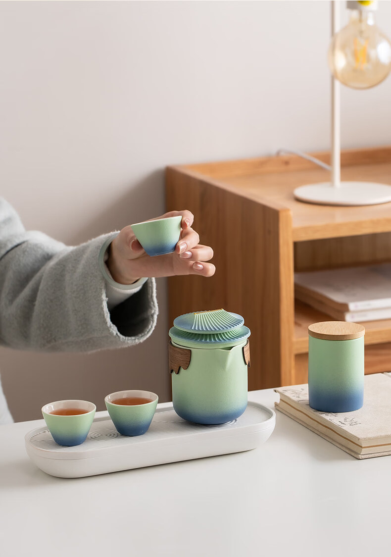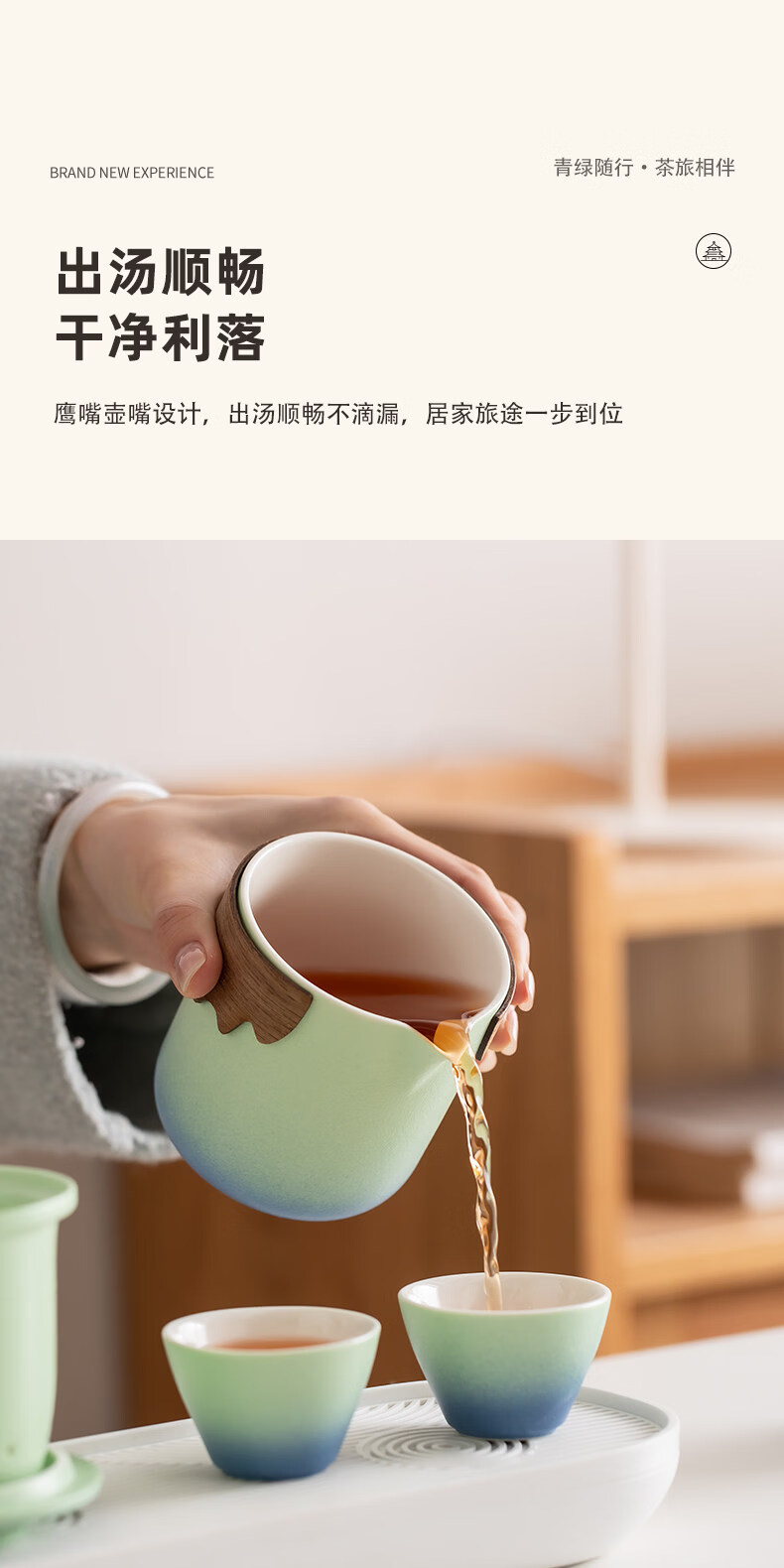 青绿渐变的陶质肌理,将故宫美学凝于杯壶之间。;方便携带;随时铺开一席宫廷雅致的茶席