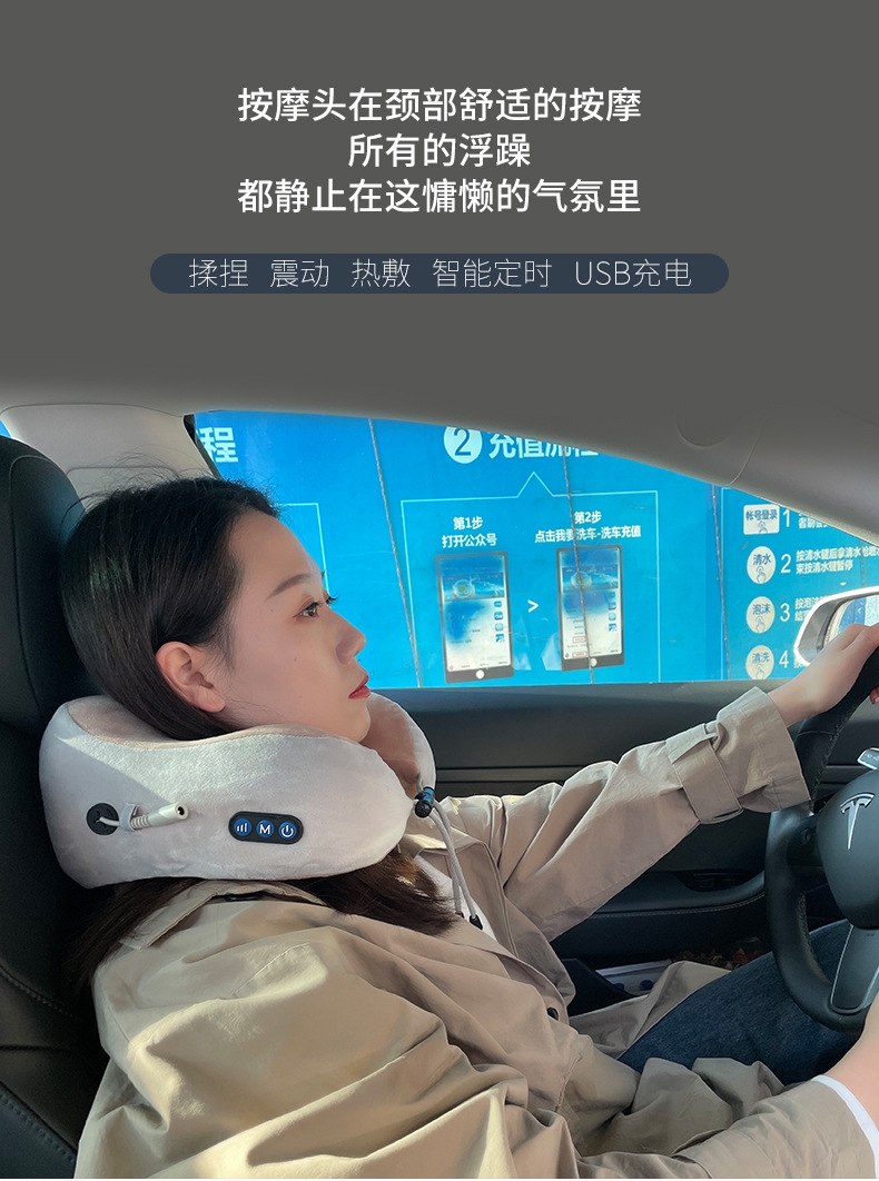 旅行随身按摩枕;U型枕贴合人体工学设计;随身携带,飞机高铁可枕,还能按摩放松