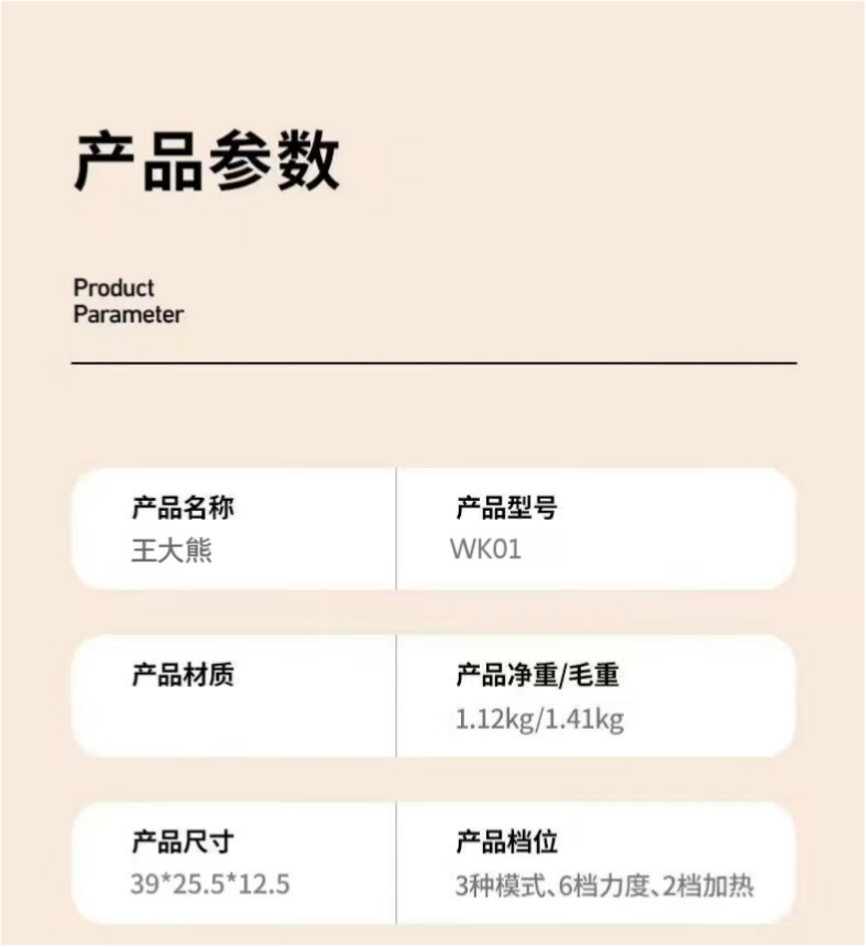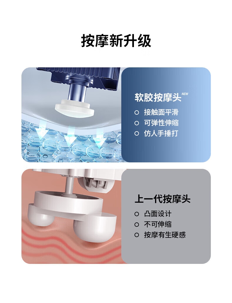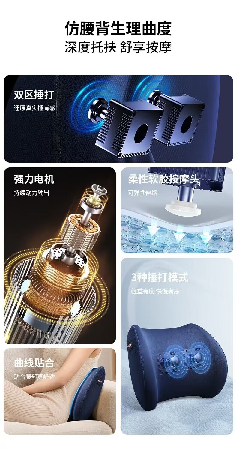 仿人手捶打按摩,前后捶打;独家专利捶打机芯;低压可持续工作1-2小时,比200V的安全可靠