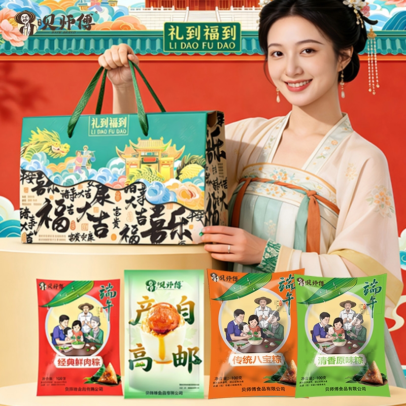 旎旎贝师傅 礼到福到粽子礼盒520g
