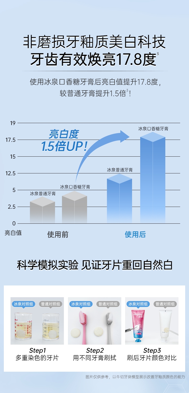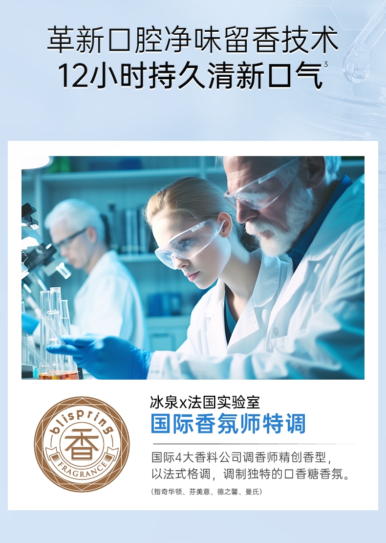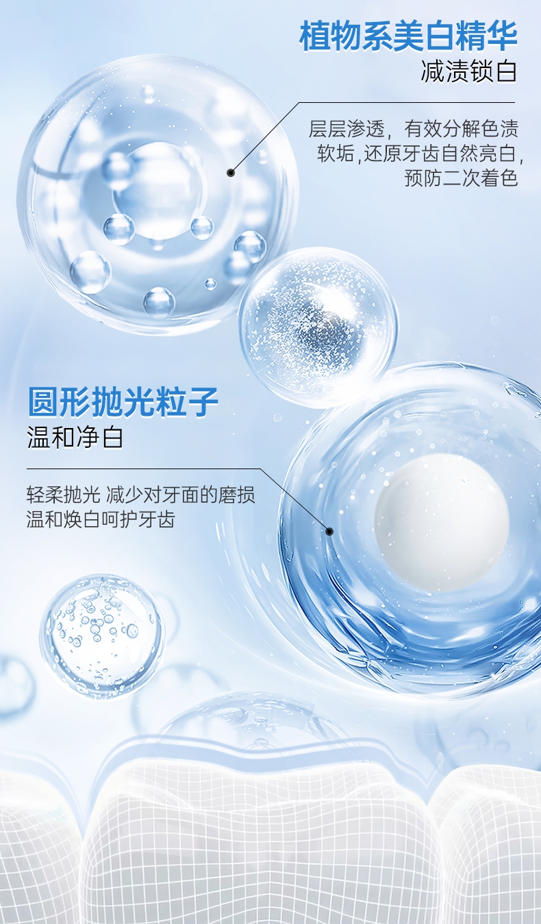 12小时持久清新口气;一刷即溶 香气四溢;圆形抛光粒子