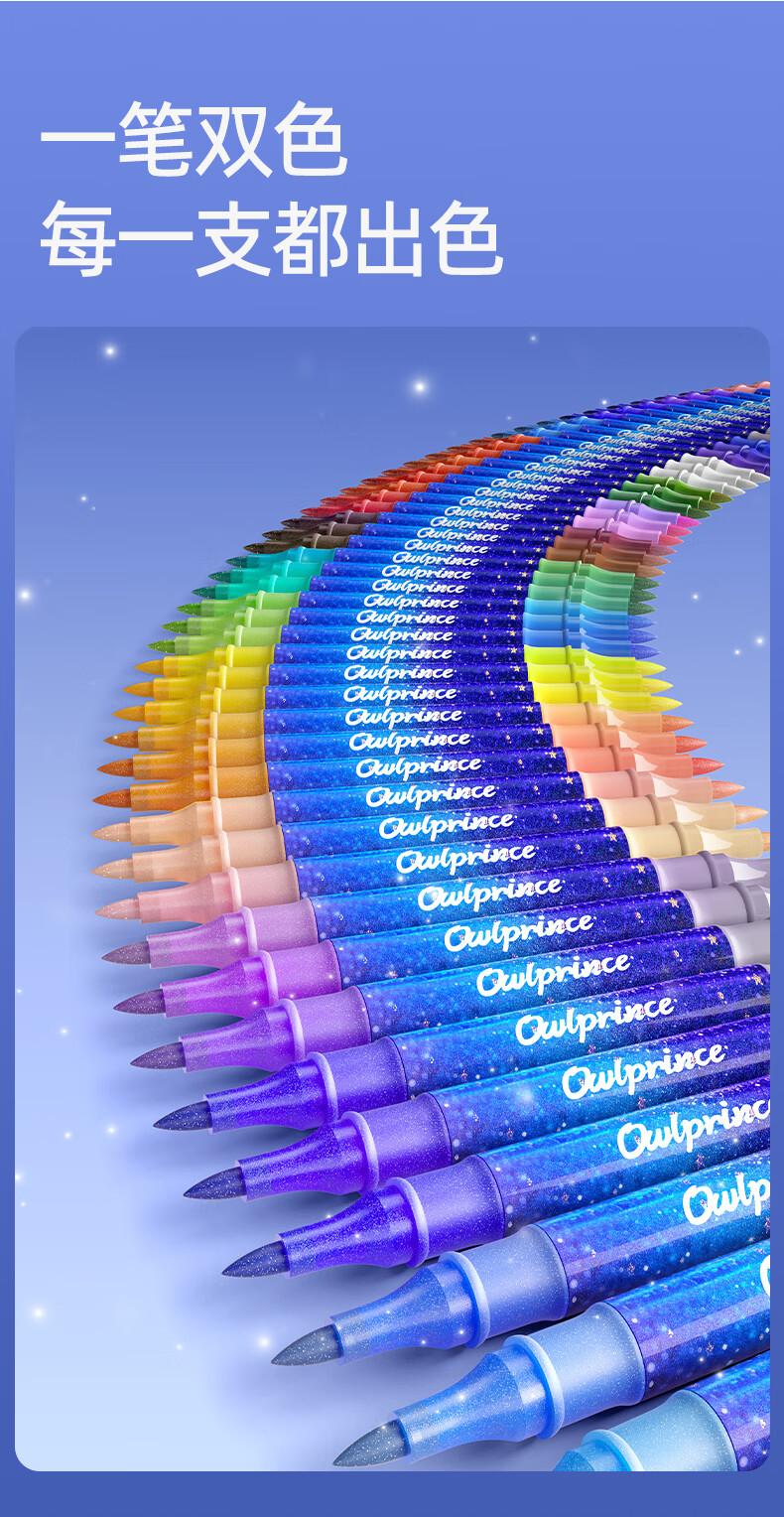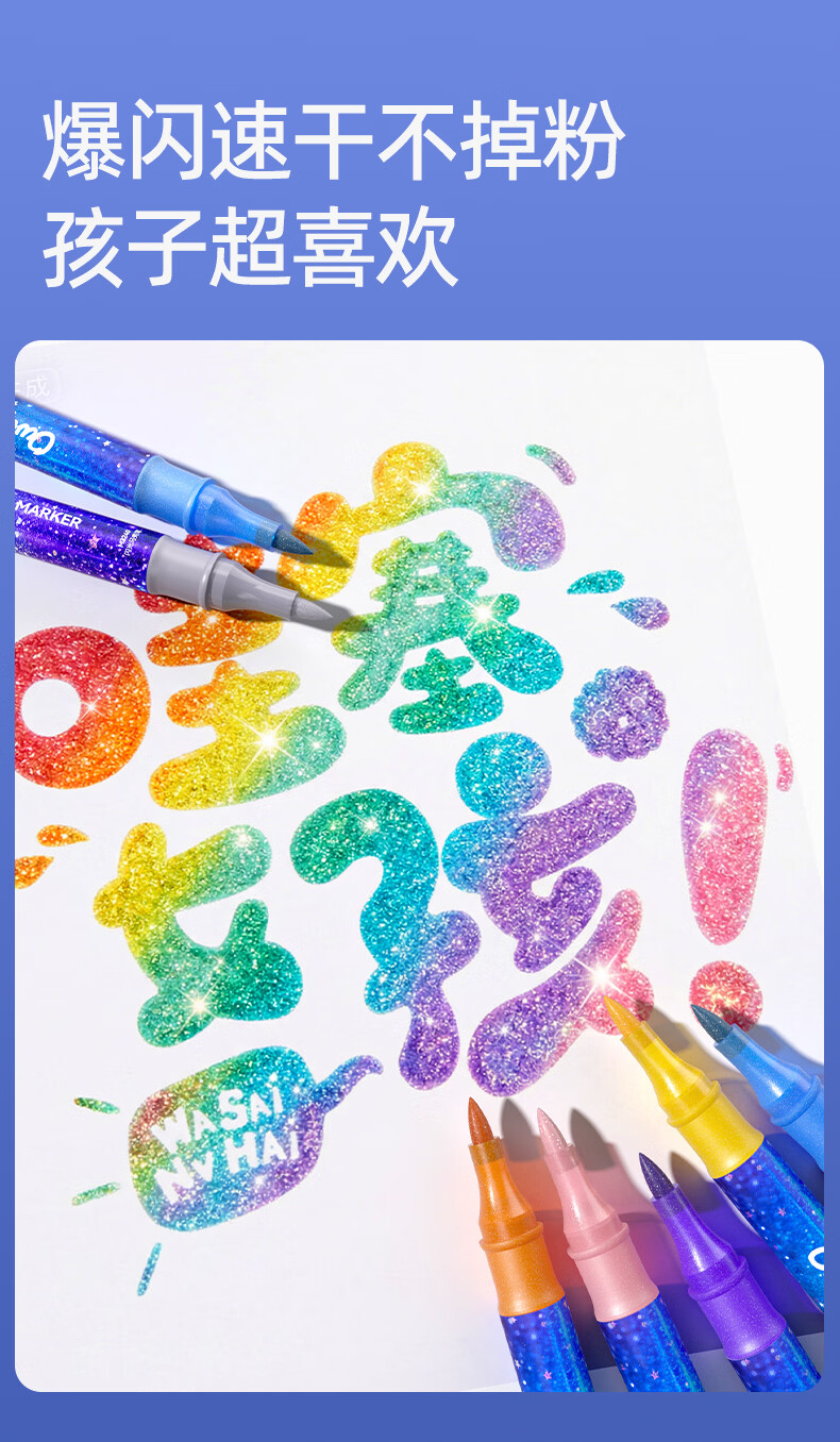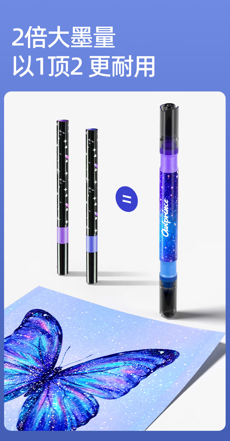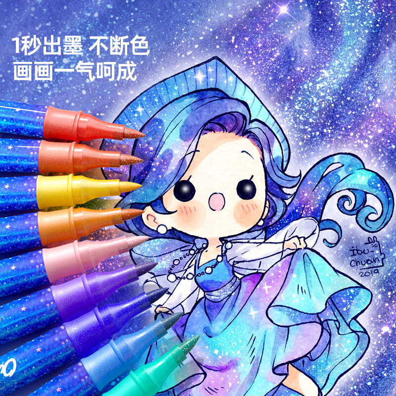 一笔双色,画画更方便;特研闪光墨,均匀不掉粉;丝滑不断色,1秒出墨