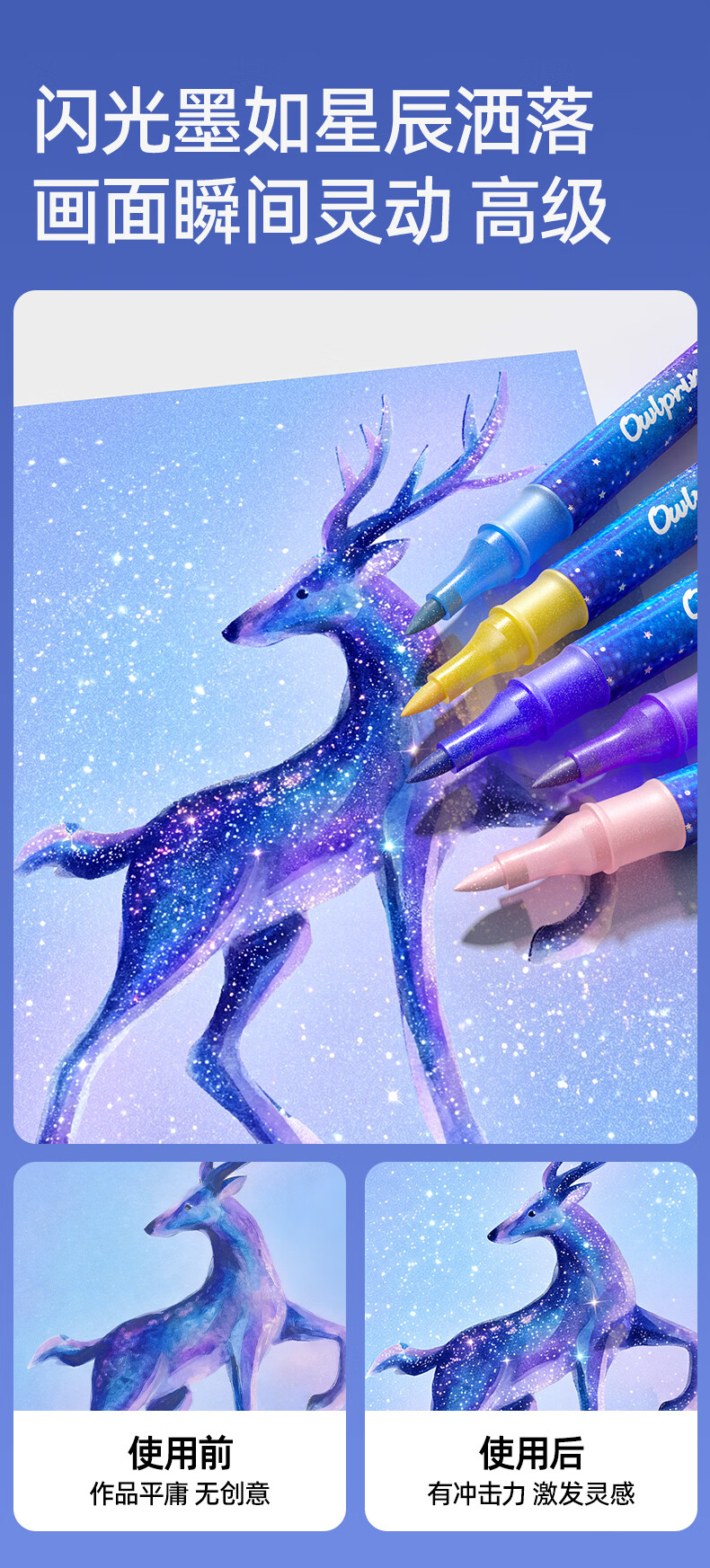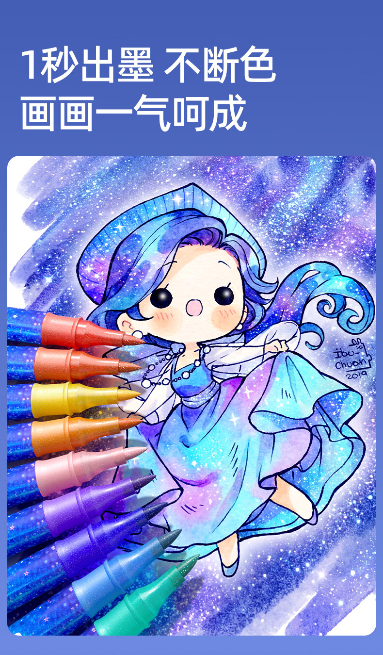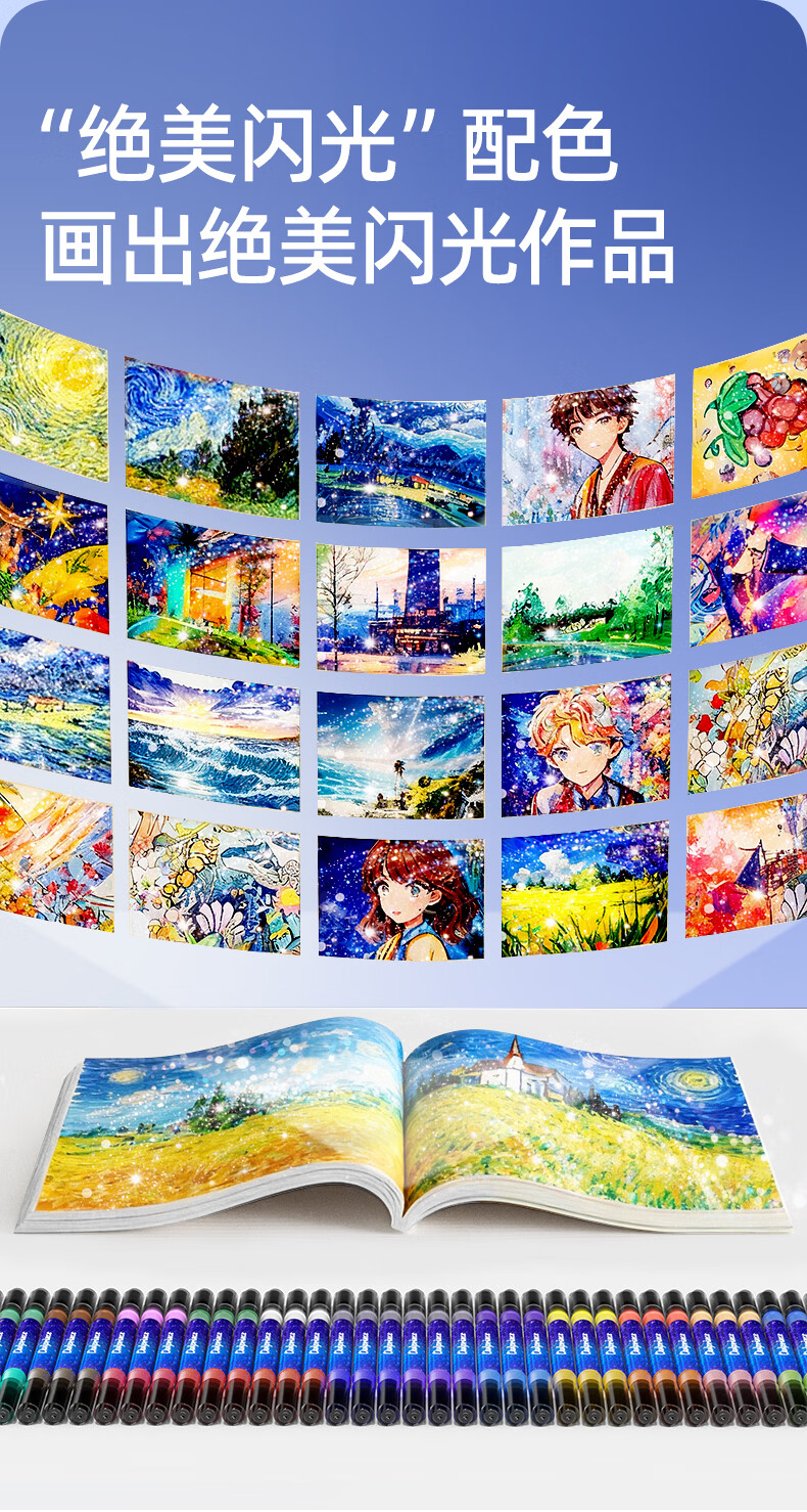一笔双色,画画更方便;特研闪光墨,均匀不掉粉;丝滑不断色,1秒出墨