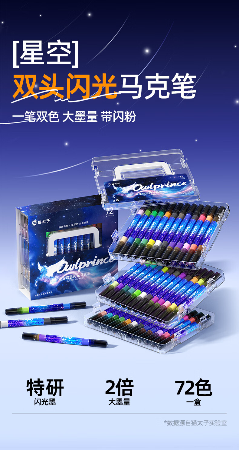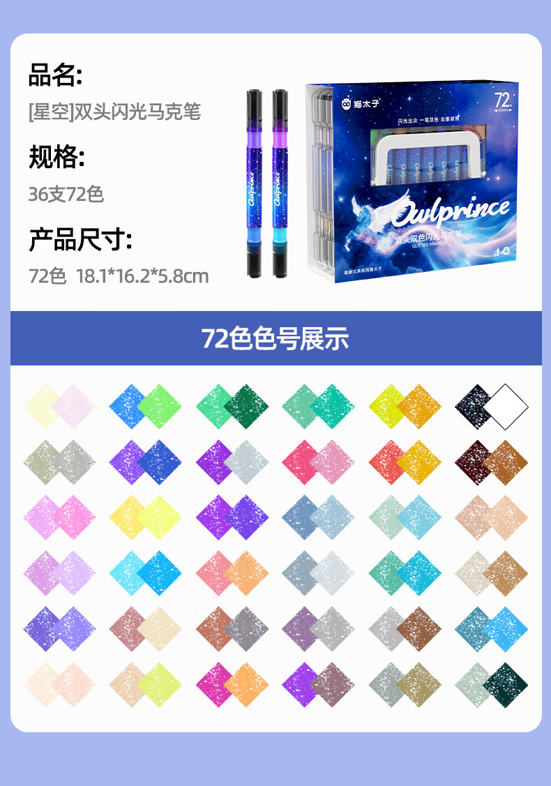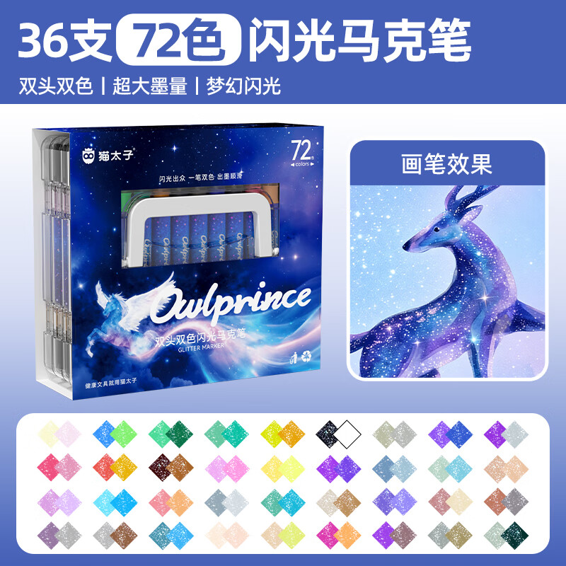 猫太子 双头双色闪光马克笔36支72色10122M3240C
