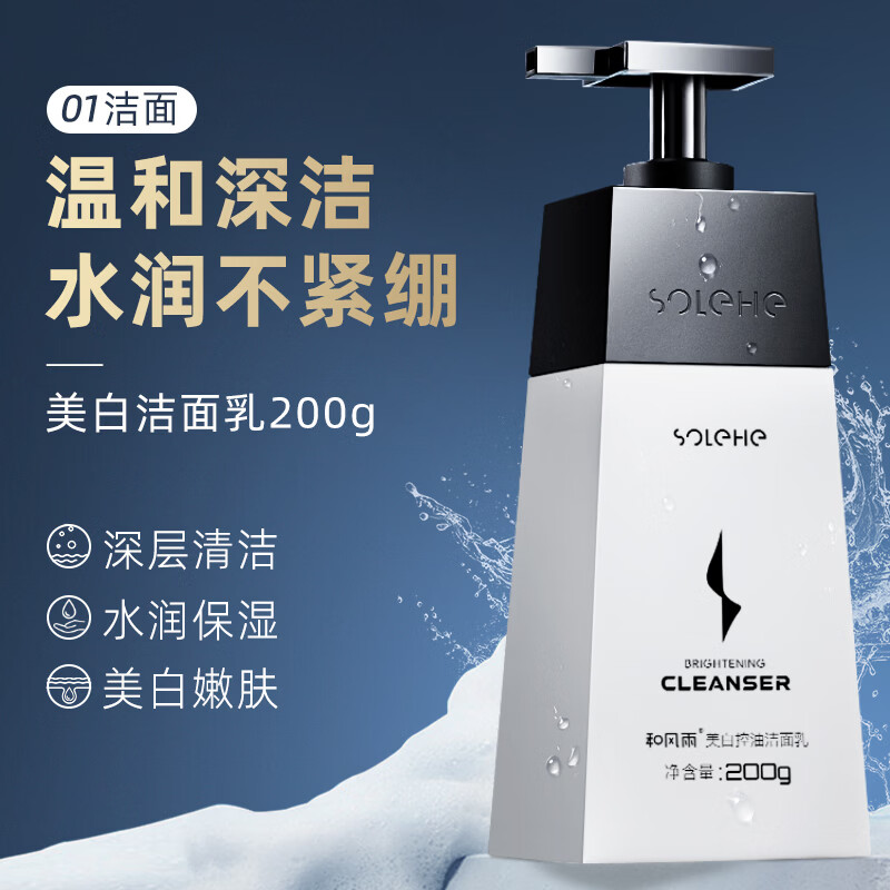 美白控油洁面乳200g:深层清洁美白提亮 控油平衡;氨基酸温和配方:温和清洁头皮和头发,不刺激头皮;高性价比:大容量设计,经济实惠,满足家庭长期使用
