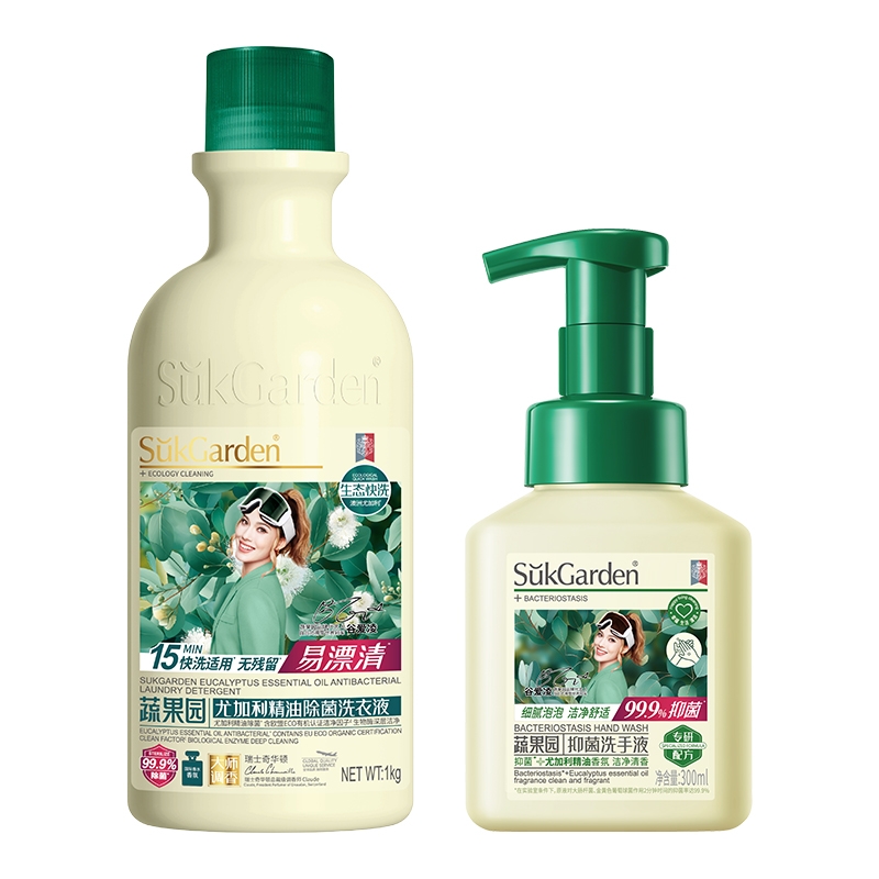 配置清单: SukGarden蔬果园尤加利精油除菌洗衣液1kg SukGarden蔬果园尤加利精油除菌洗衣液1kg SukGarden蔬果园茉莉白山茶香氛洗衣液500g SukGarden蔬果园茉莉白山茶香氛内衣洗衣液300g SukGarden蔬果园尤加利精油抑菌洗手液300ml SukGarden蔬果园精美礼盒-谷爱凌版ML02