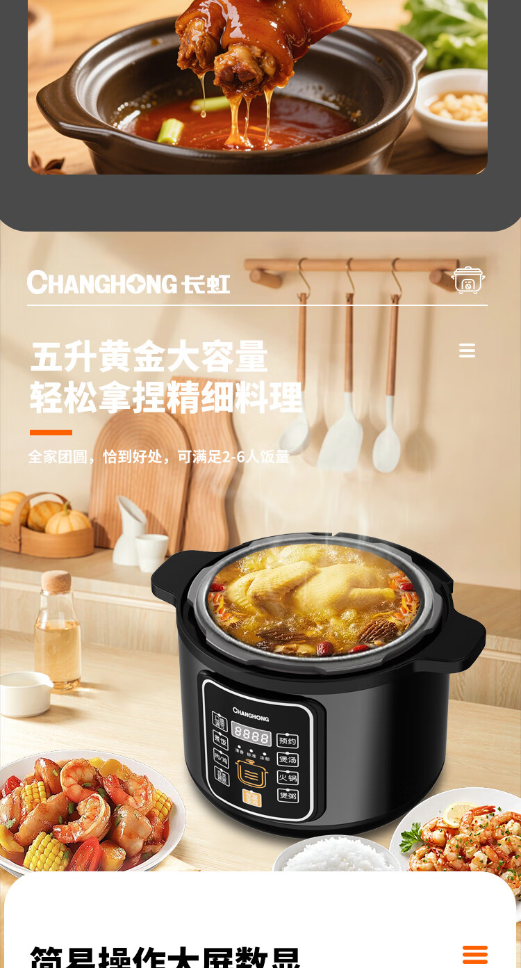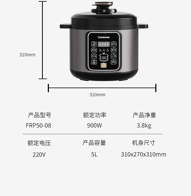 长虹 电压力锅5L家用电饭煲高压FRP50-08