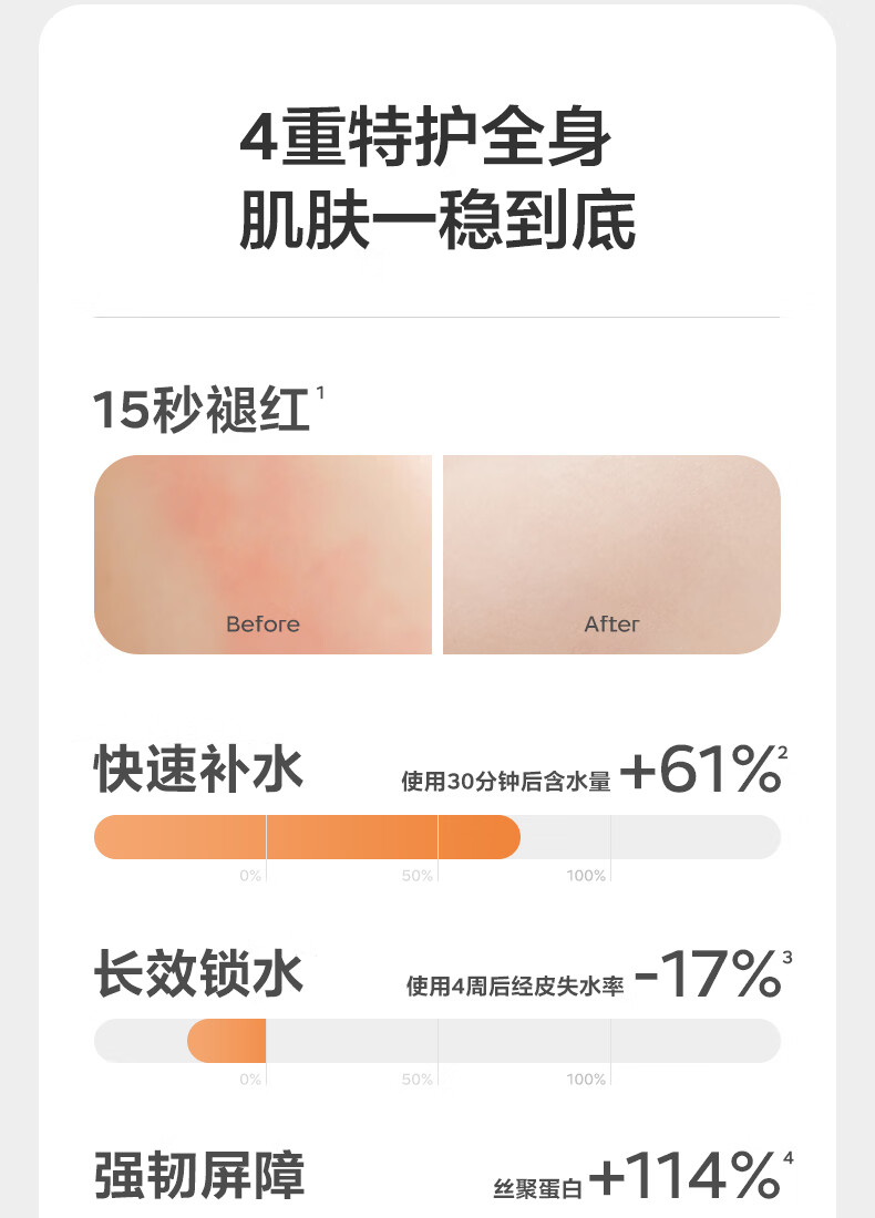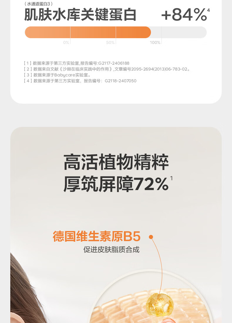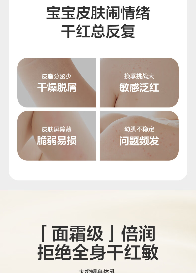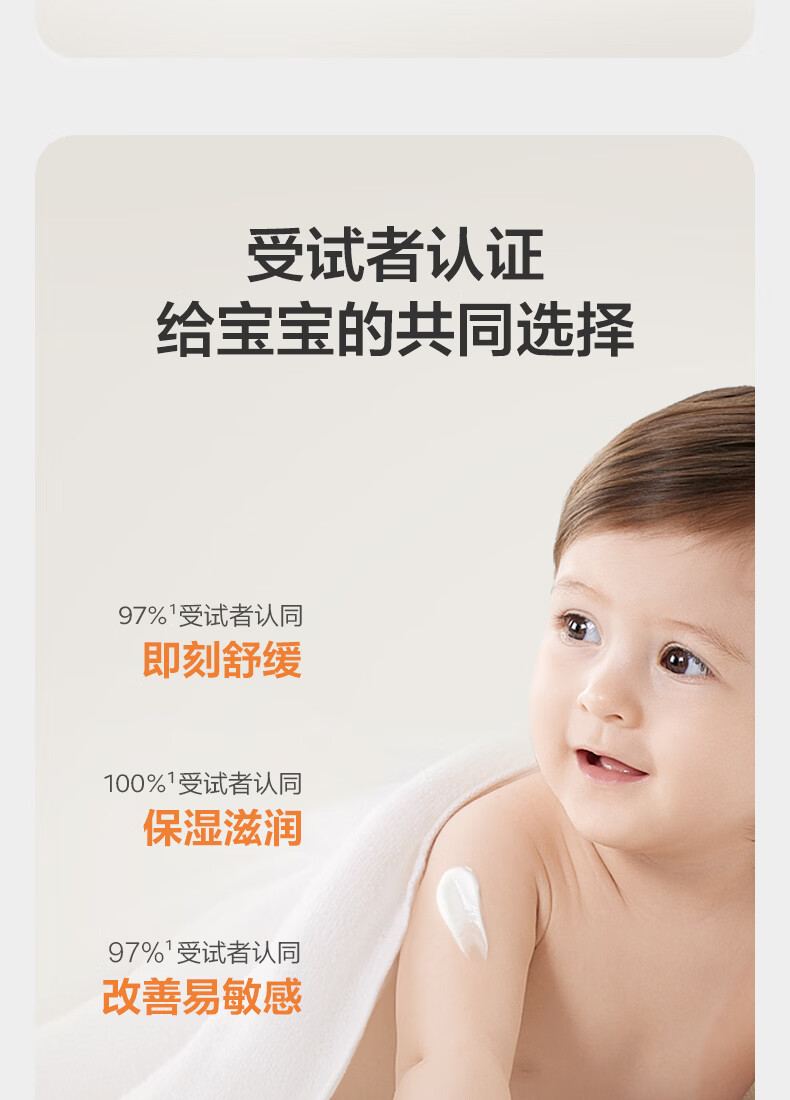 面霜级倍润,提高全身自护力;宝宝肌研所,专研幼肌自护力;莹润易吸收,润护一整天