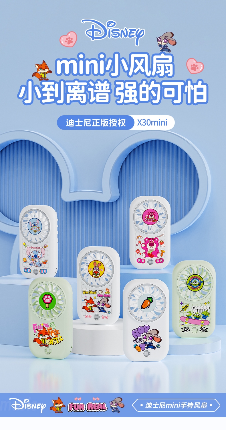 迪士尼 散热手持迷你便携随身户外电风扇X30mini
