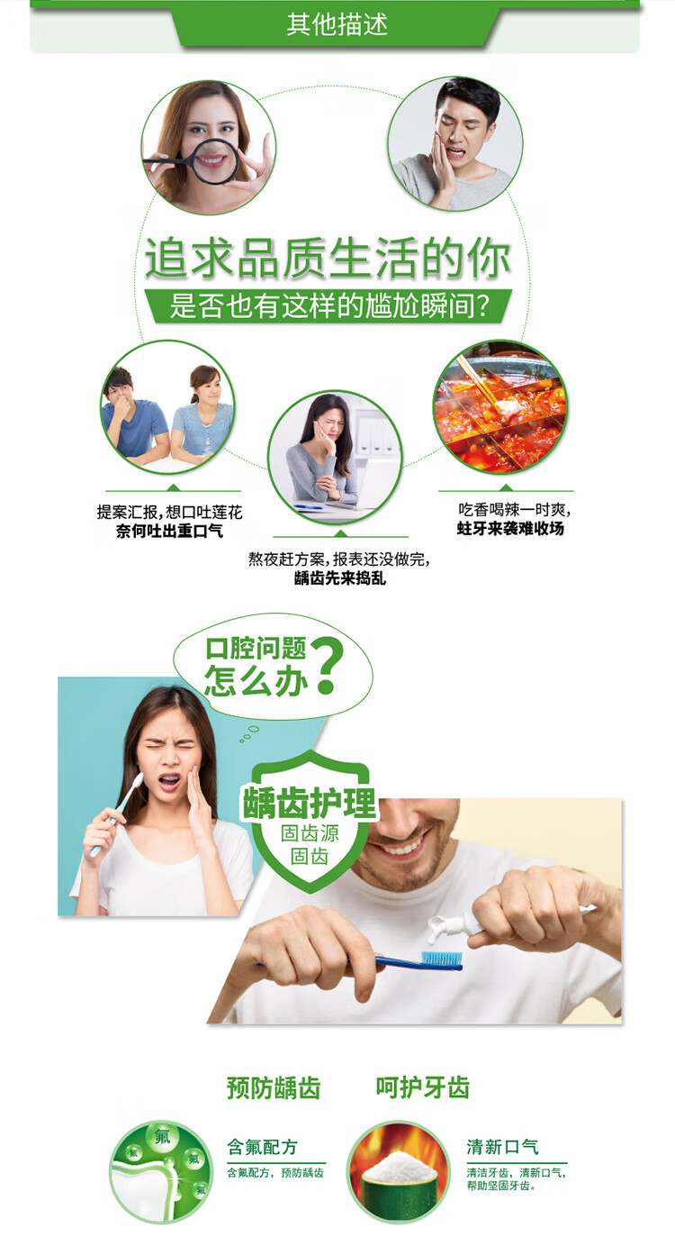 功能:防蛀固齿,清新口气,牙周护理,牙龈护理
