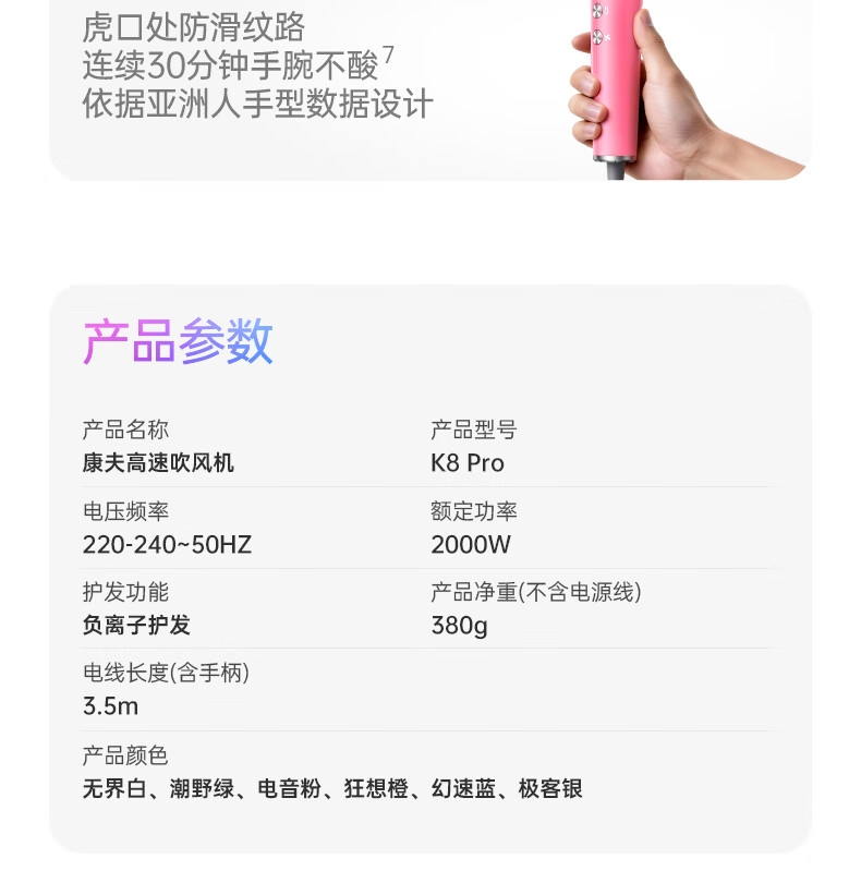 康夫 家用高速电吹风机K8Pro