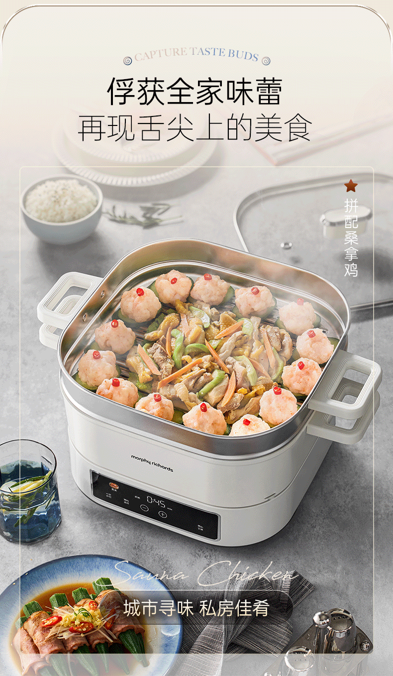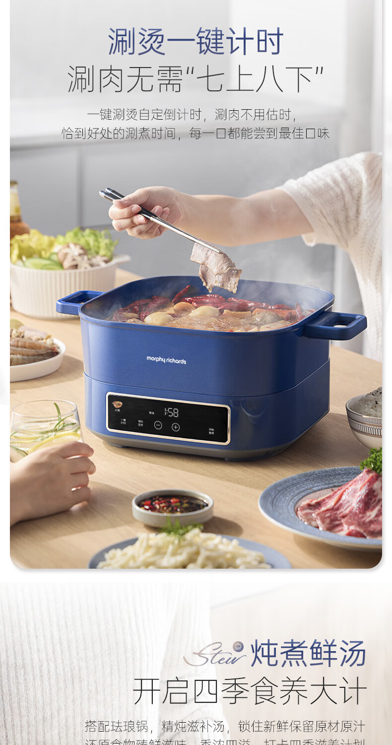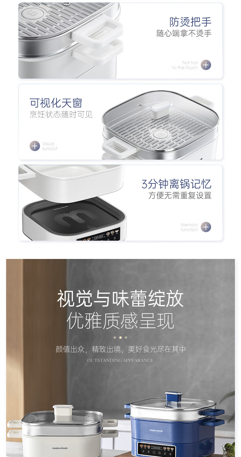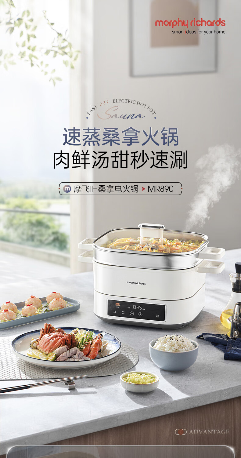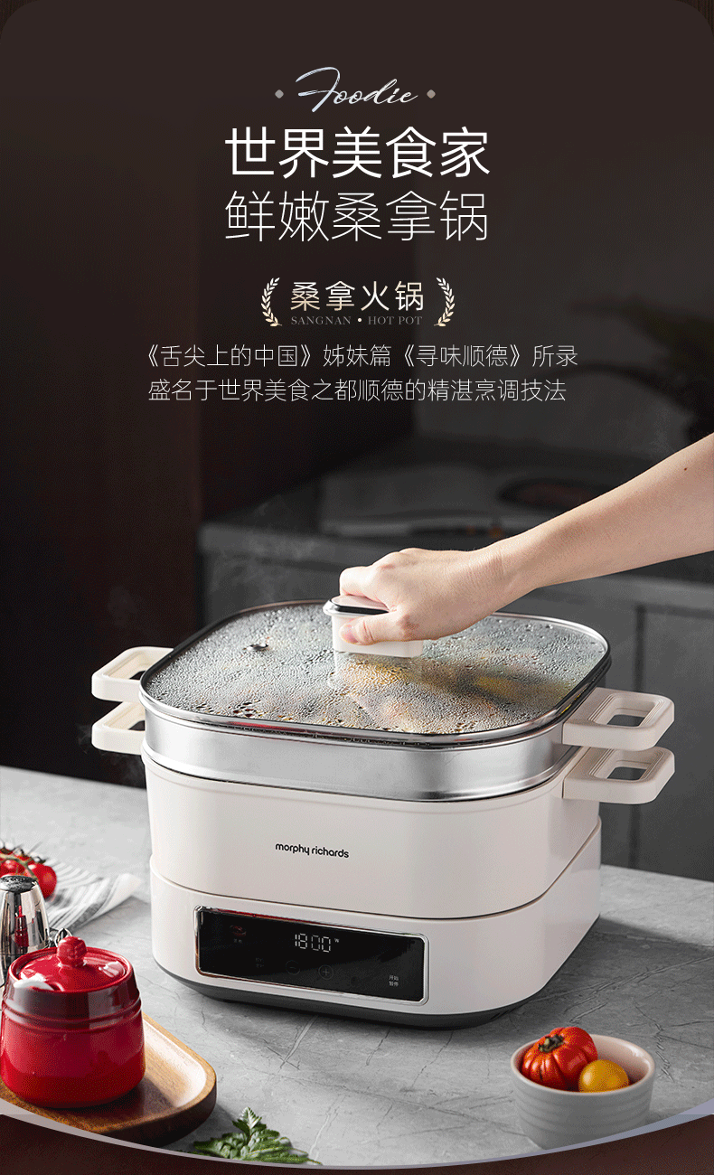 桑拿火锅上蒸下炖 肉嫩汤鲜;;速沸快涮畅快嗨聚 黄金口感:;IH百搭锅具烹饪自由 花样料理;