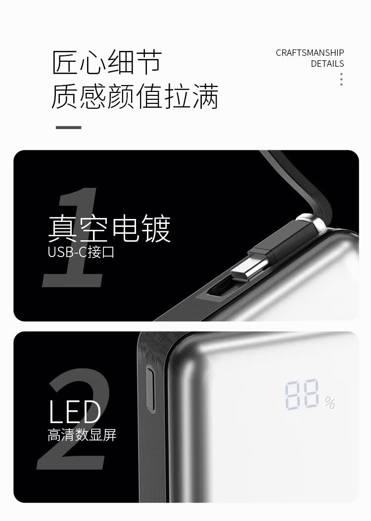 功能:双向快充,自带数据线,自带屏幕显示