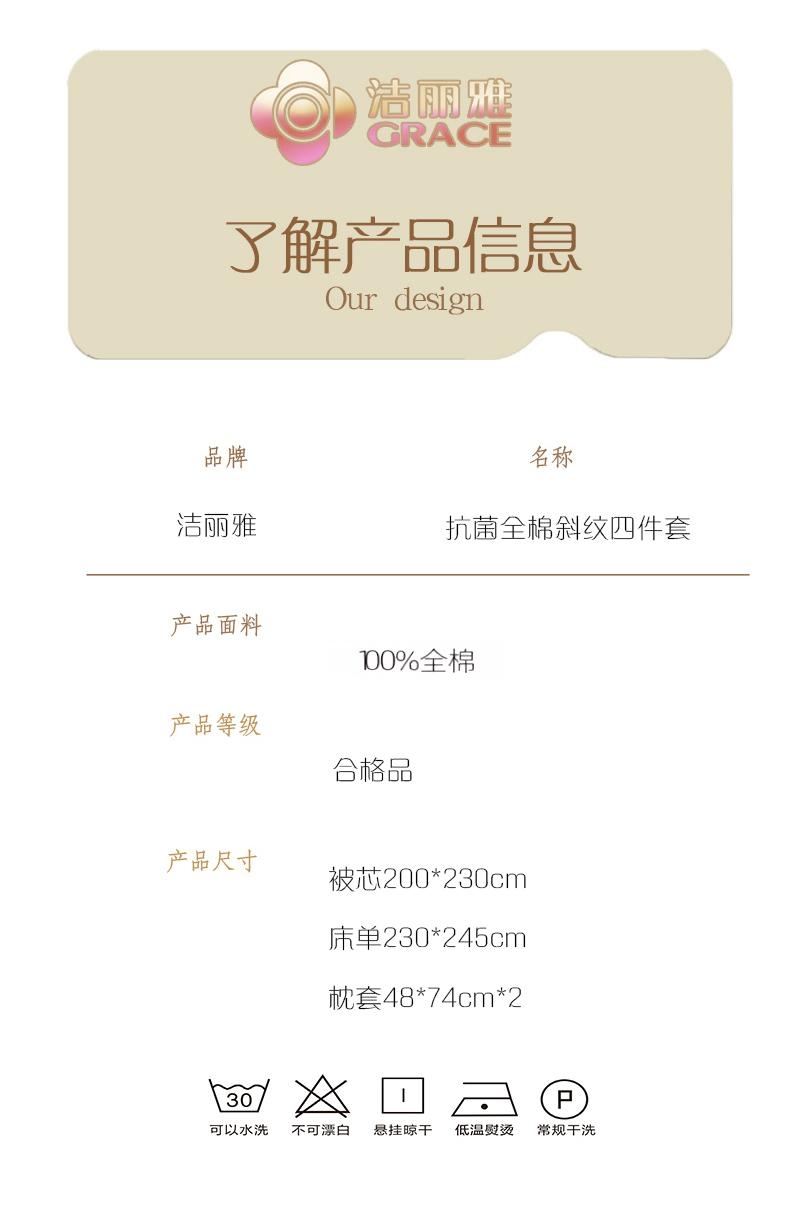 洁丽雅 抗菌全棉斜纹四件套CP1625