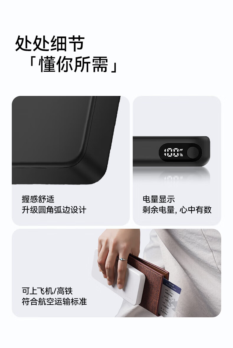 握感舒适,升级圆角弧边设计;电量显示,剩余电量,心中有数;可上飞机/高铁,符合航空运输标准