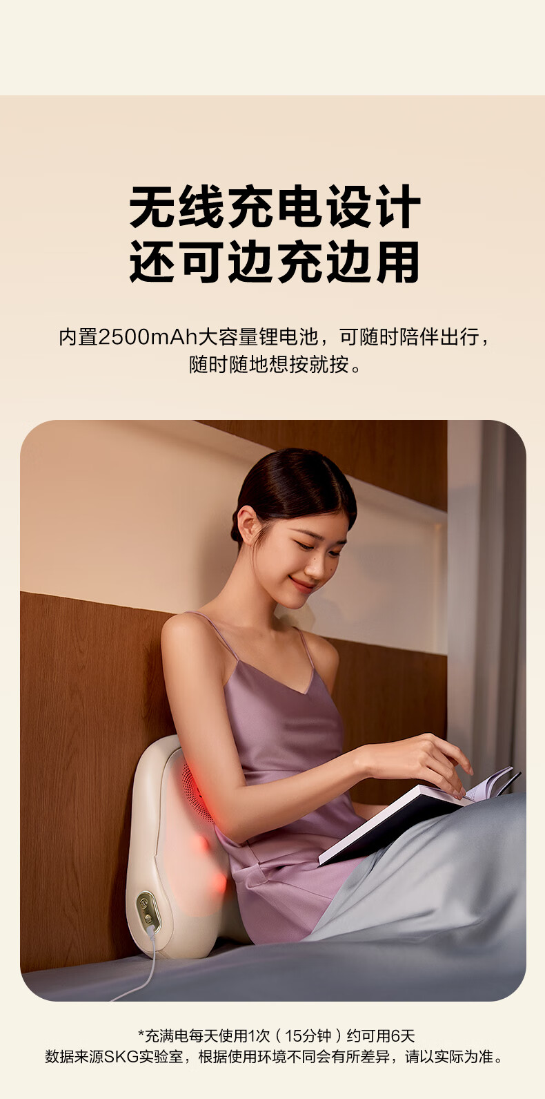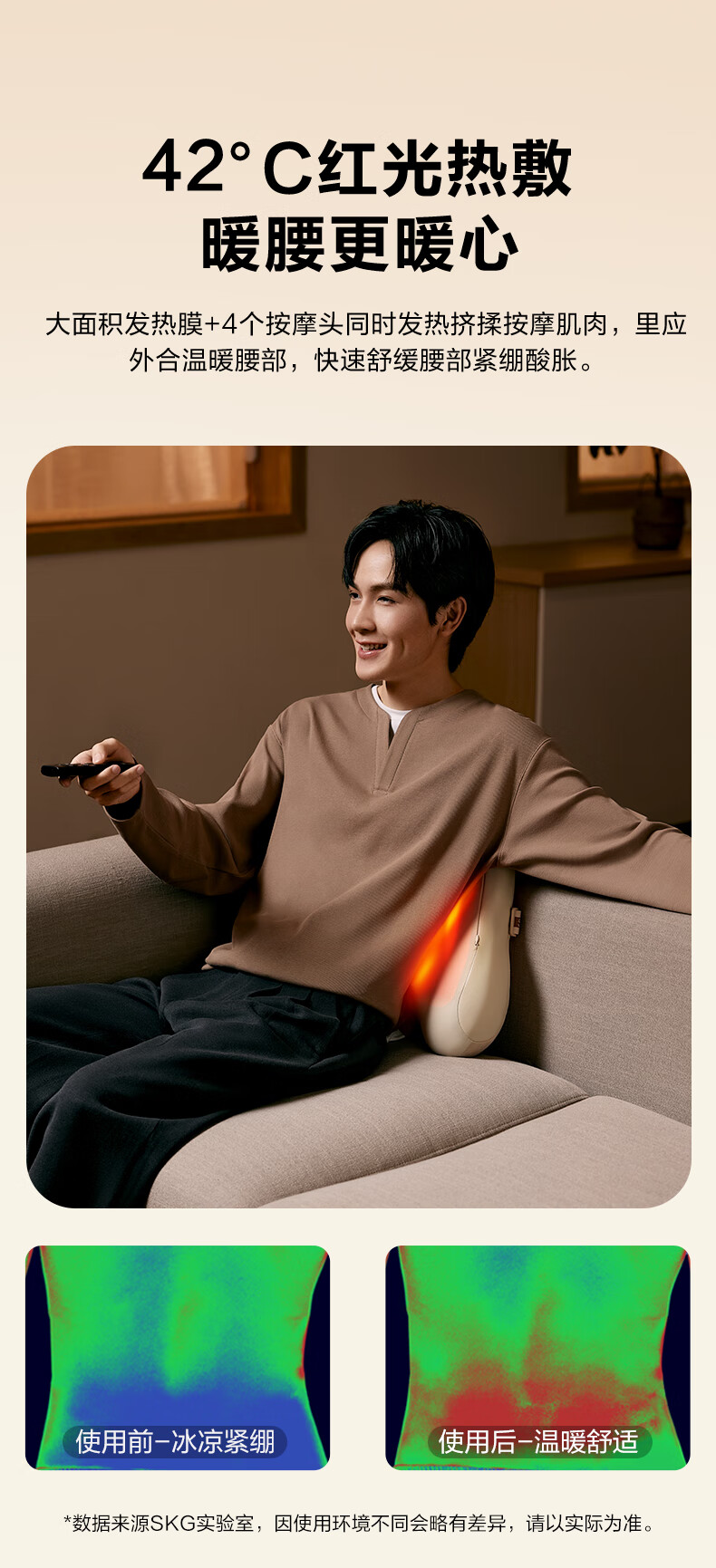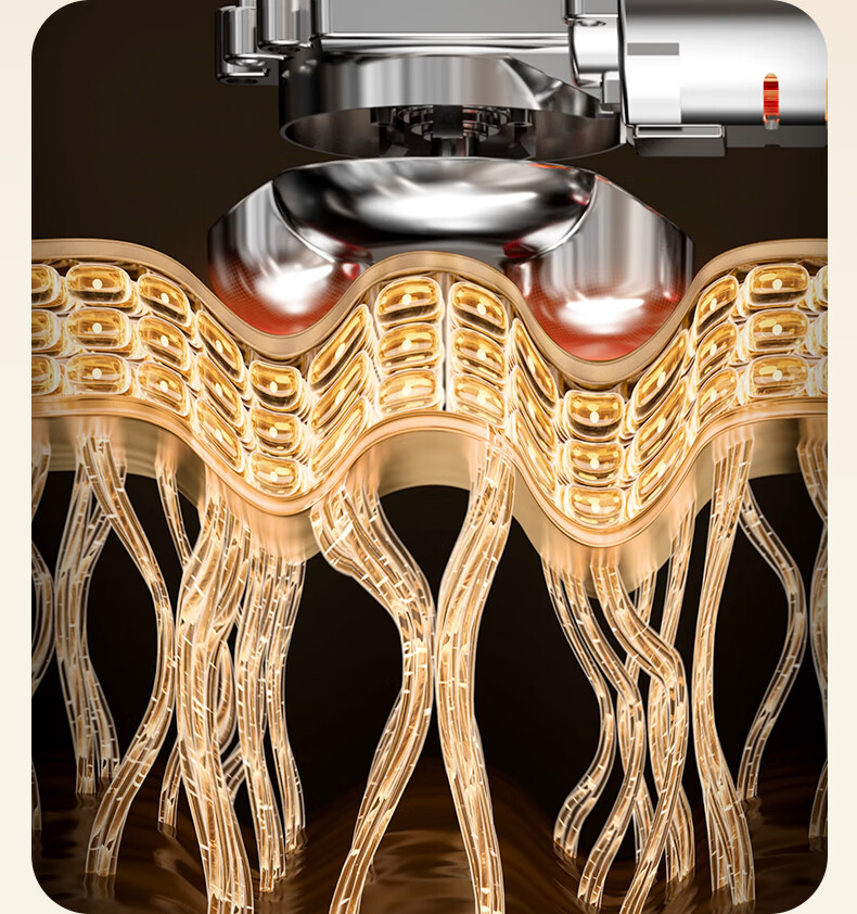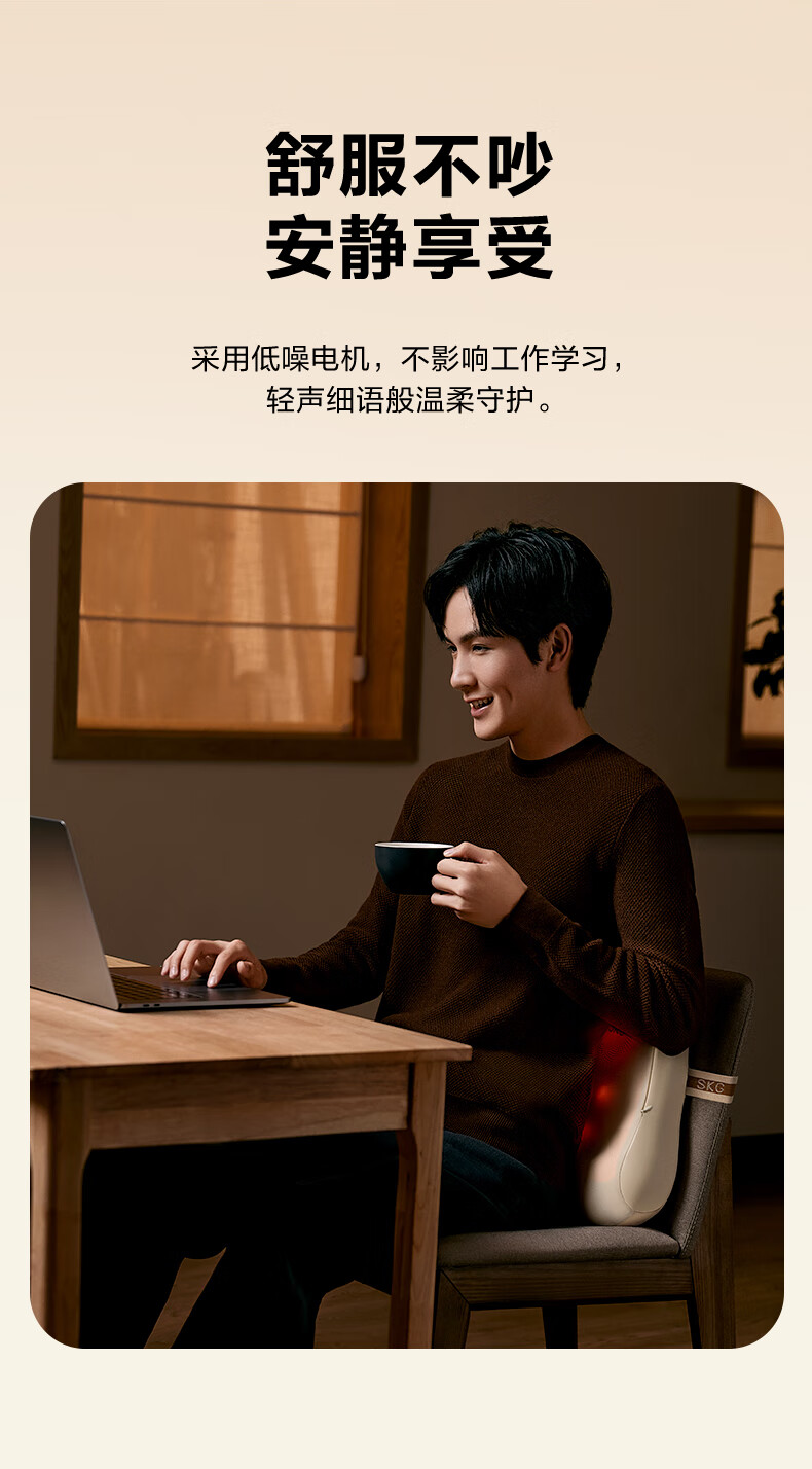 模拟双手推揉,直击深层酸累;2大2小按摩头,深浅交替按得爽;大面积红光热敷,暖暖的加倍放松