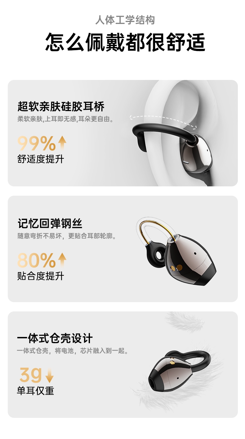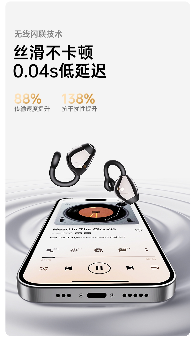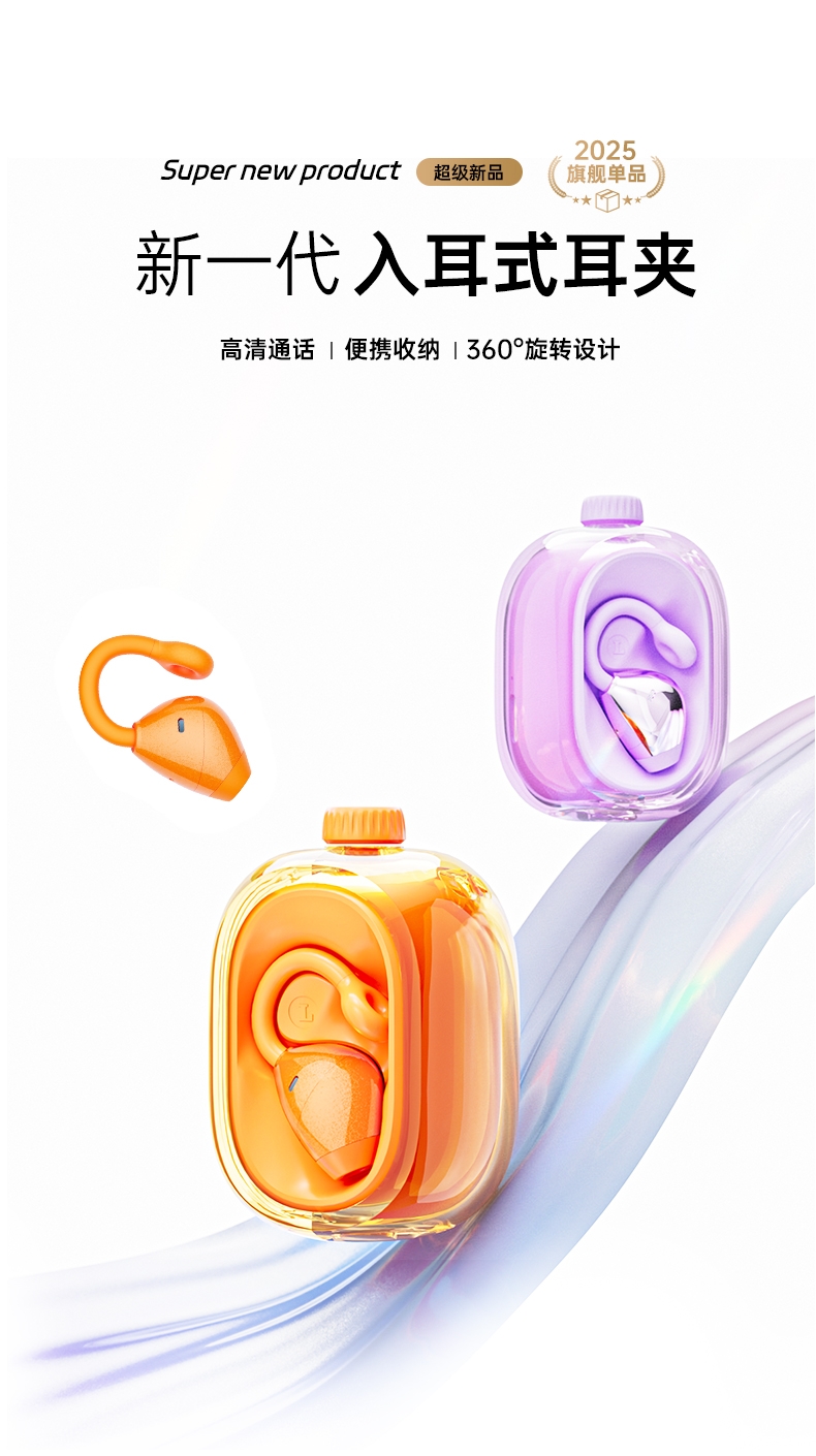 无线双耳耳夹式;佩戴舒适不伤耳;炫彩色可选