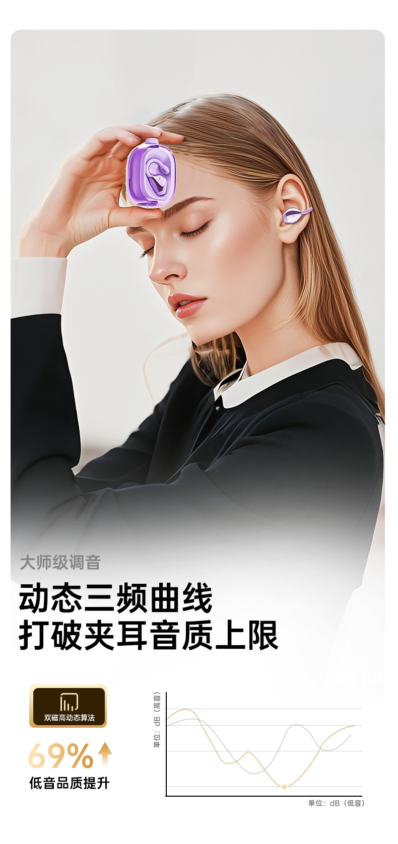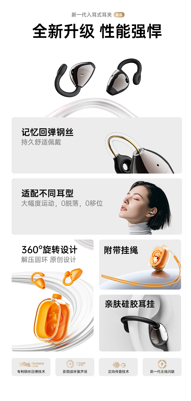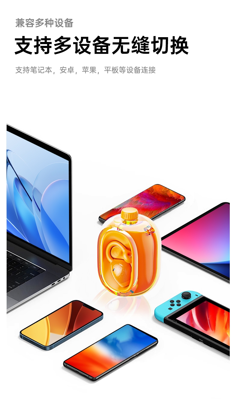 无线双耳耳夹式;佩戴舒适不伤耳;炫彩色可选