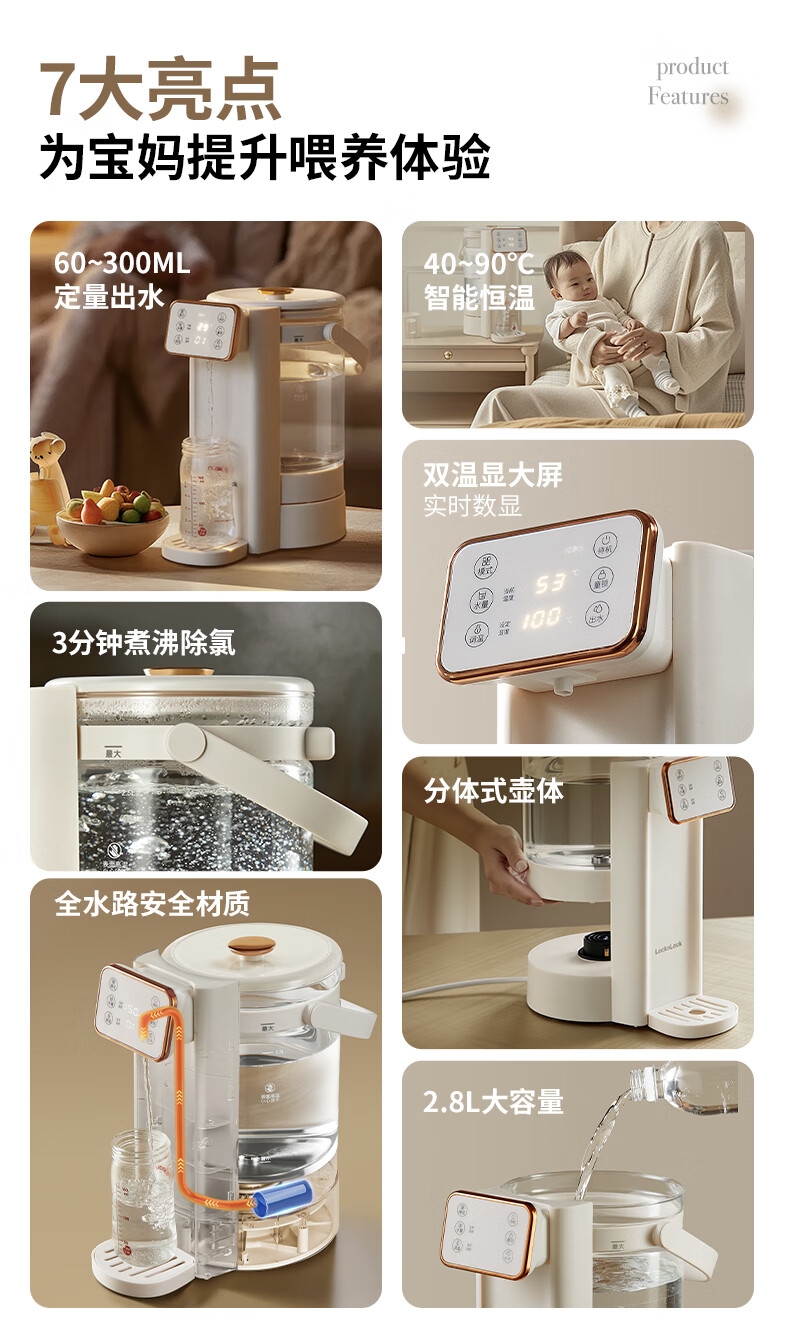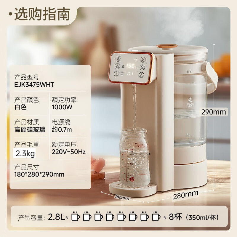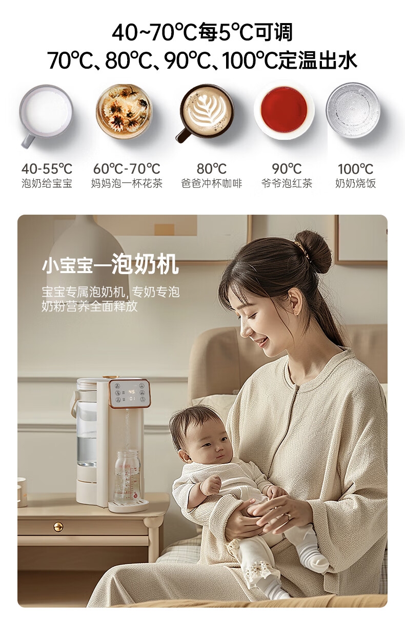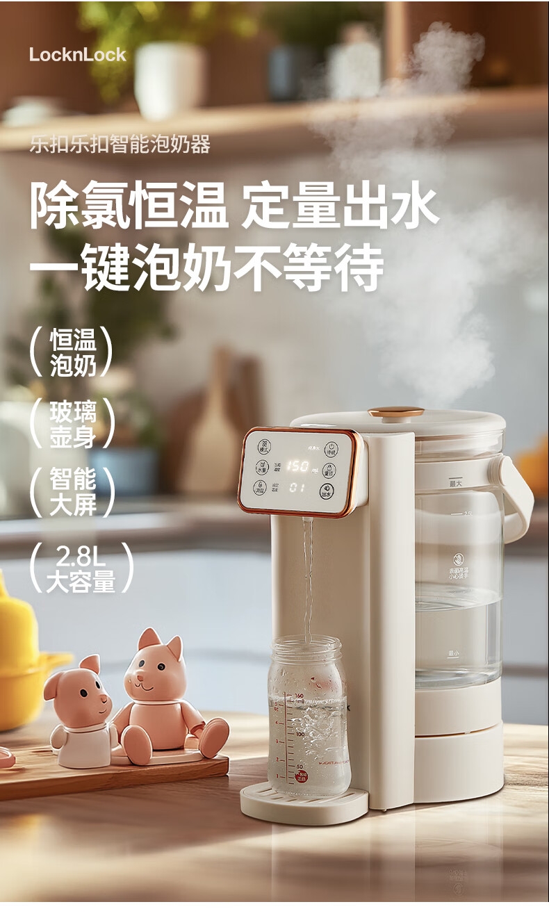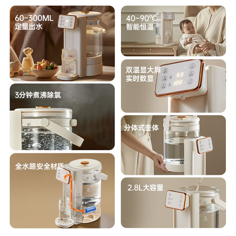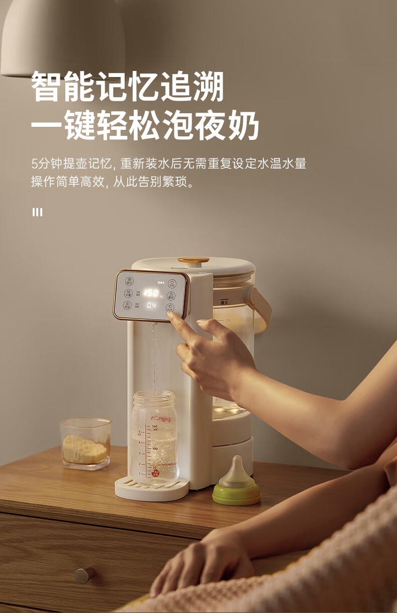 智能记忆追溯,一键轻松泡夜奶;2.8L家庭大容量,满足全家泡饮需求;精温出水,科学泡奶