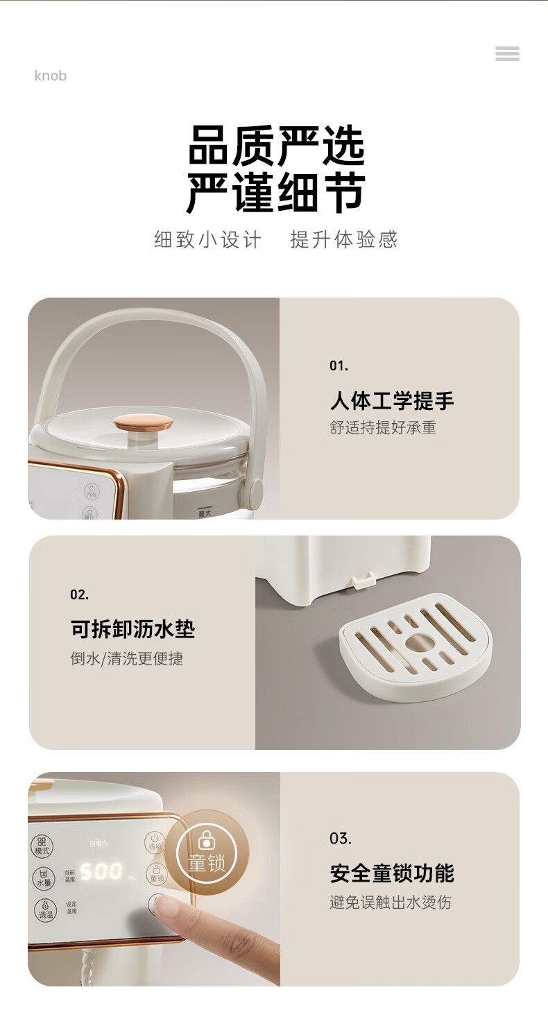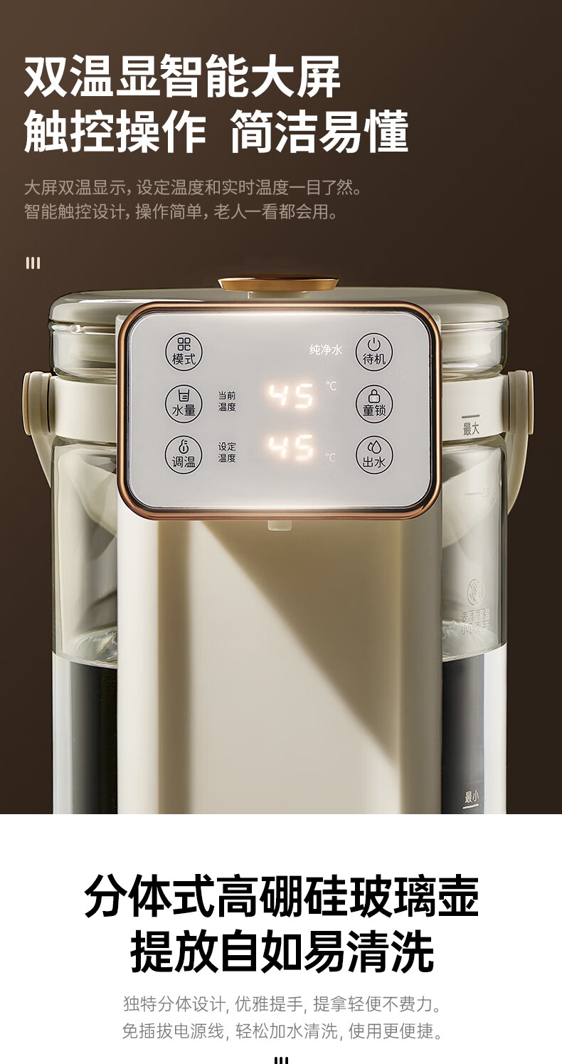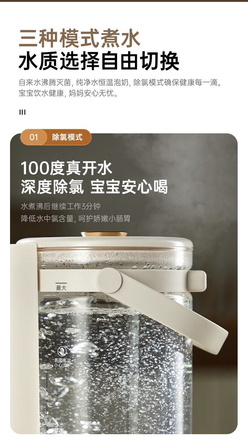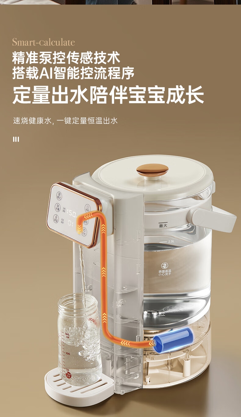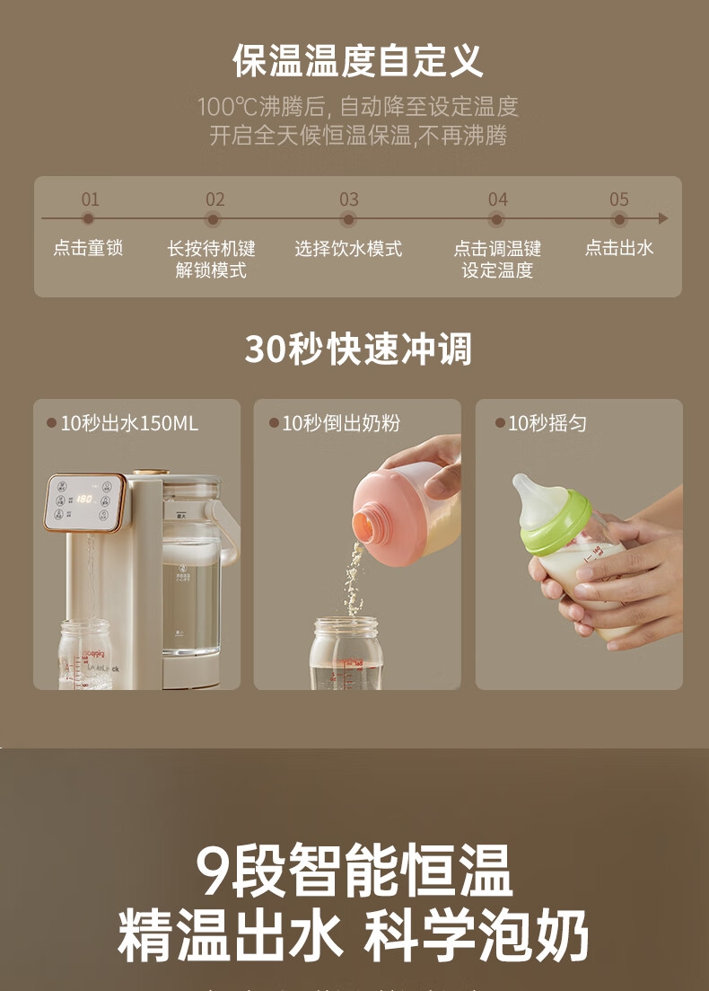 智能记忆追溯,一键轻松泡夜奶;2.8L家庭大容量,满足全家泡饮需求;精温出水,科学泡奶