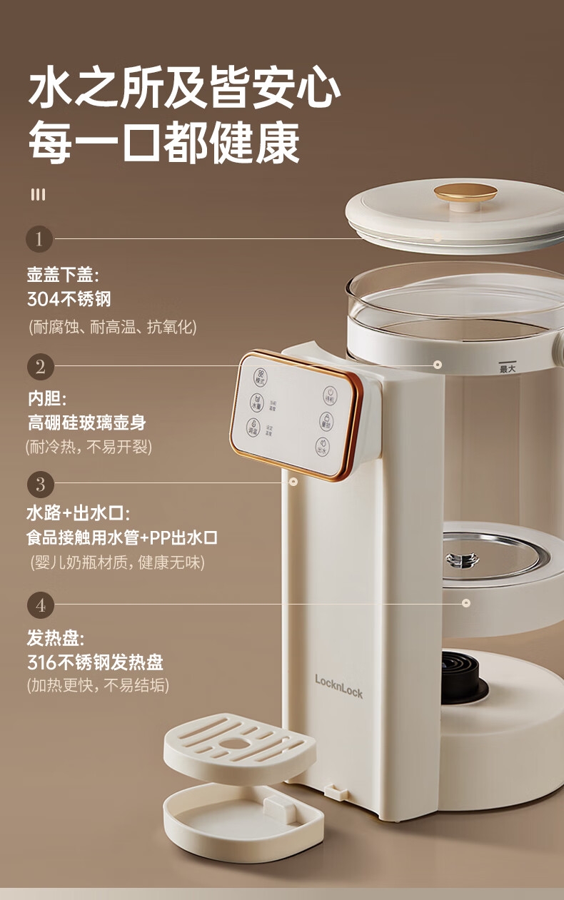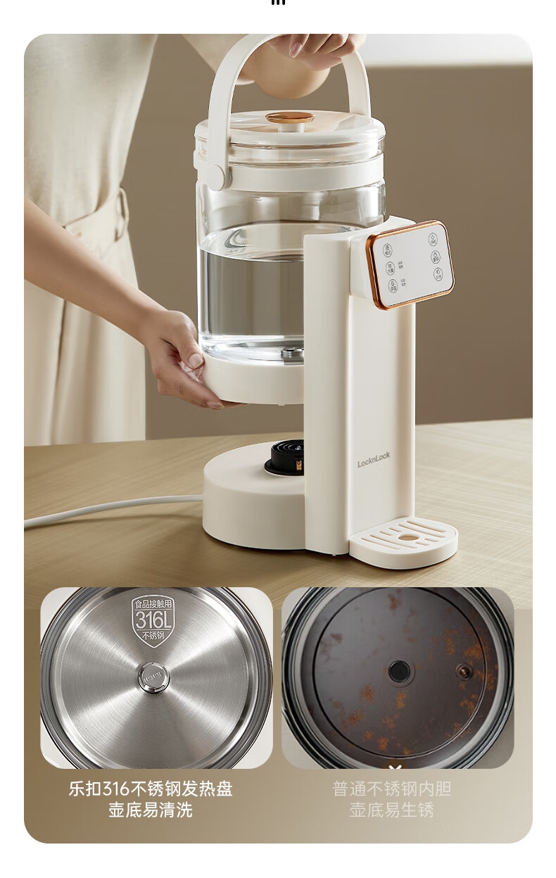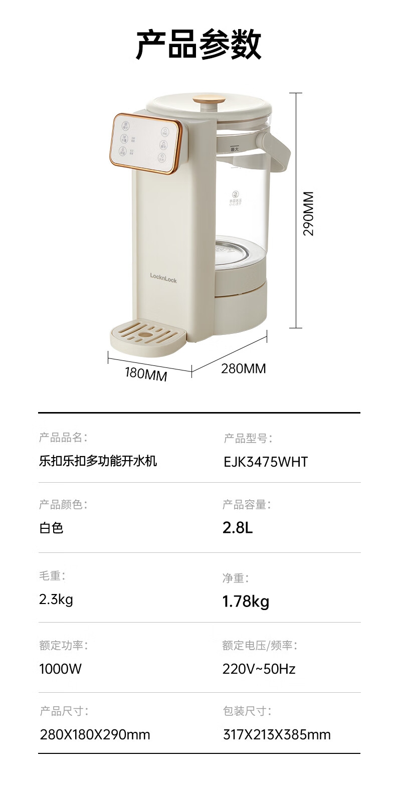 乐扣乐扣 多功能电水壶家用热水壶2.8LEJK3475WHT