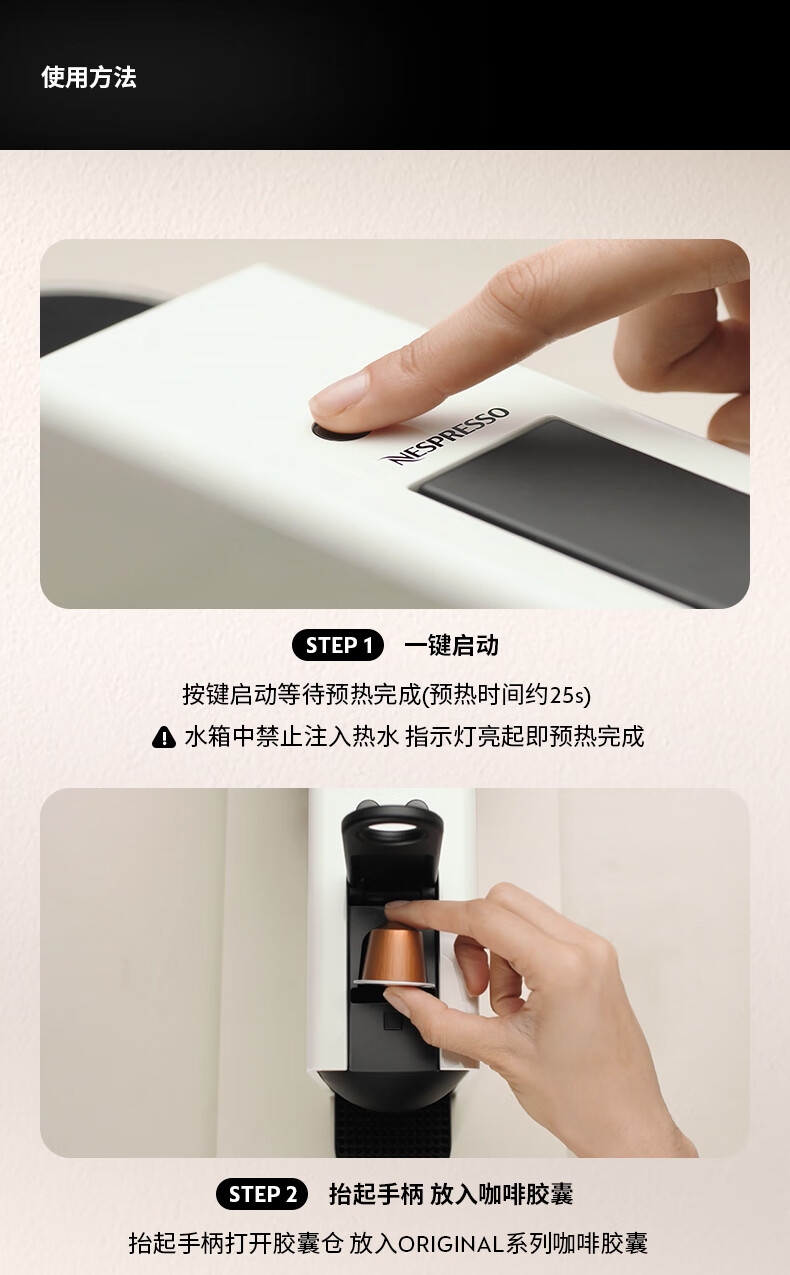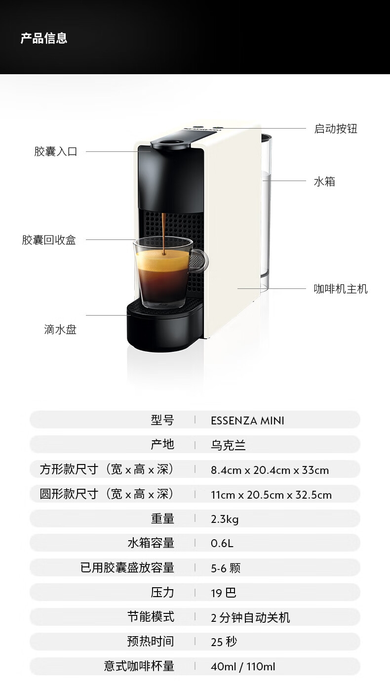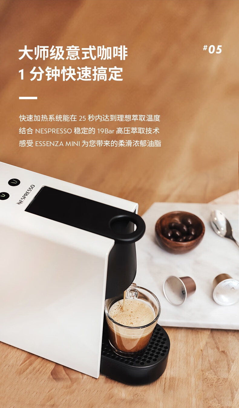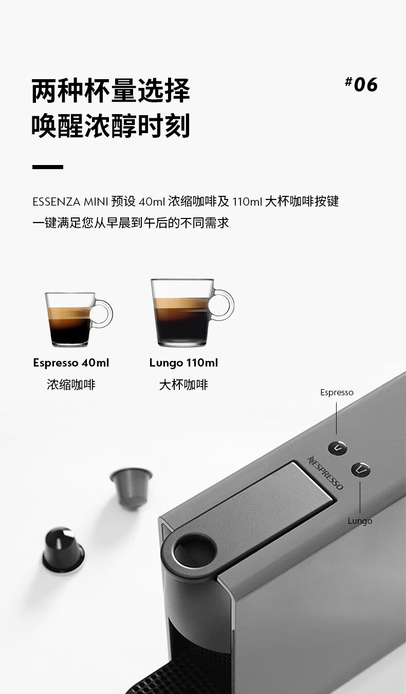 小巧便携;高压萃取意式进口两种杯量选择;1分钟快速搞定