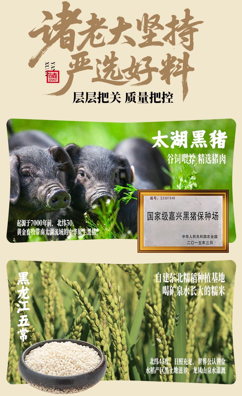 严格遵守食品安全标准,确保产品的卫生和安全。;采用传统手工制作工艺,确保粽子的形状、口感和风味符;选用优质糯米、新鲜肉类、海鲜等食材,确保粽子的口感