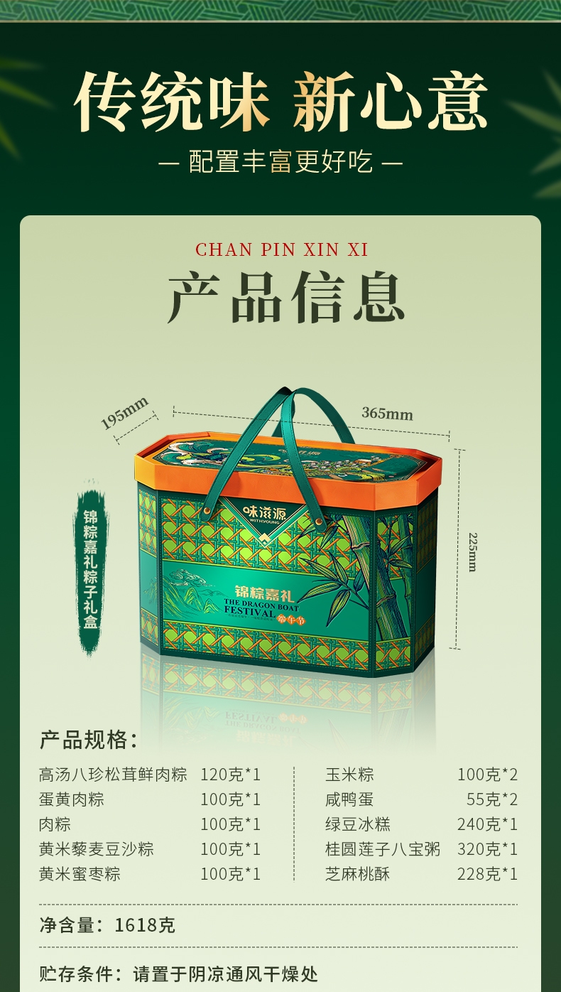 味滋源 预售锦粽提篮粽子礼盒1618g