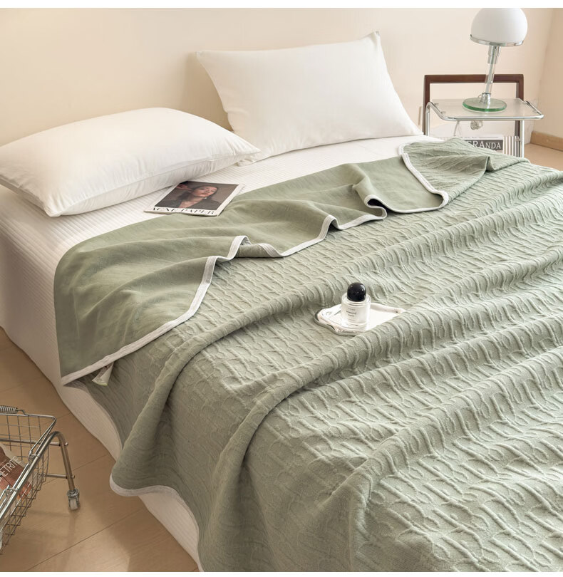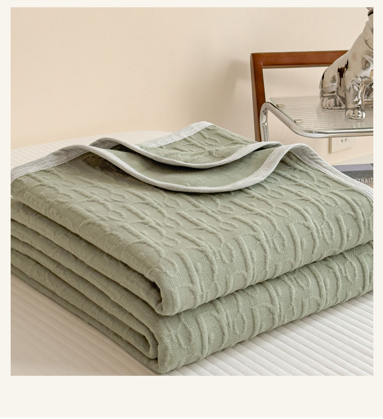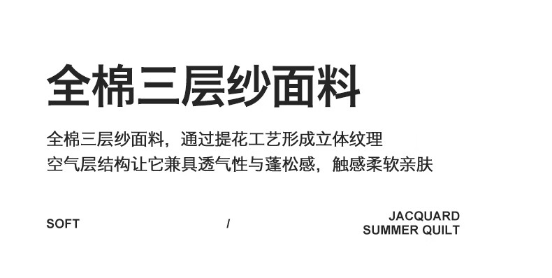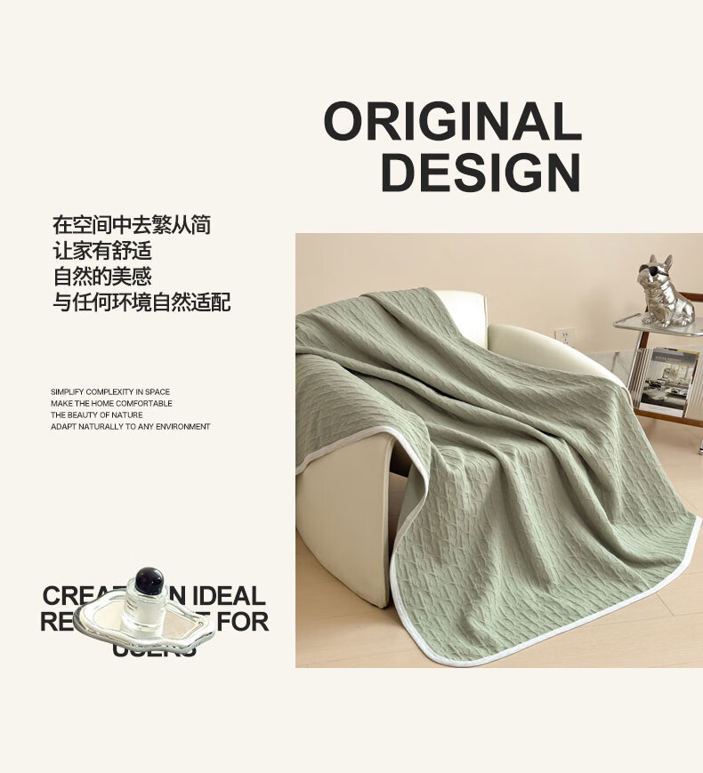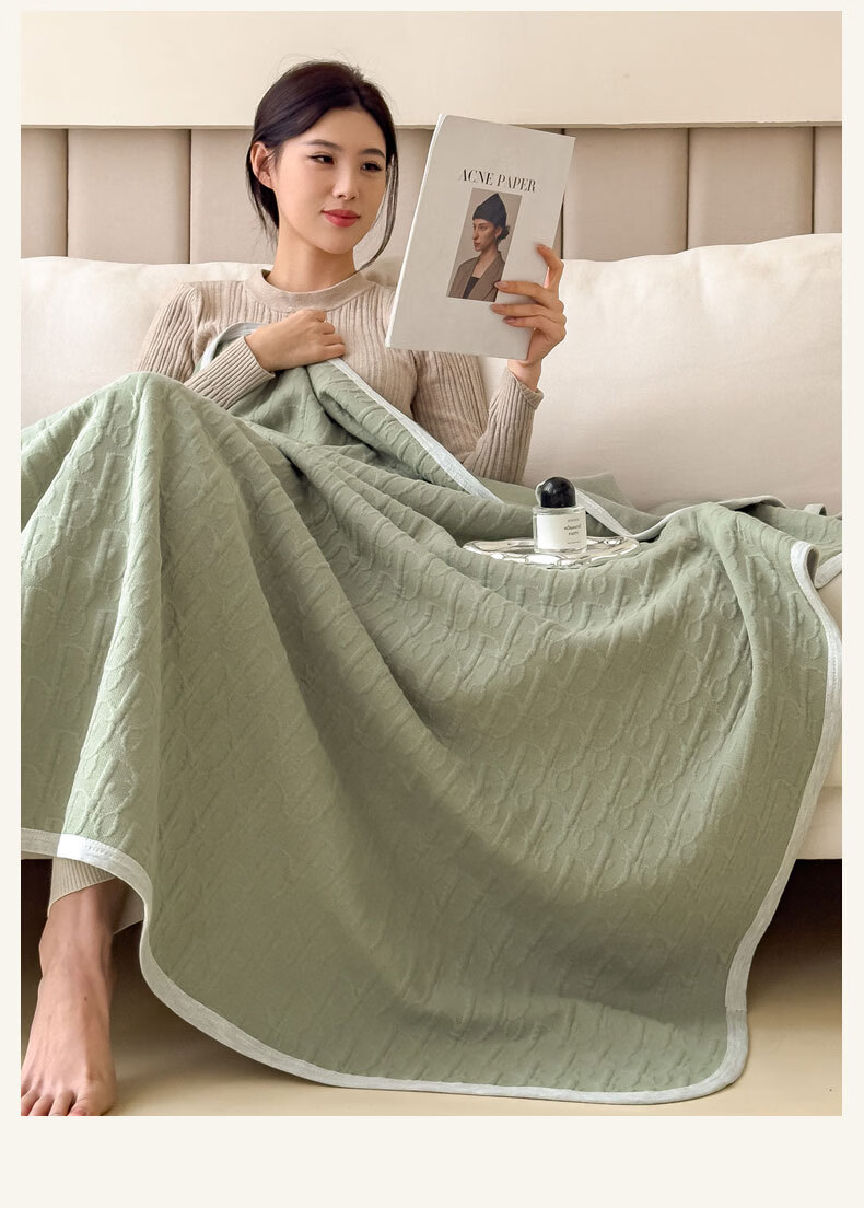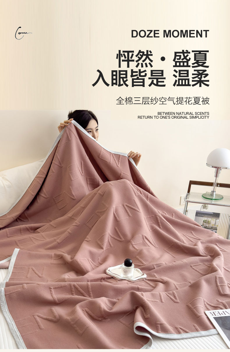 采用100%高克重全棉面料,通过提花工艺;形成立体纹理空气层结构让它兼具透气性与蓬松感,;触感柔软亲肤。功能多用,居家、车载、办公皆宜。