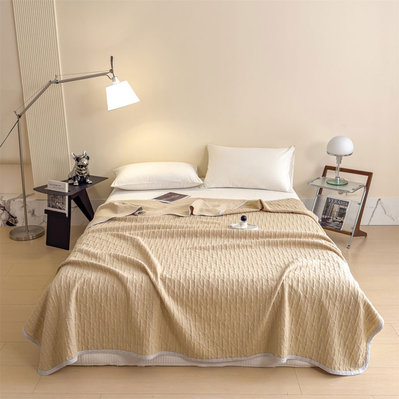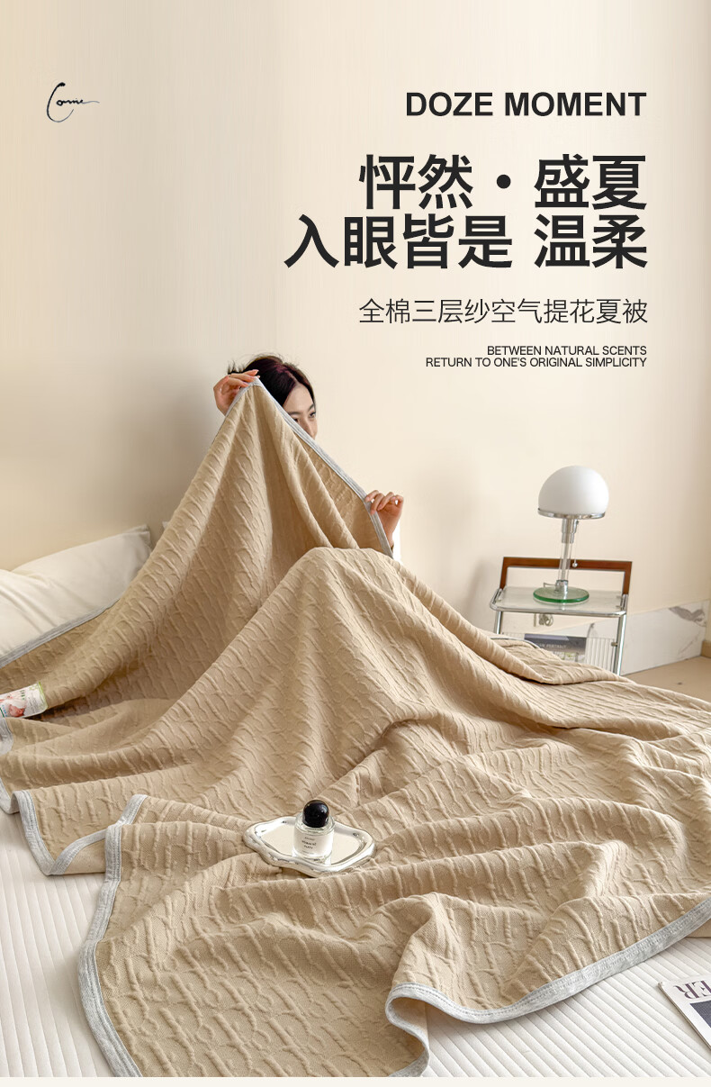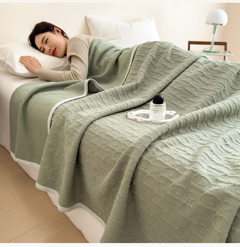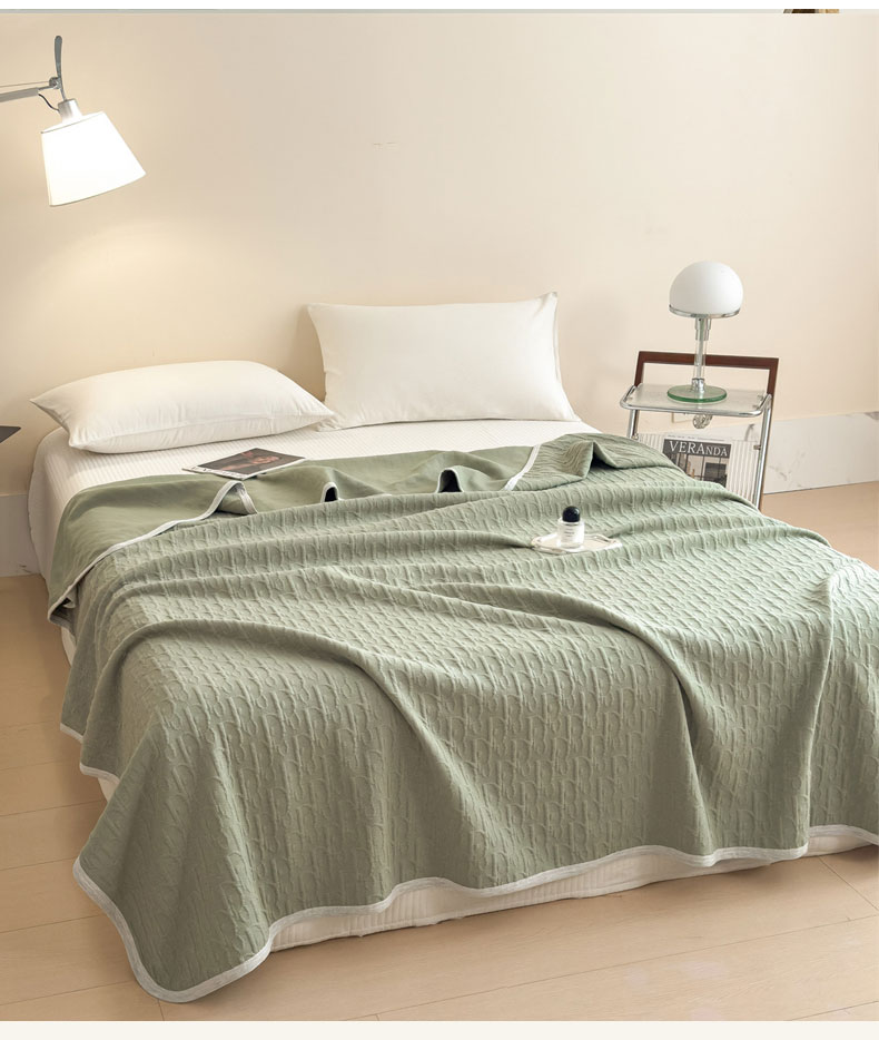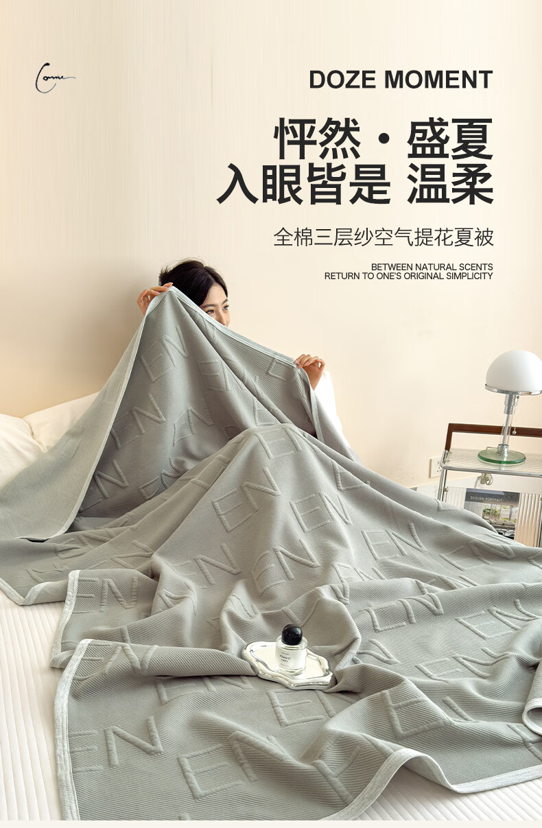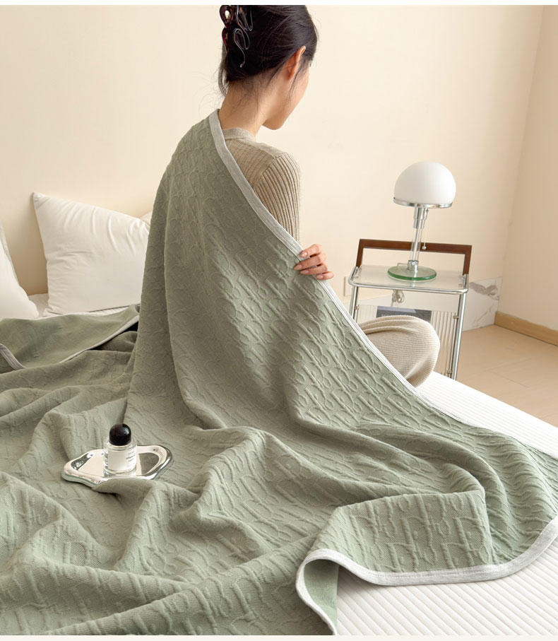 采用100%高克重全棉面料,通过提花工艺;形成立体纹理空气层结构让它兼具透气性与蓬松感,;触感柔软亲肤。功能多用,居家、车载、办公皆宜。