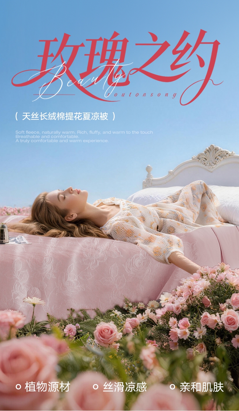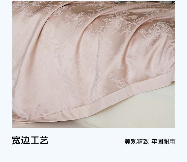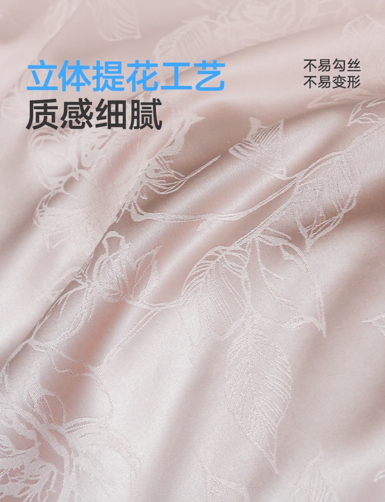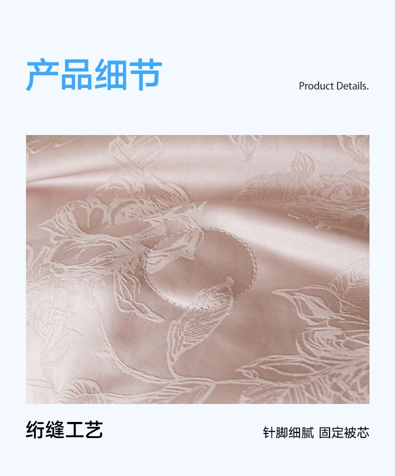 采用天丝提花+长绒棉面料制作成的面料;优质超细纤维,柔软亲肤导湿透;版提花工艺 纯色宽边工艺 高级感十足精致绗缝