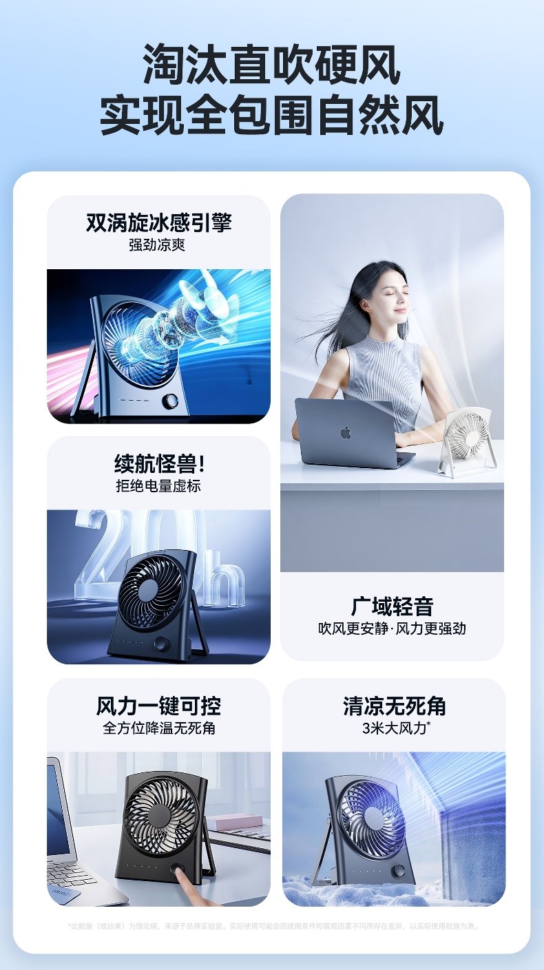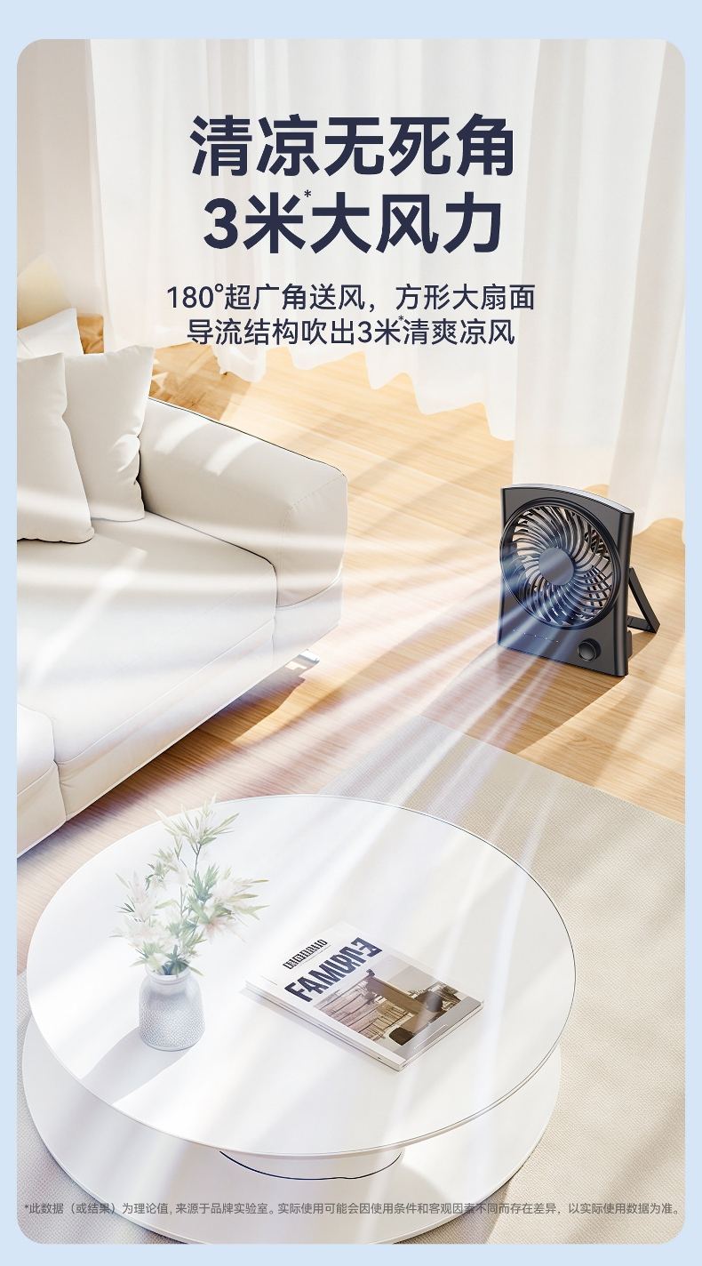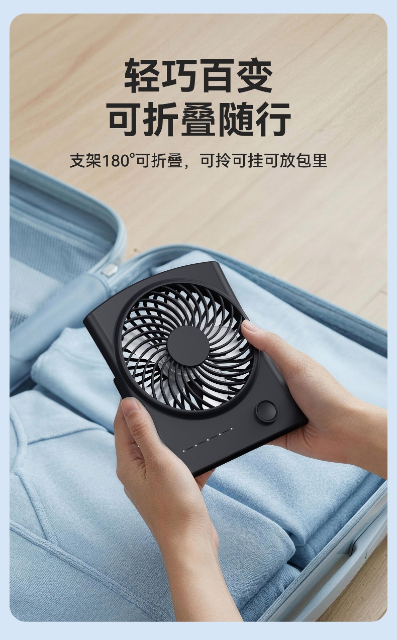 挂立两用,180度自由旋转;5档大风力调节,小巧便携;轻薄便携,面罩可拆洗