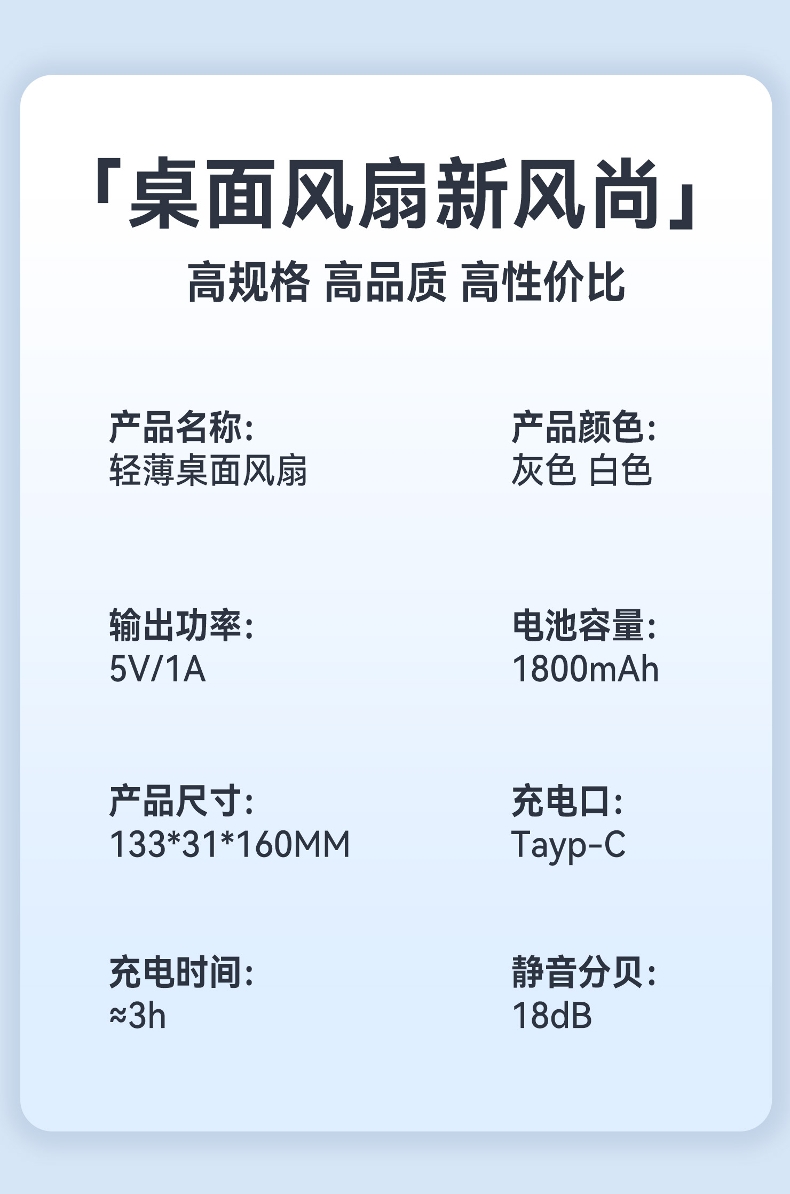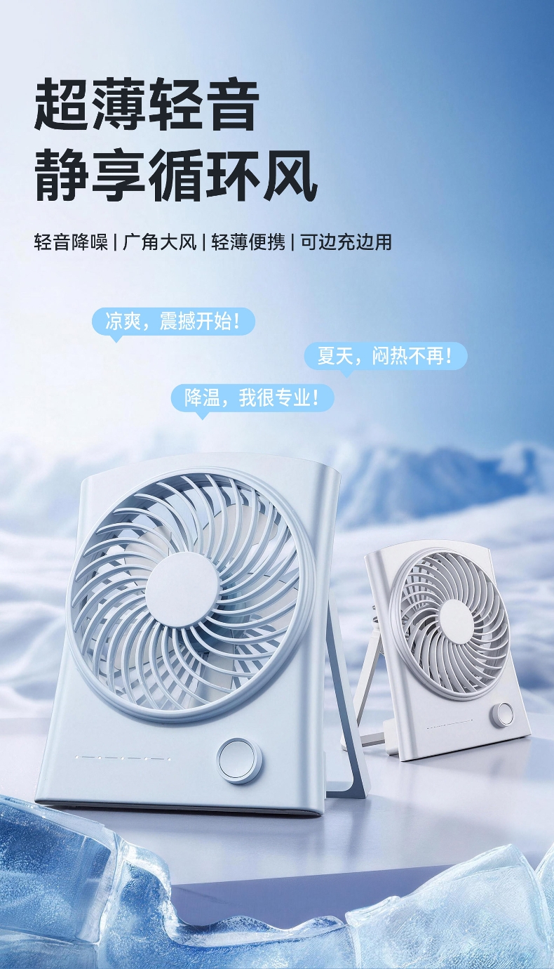 右心 新款桌面风扇小型轻薄便携小风扇F02