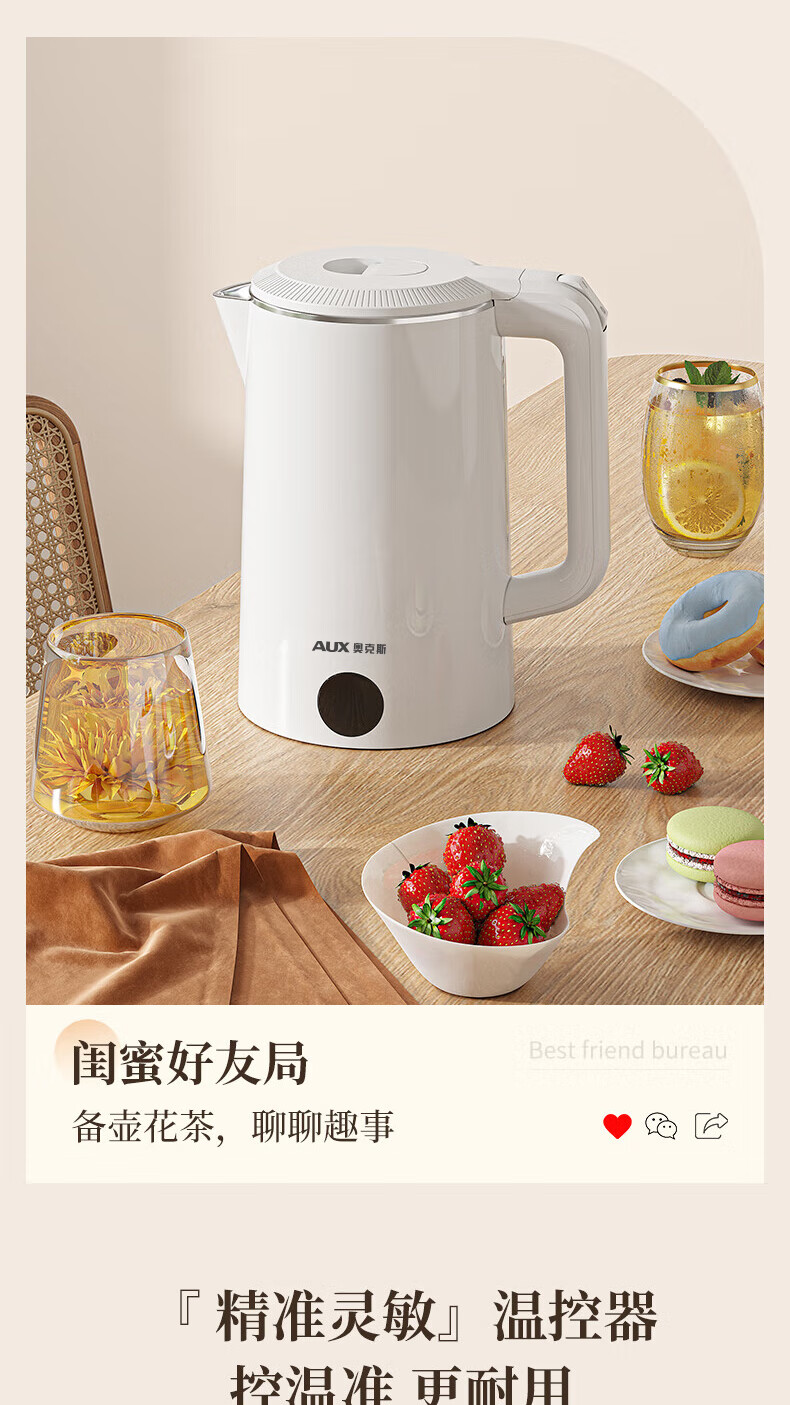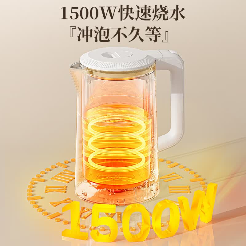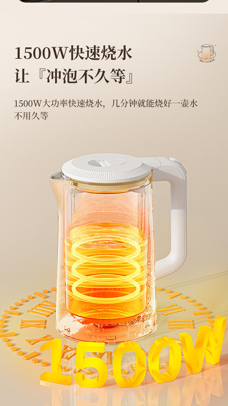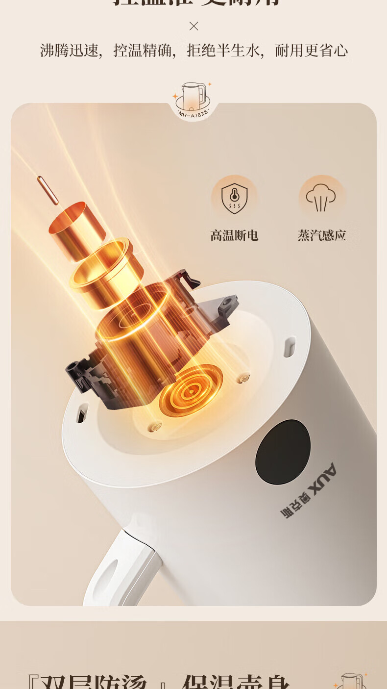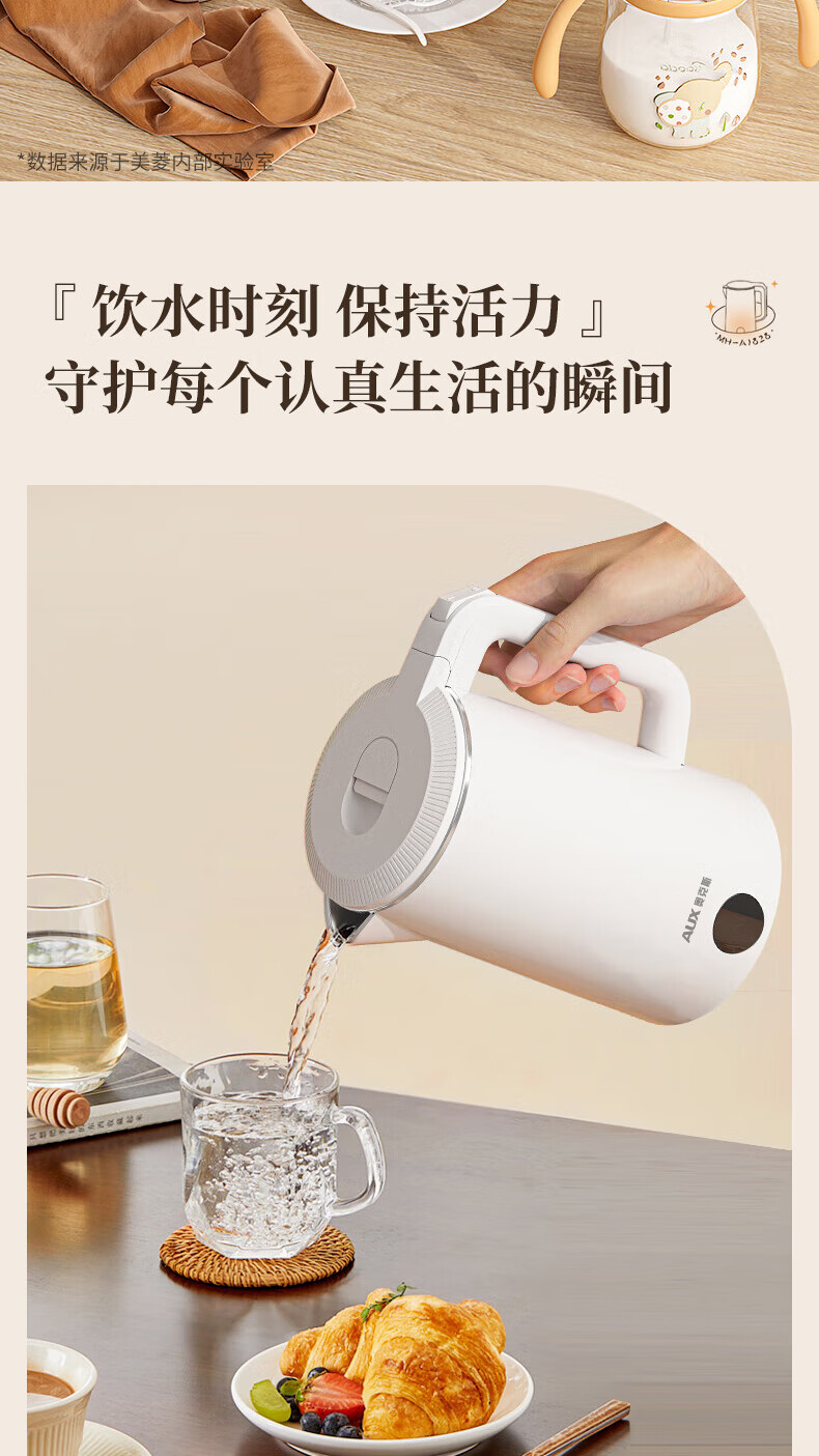 全水路304不锈钢内身,喝水放心;1.8L大容量,满足一天饮水需求;双层防烫,保温壶身