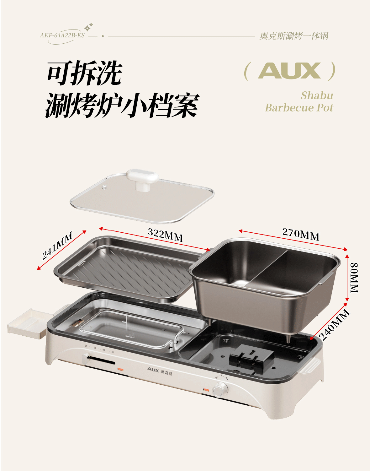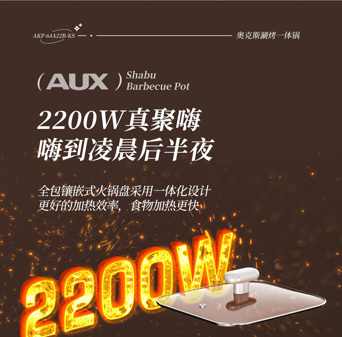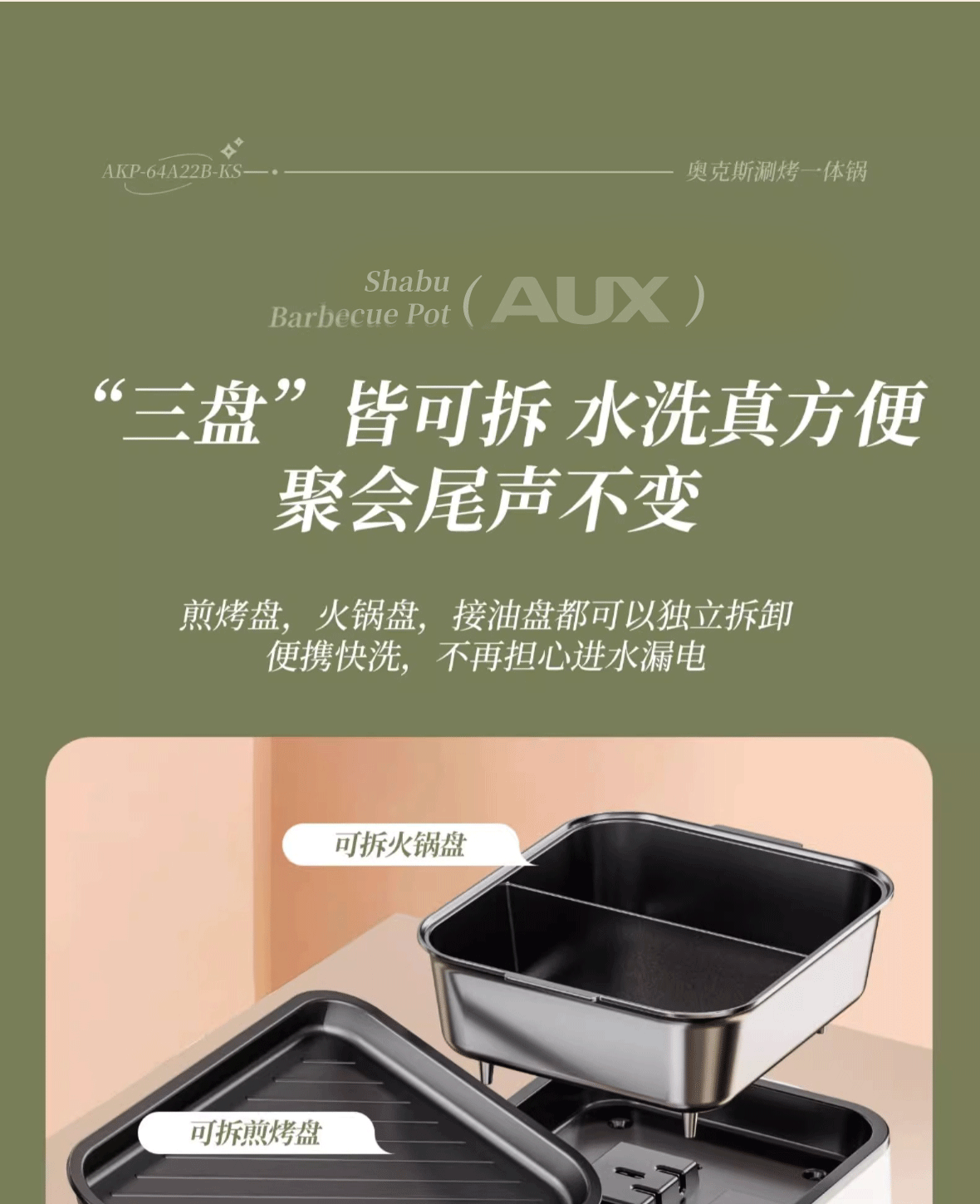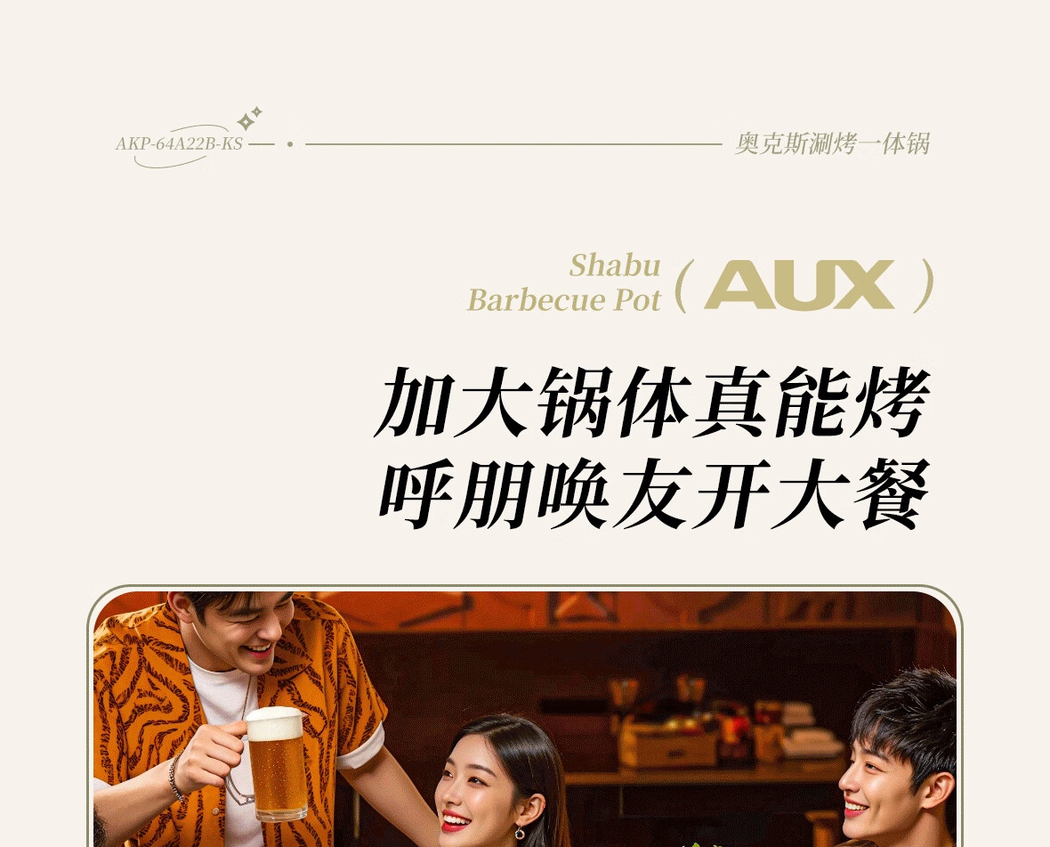 奥克斯 电火锅烤肉一体多功能锅AKP-64A22-KS