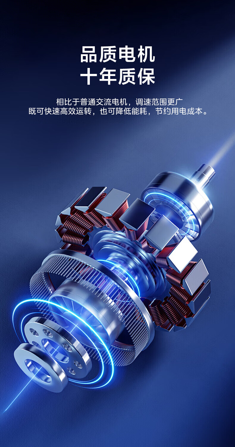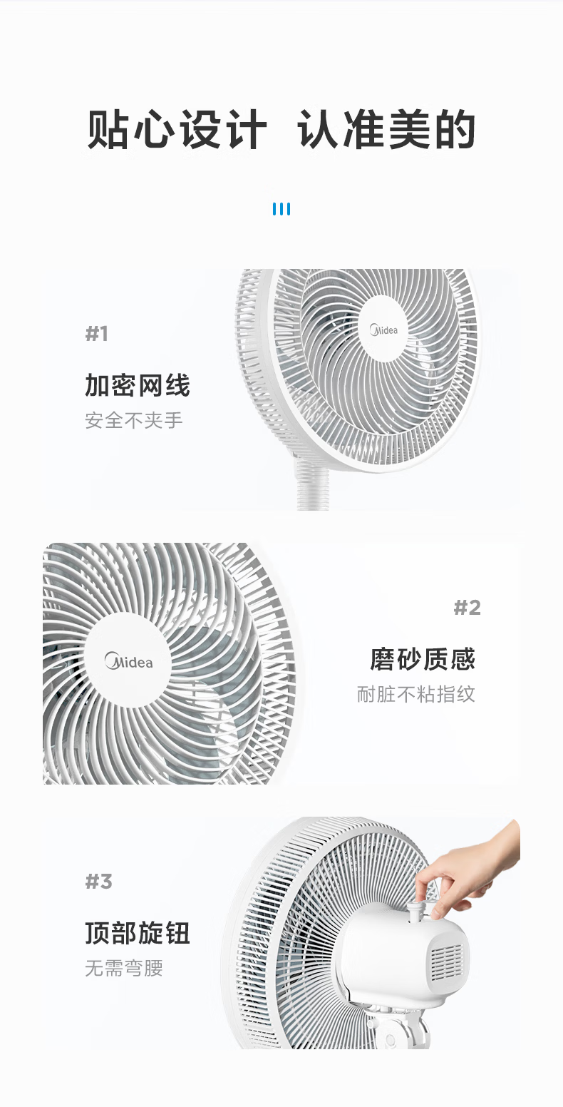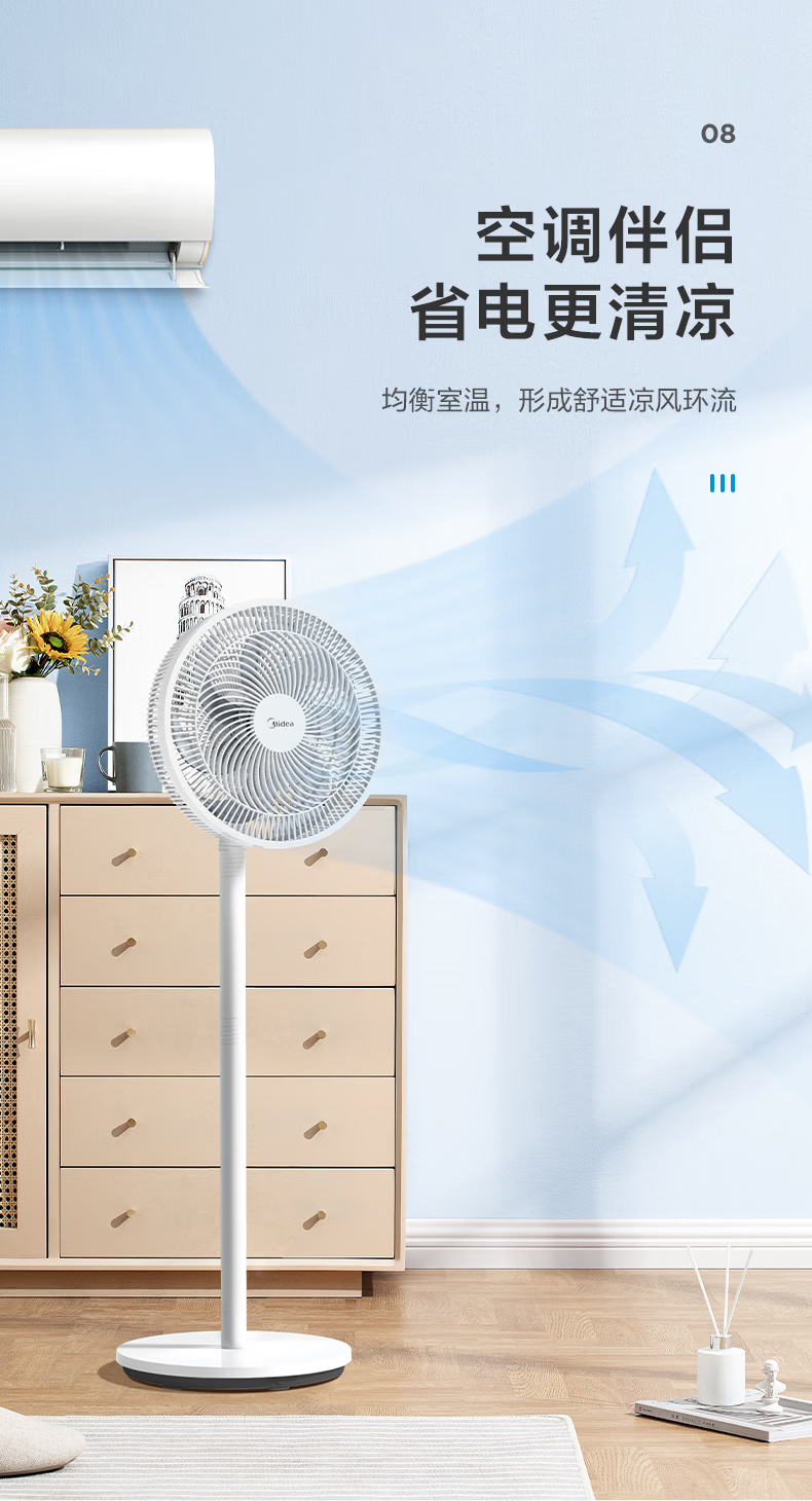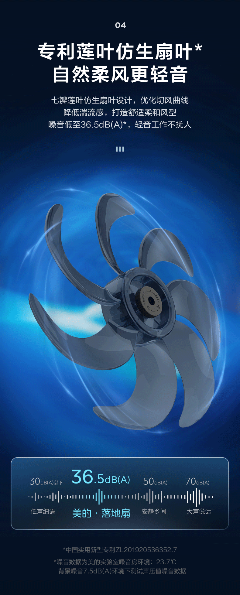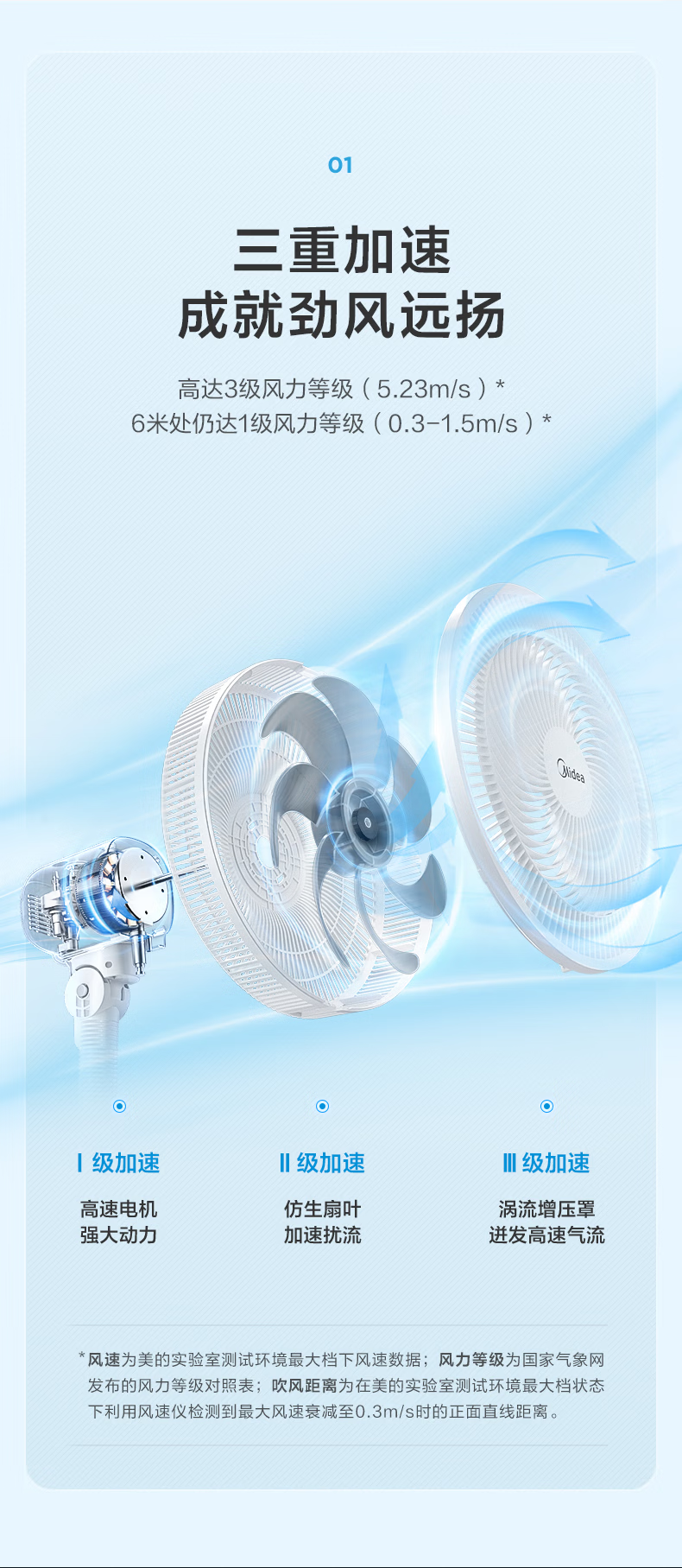 七片风叶,三档风速;;电机10年质保,品质可靠;立柱可自由拼接,台地两用