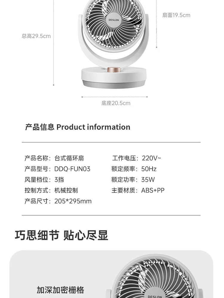 德世朗 台式循环扇电风扇DDQ-FUN03