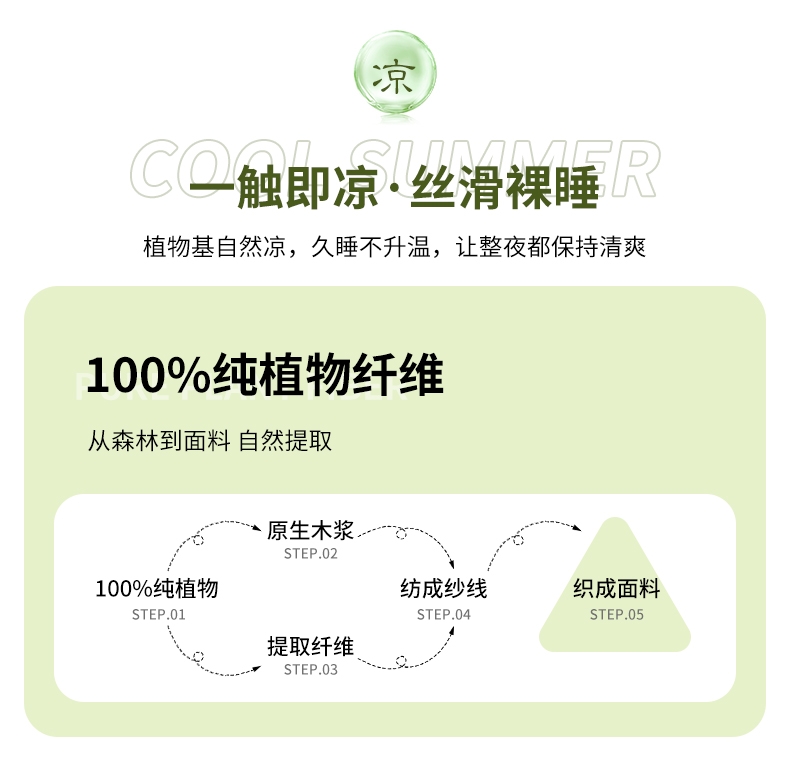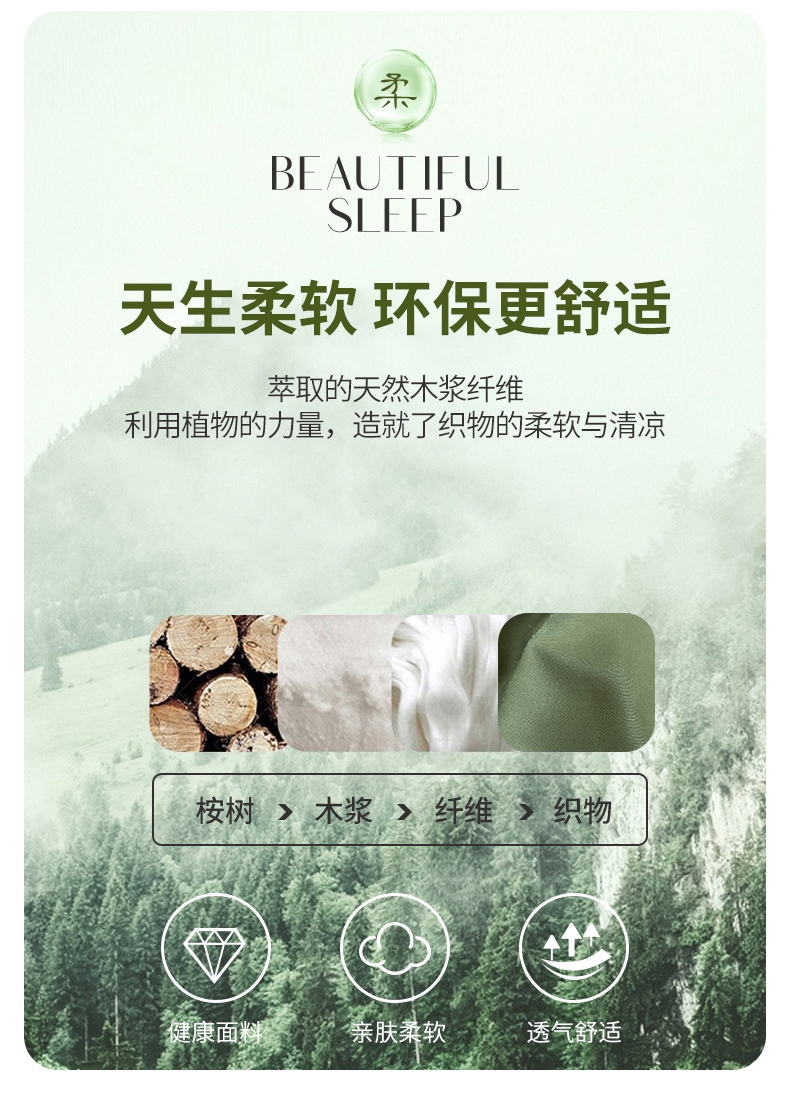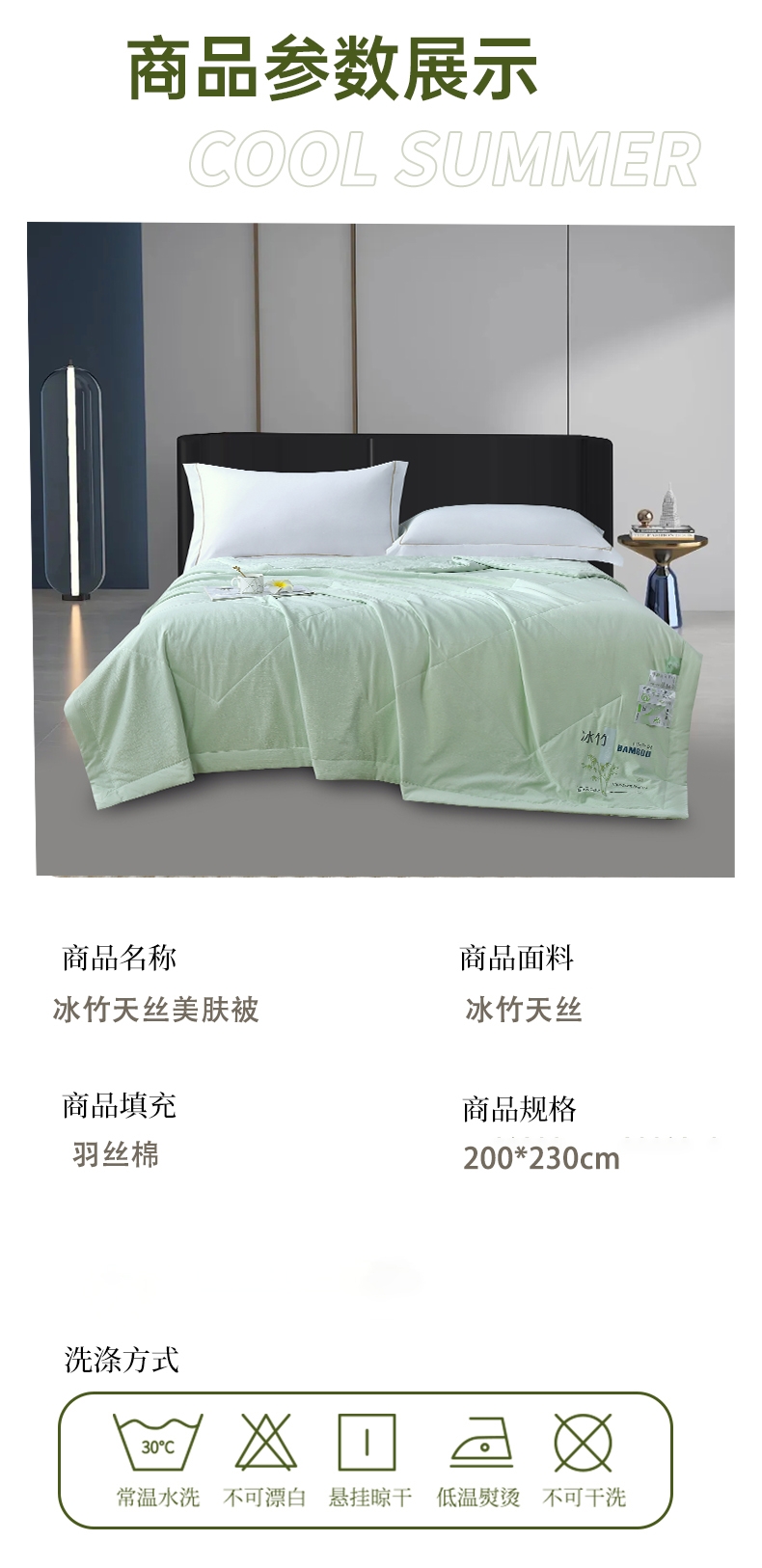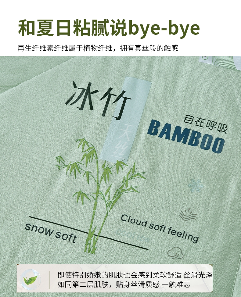 冰竹天丝面料凉爽舒适,具有很好的吸湿性和透气性。;手感柔软光滑,质地轻盈,与皮肤接触时能提供极佳的亲;外观优雅,环保健康