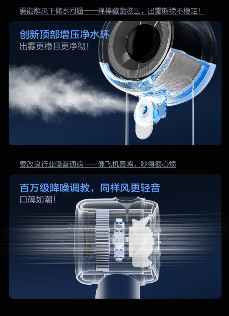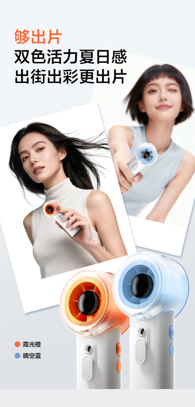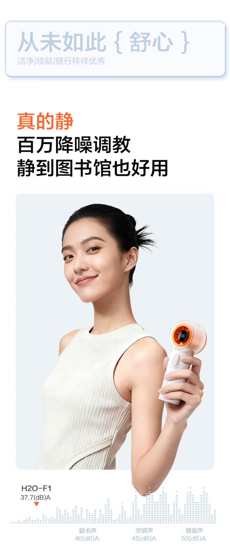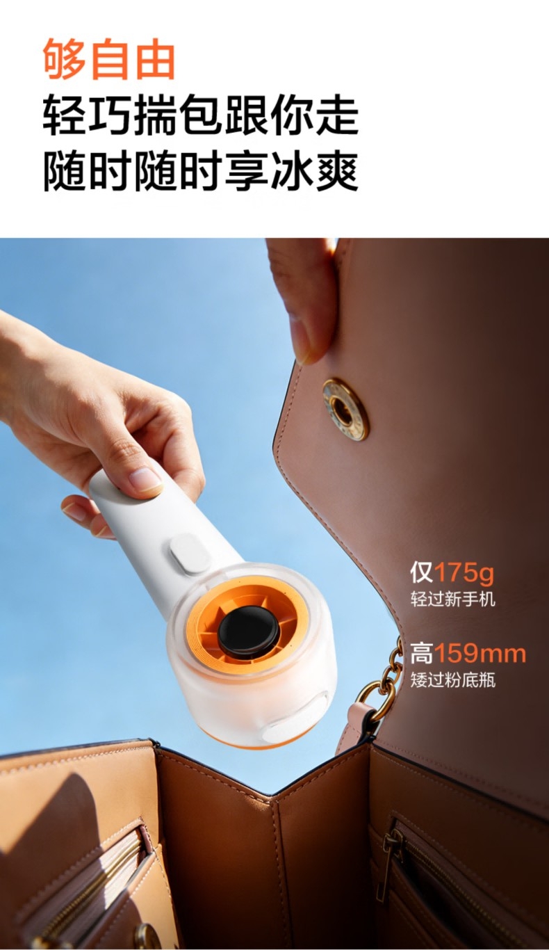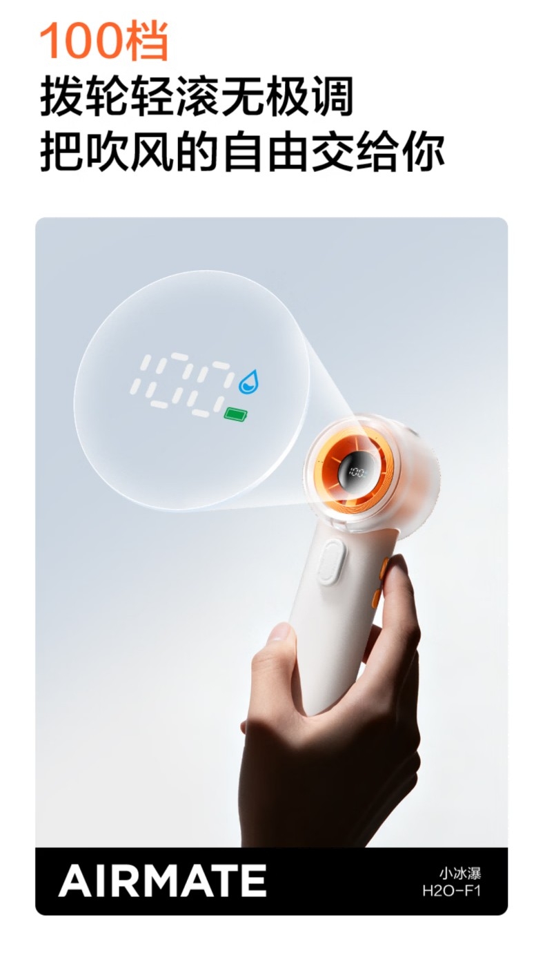 直流无刷电机,15000 转超高速;风雾双效,降温+补水二合一,纳米级精细喷雾;高清大数显,100档拨轮轻滚无极调;3000mAh高能锂电长续航+快充,最长续航16小;低噪运行,风量大噪音小