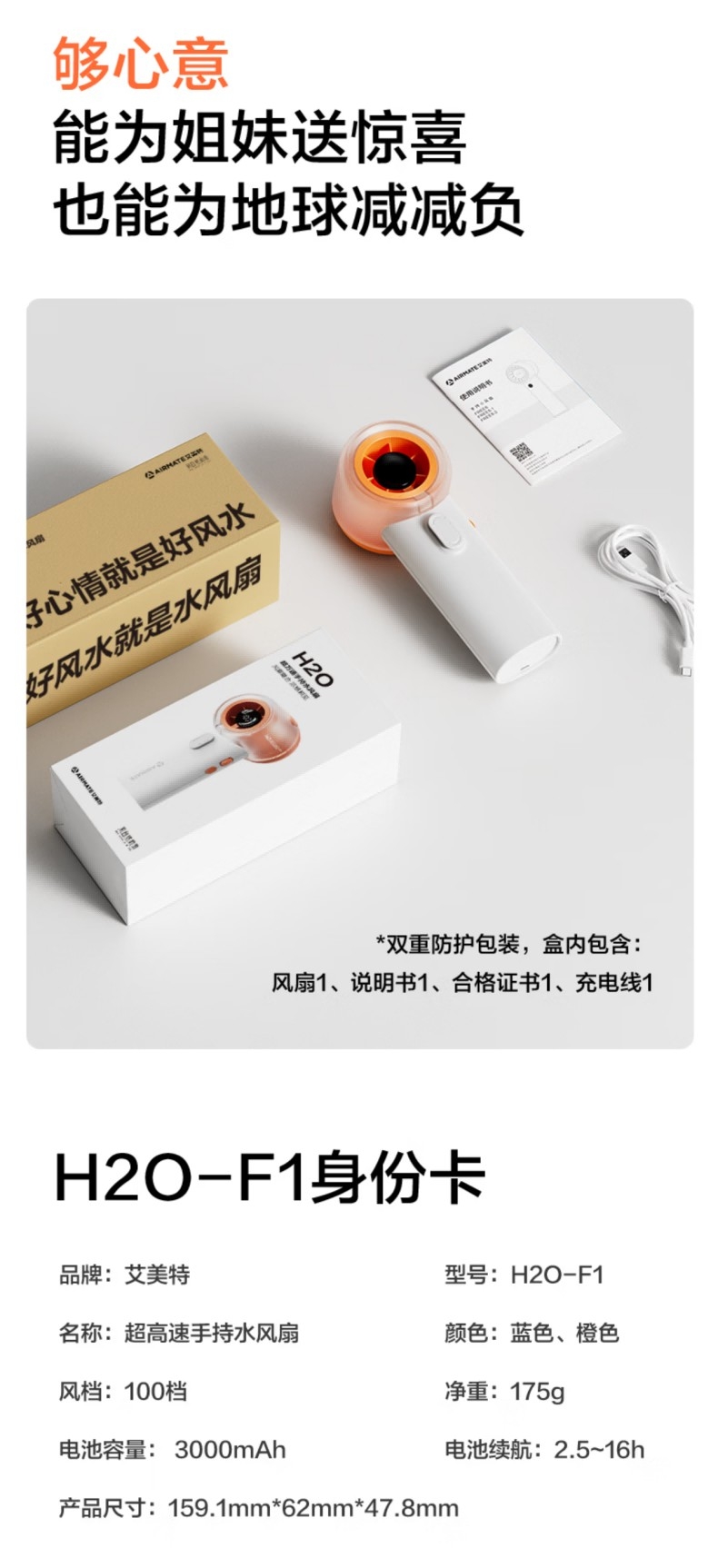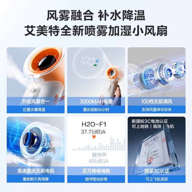 艾美特 手持式喷雾加湿小风扇H2O-F1