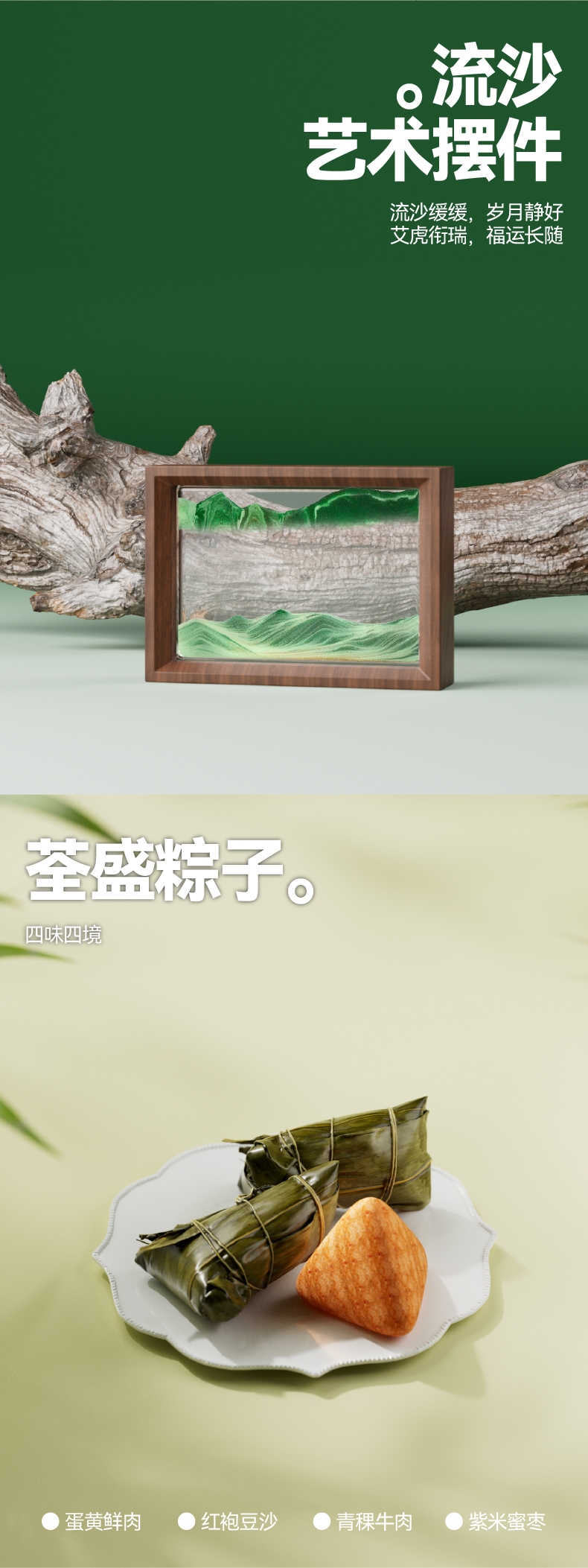 荃盛· 粽子:口味:蛋黄鲜肉粽x1、红袍豆沙粽x1 青稞牛肉粽x1、紫米蜜枣棕x1 规格:100g/个