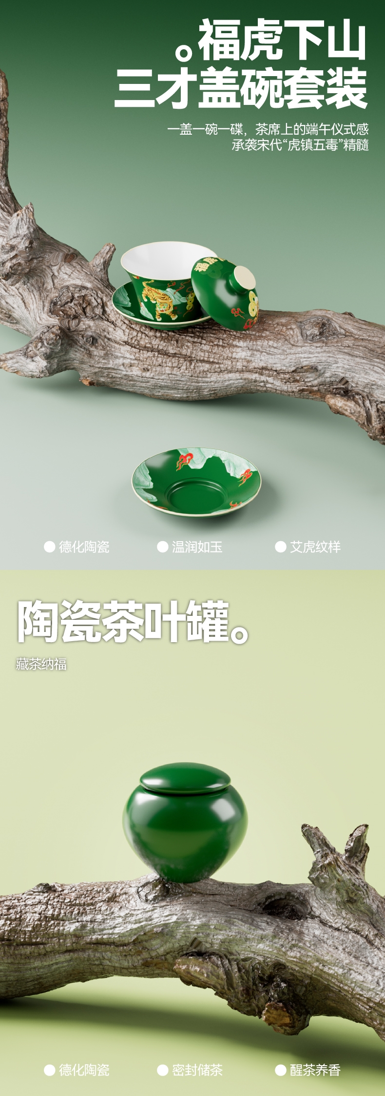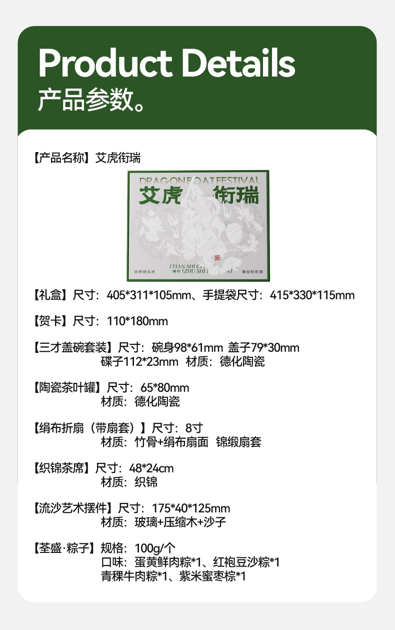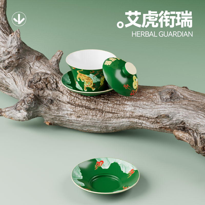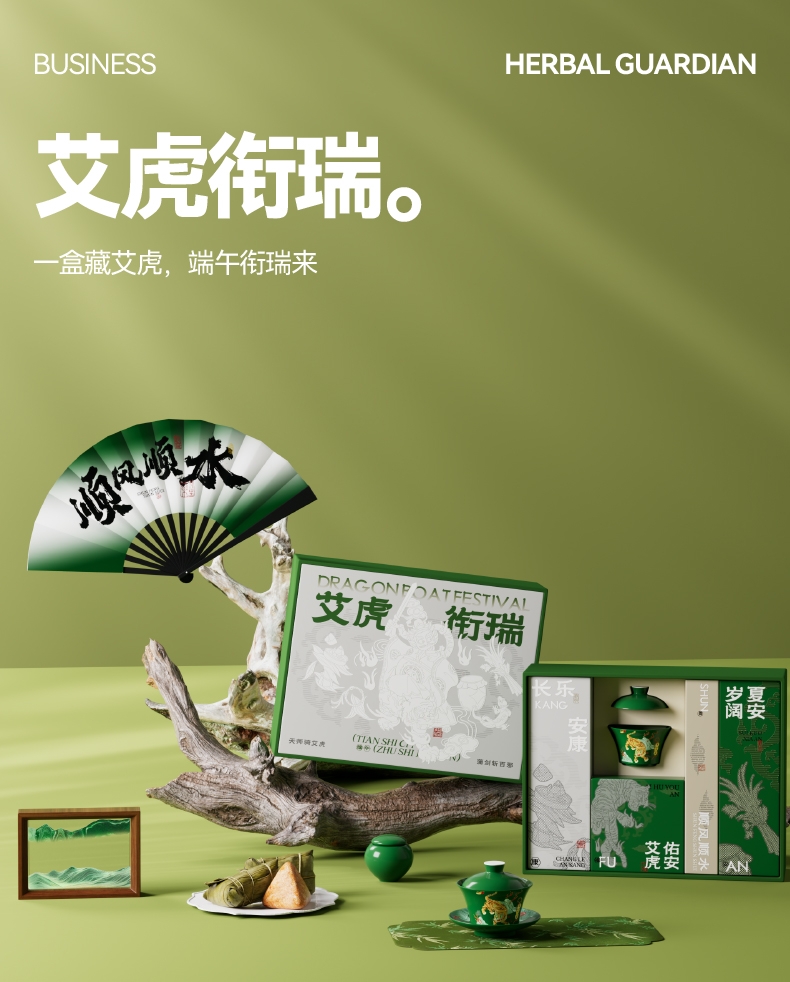 五月五日午,天师骑艾虎,祈愿"艾虎镇五毒,百病不侵;本礼盒以"艾虎衔瑞"为题,承袭宋代"虎镇五毒"纹样;寄寓"衔瑞纳福,岁岁安康"之愿