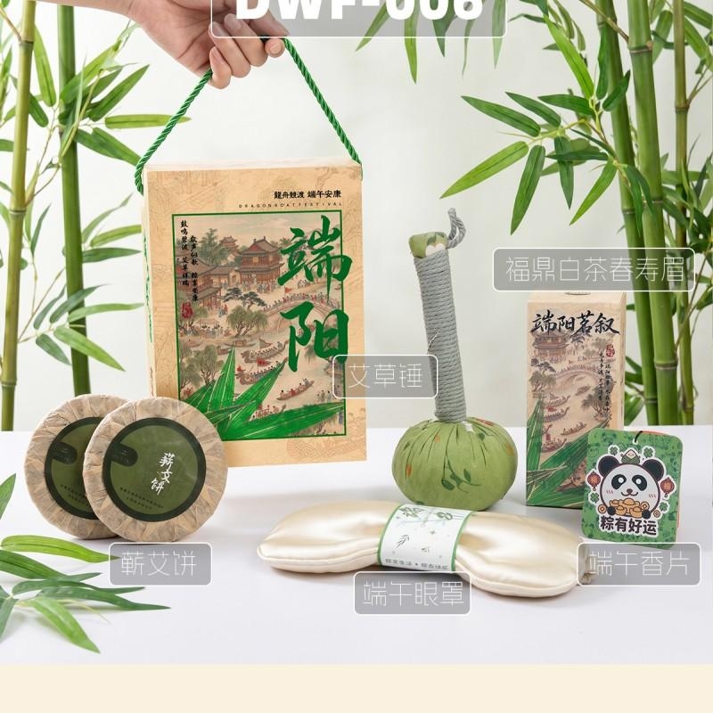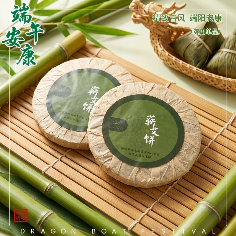 组合:眼罩*1、蕲艾饼30g*2、艾草养生锤*1、端阳茗叙白茶8g*2袋